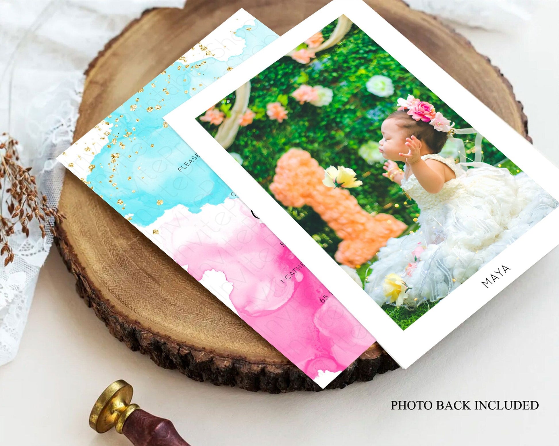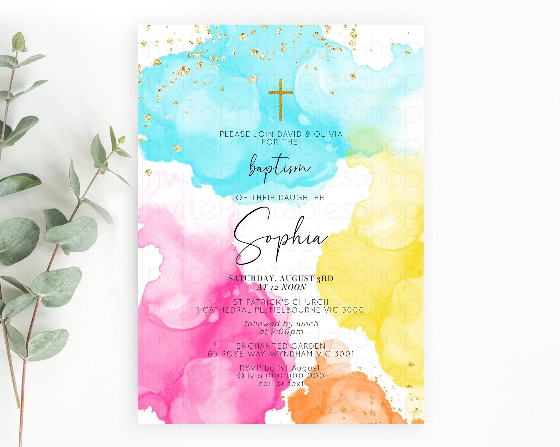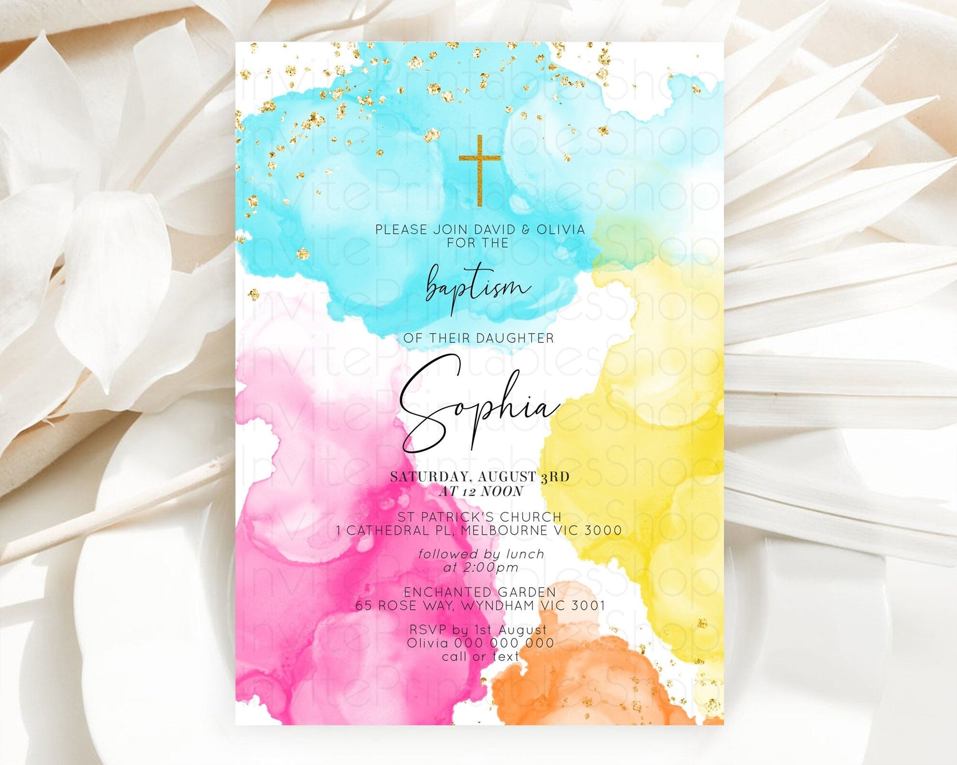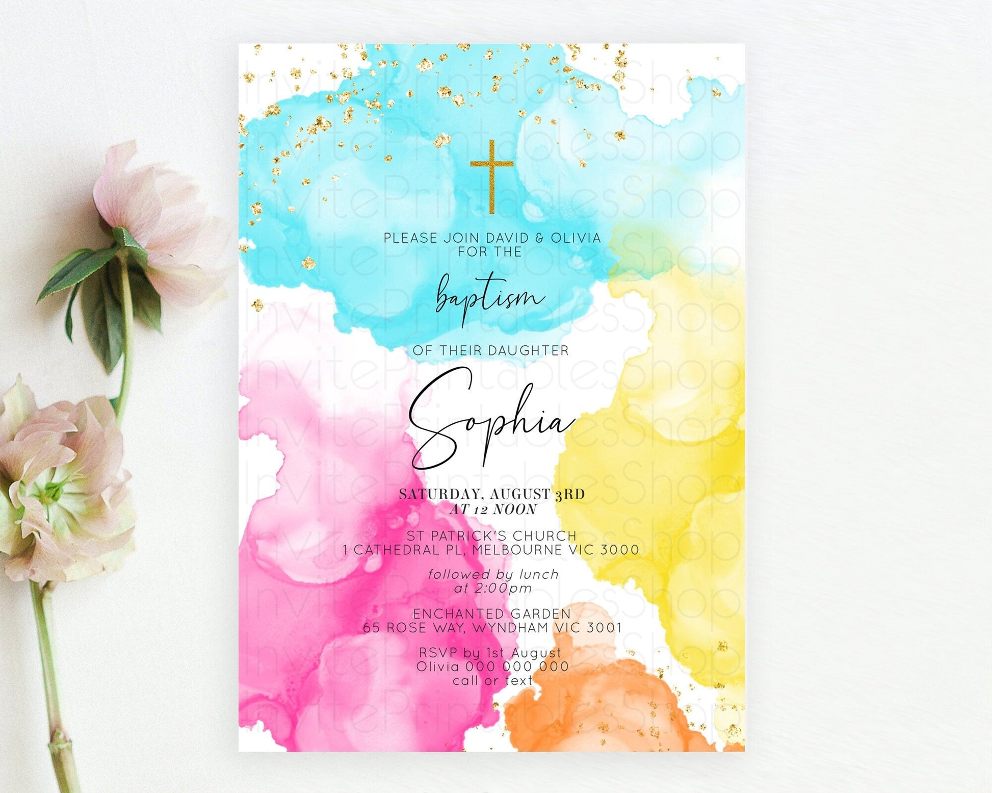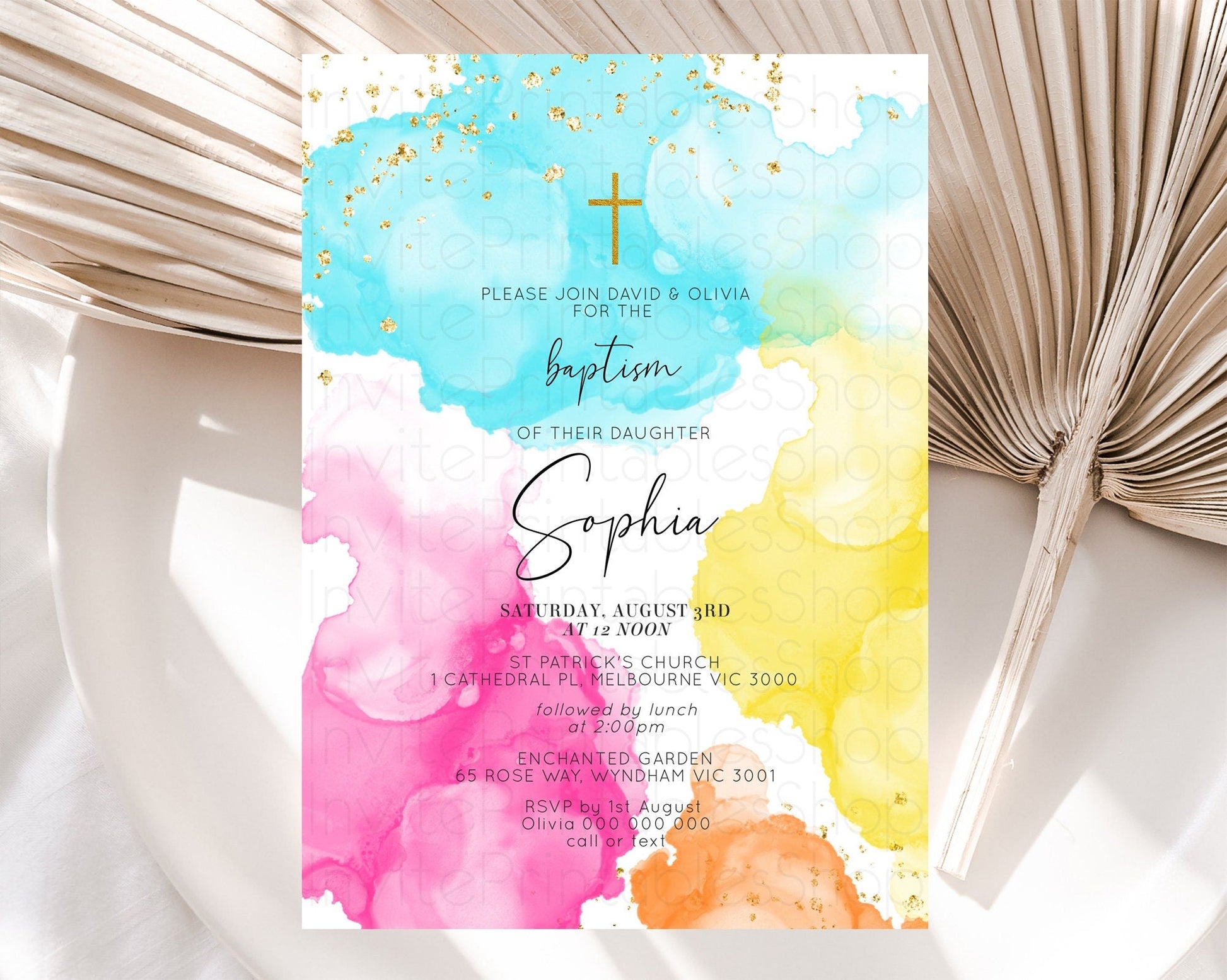 Pastel Baptism Invitation Pastel Colors Watercolor Baptism 1st Birthday Party Gold Ombre Pastel Rainbow Christening Holy Communion D10898