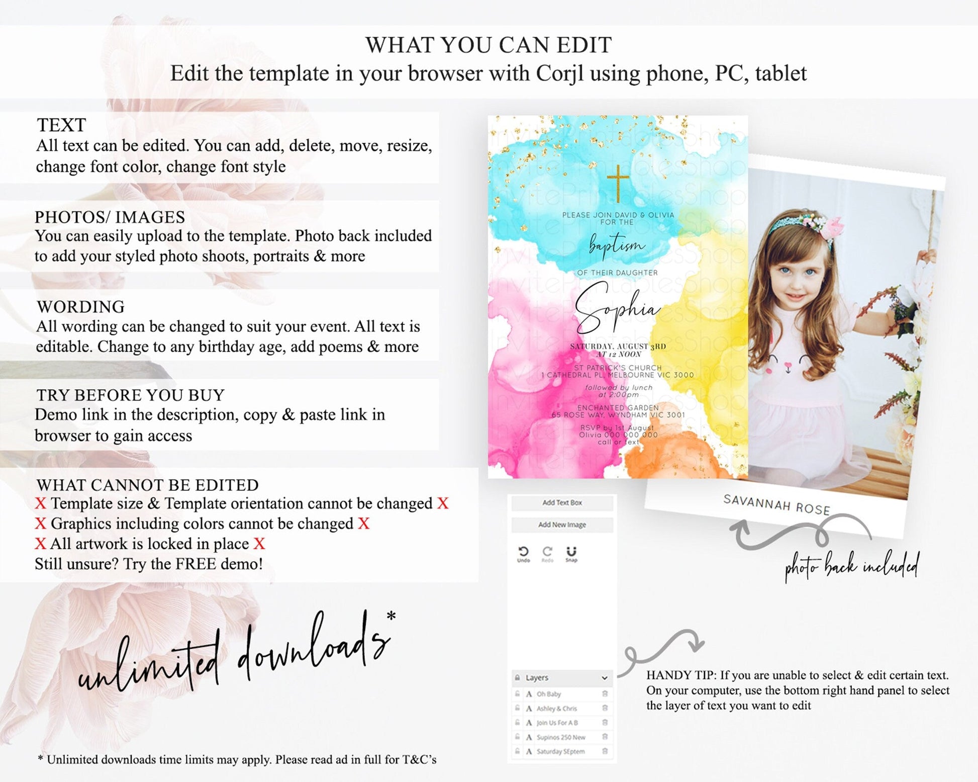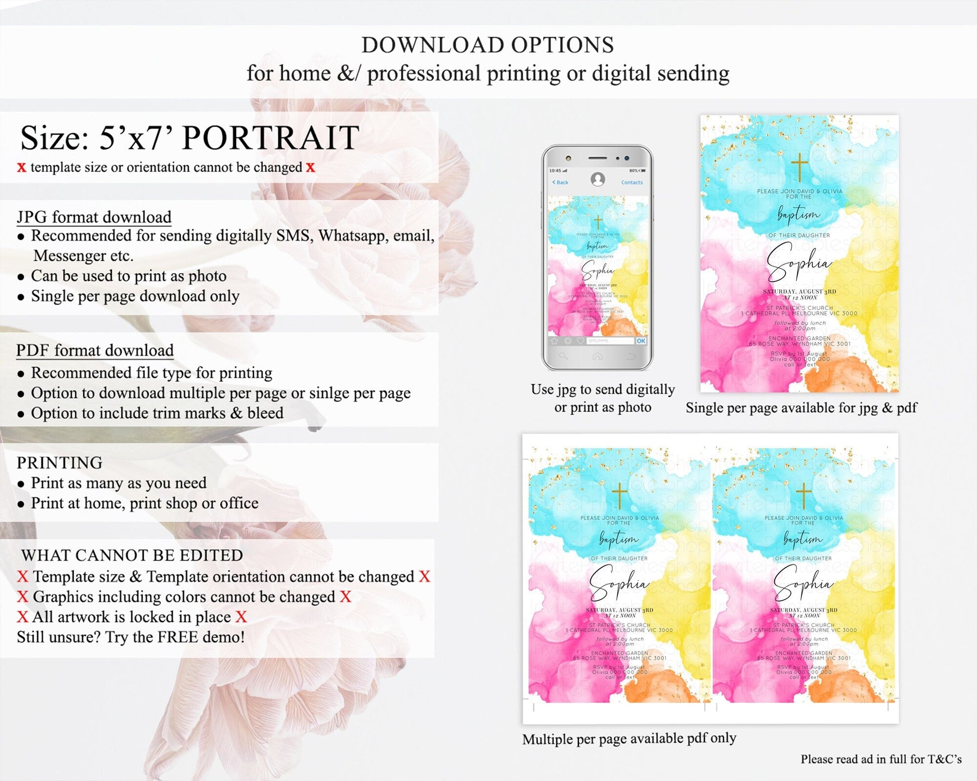 • Template size & orientation cannot be changed. Please use the demo link to confirm this product suits your needs.
