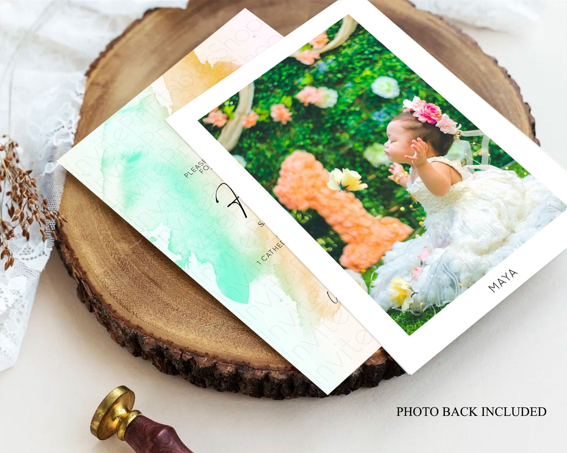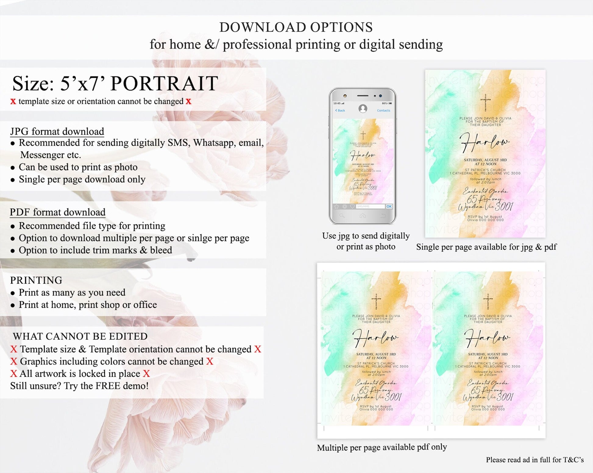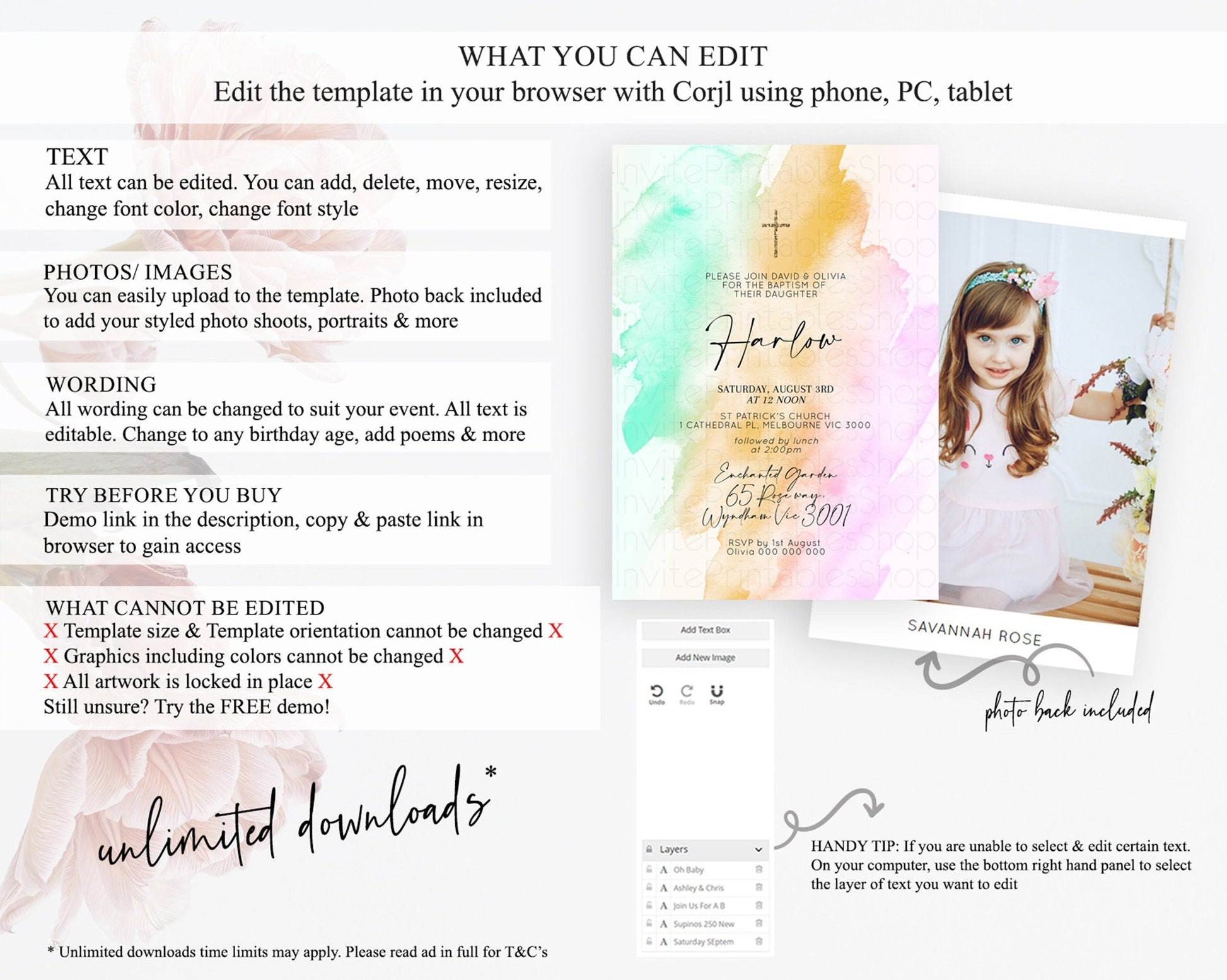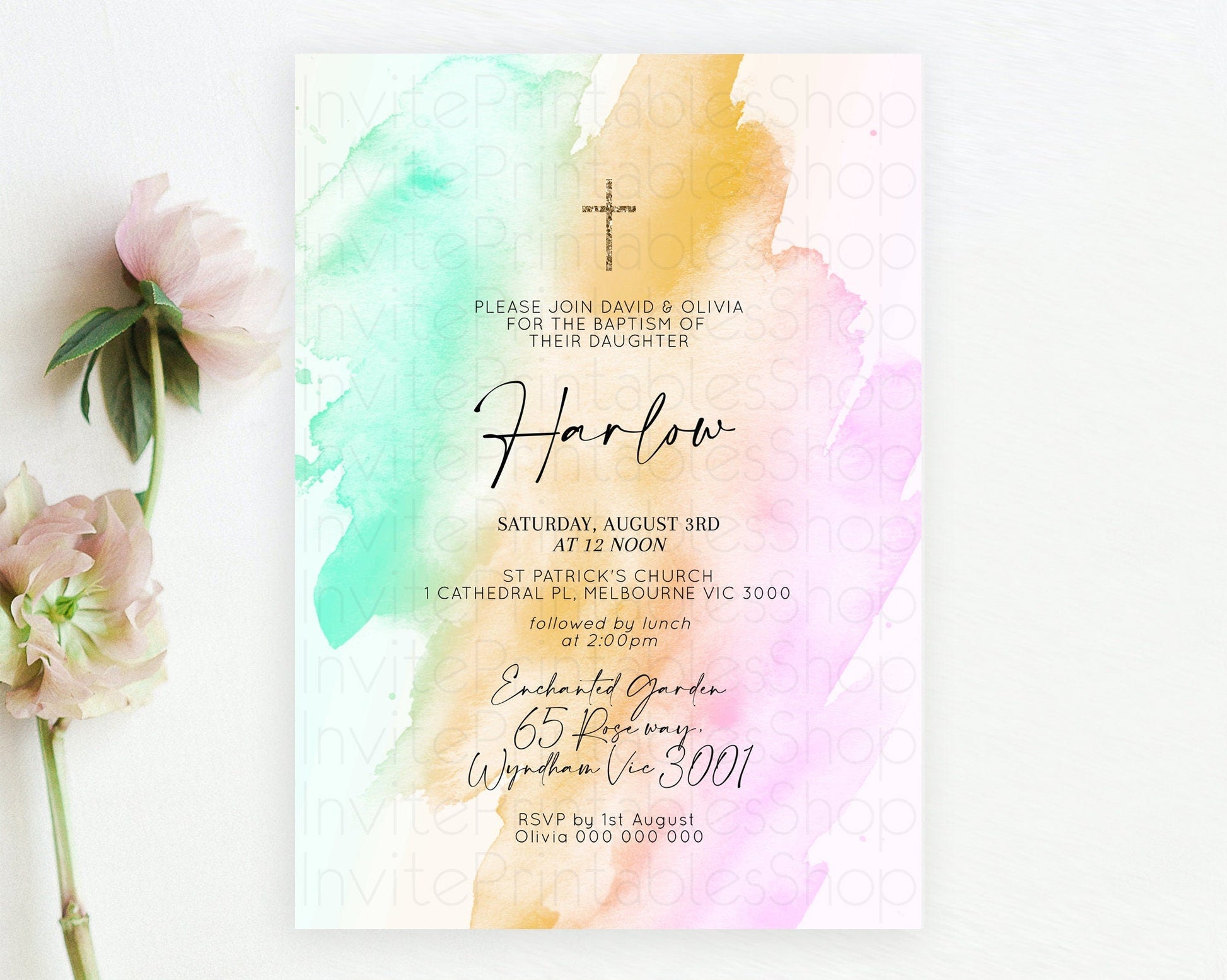 Pastel Baptism Invitation Pastel Colors Watercolor Baptism 1st Birthday Party Gold Ombre Pastel Rainbow Christening Holy Communion D10962