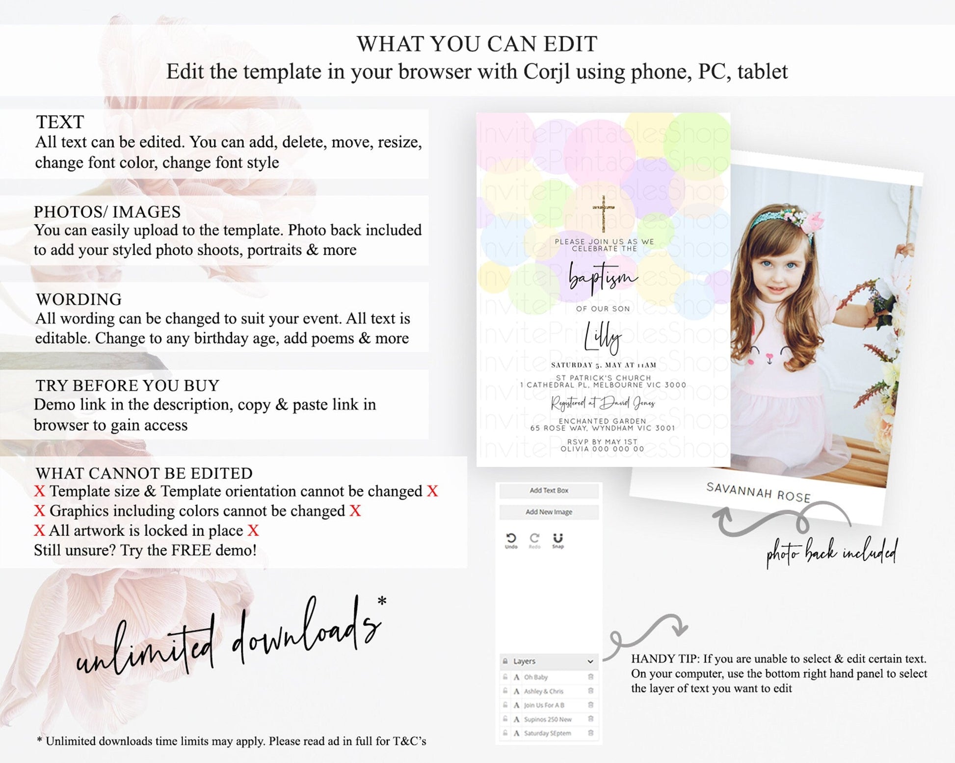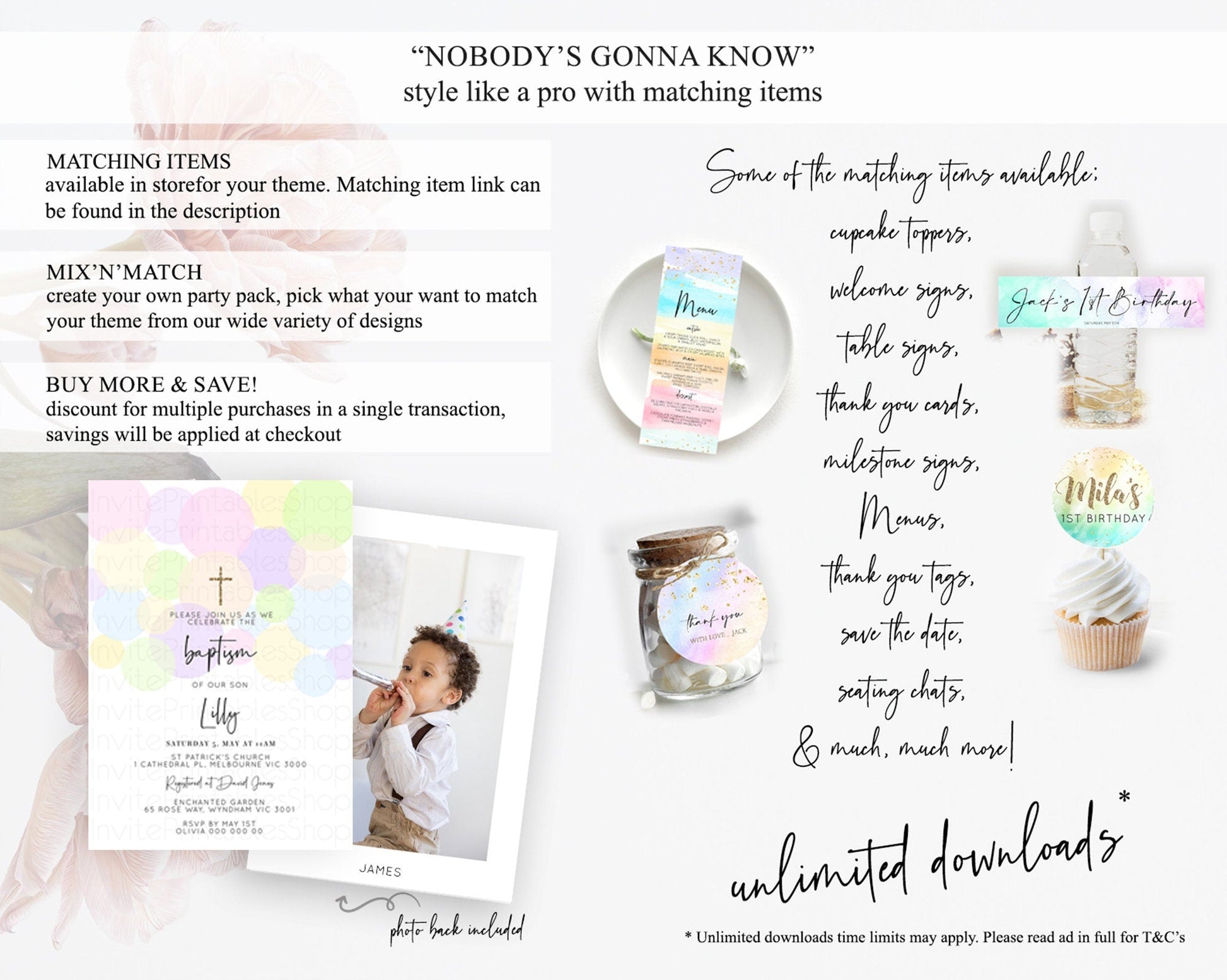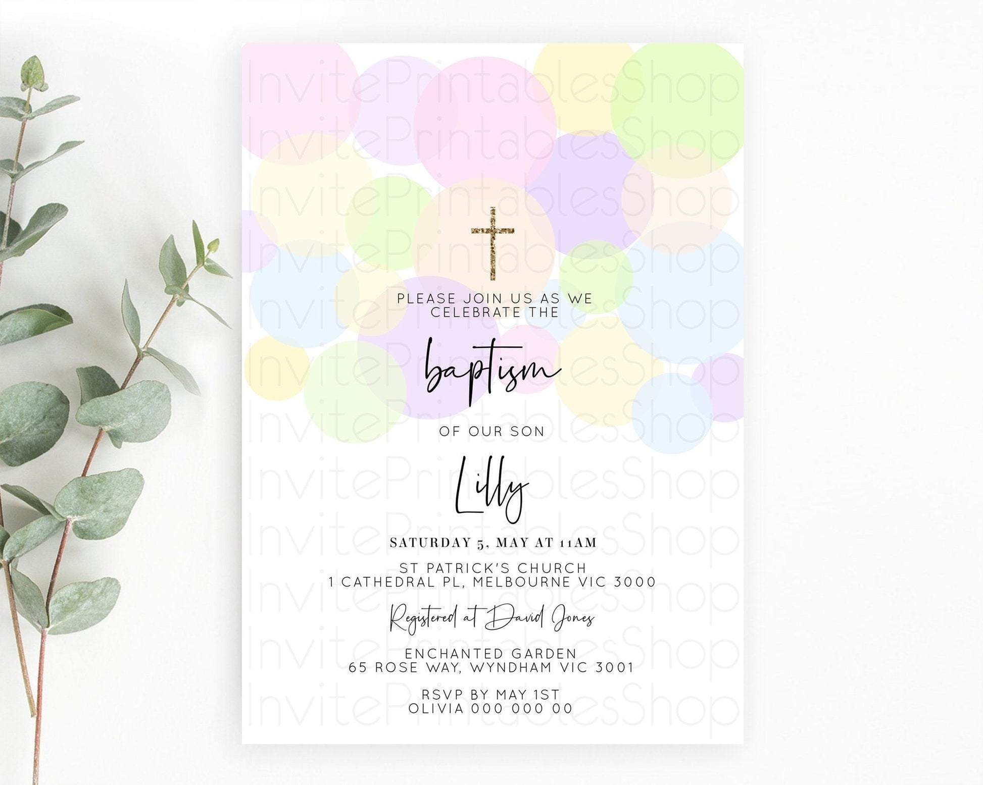 Pastel Baptism Invitation Pastel Confetti Baptism 1st Birthday Invitation Colorful Rainbow Confetti Bubbles Christening Invitation D10229