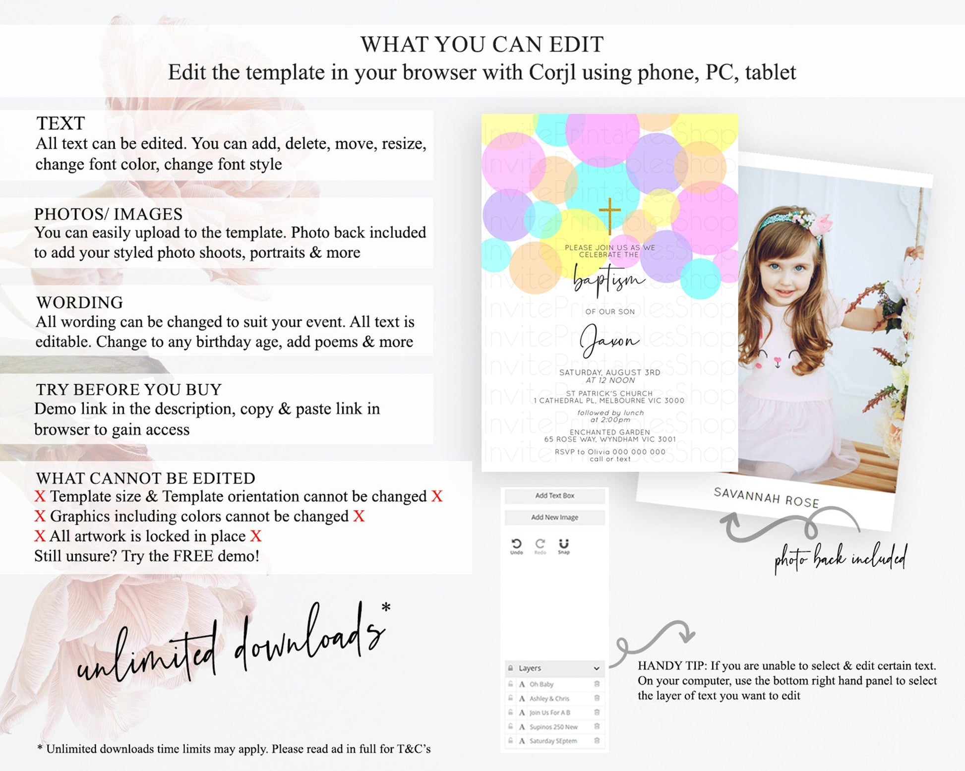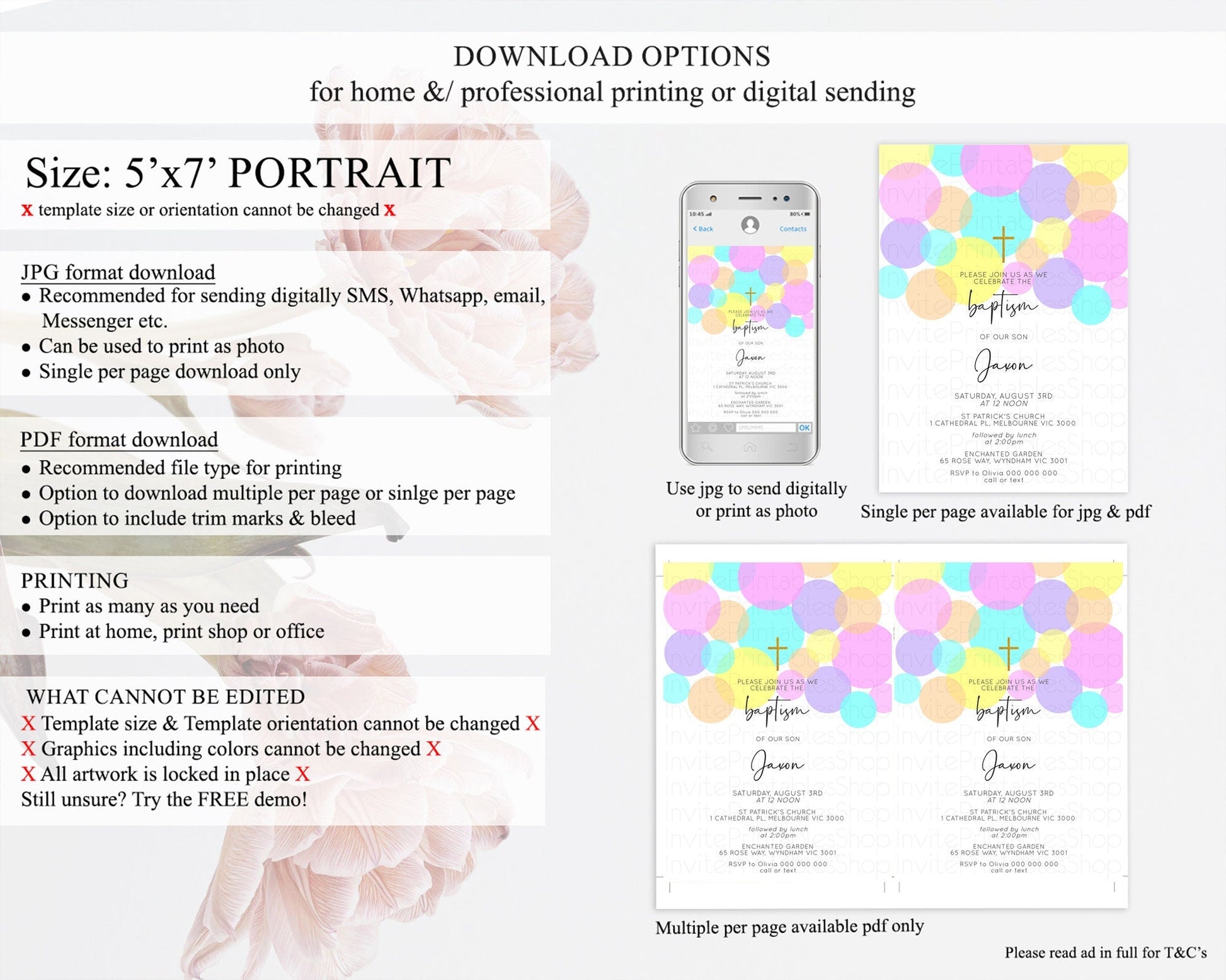 • Template size & orientation cannot be changed. Please use the demo link to confirm this product suits your needs.