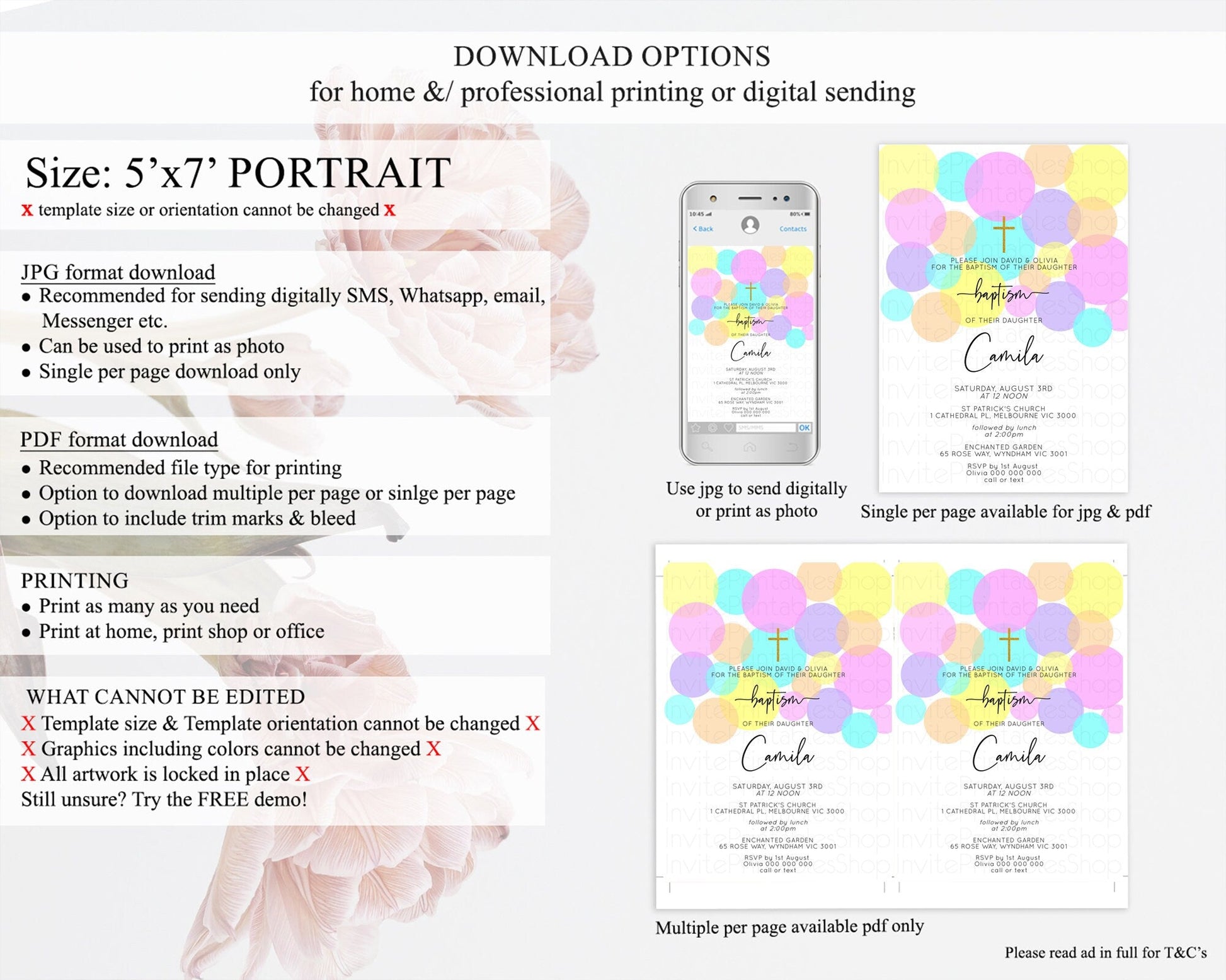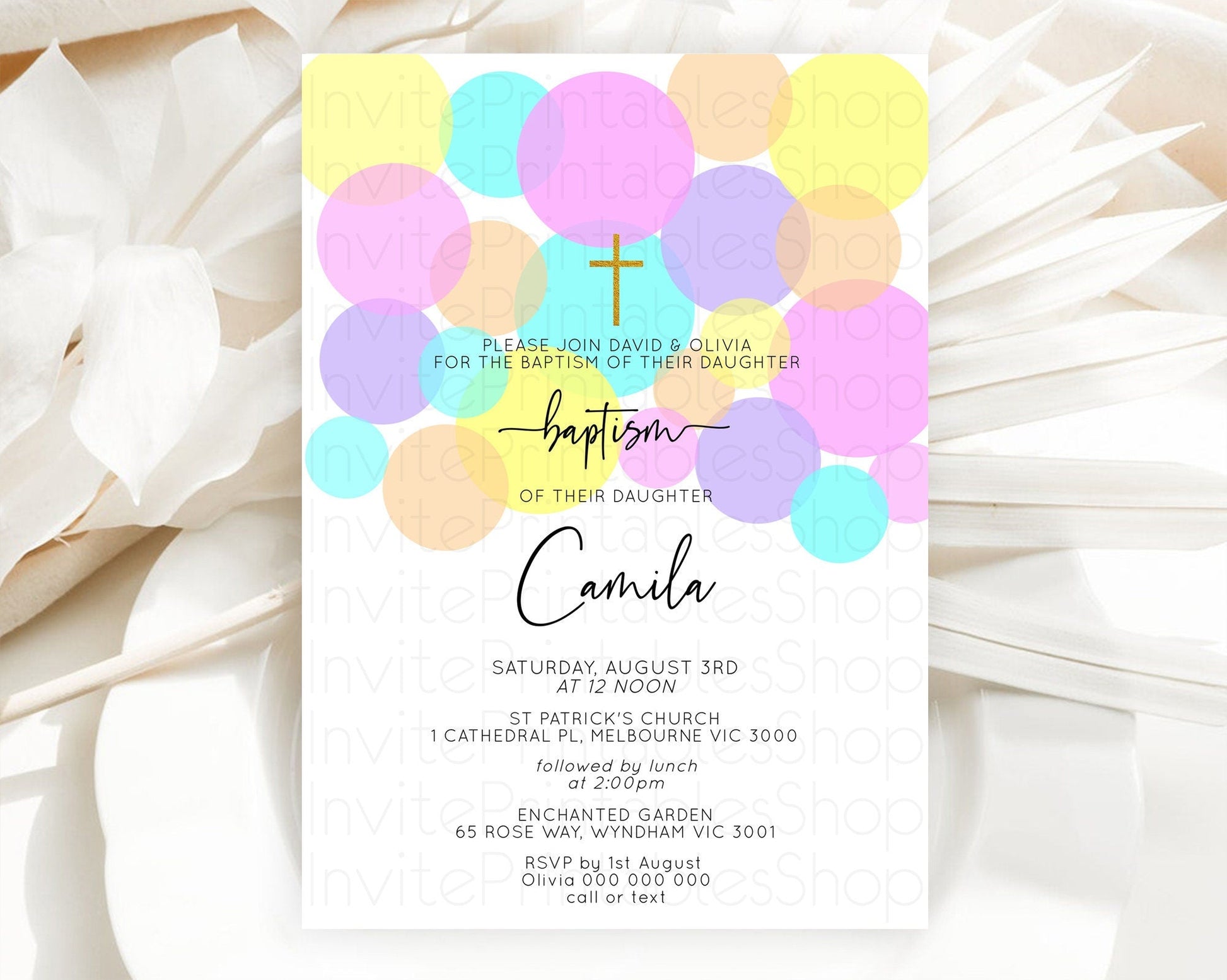 Pastel Baptism Invitation Pastel Confetti Baptism 1st Birthday Invitation Colorful Rainbow Confetti Bubbles Christening Invitation D10407