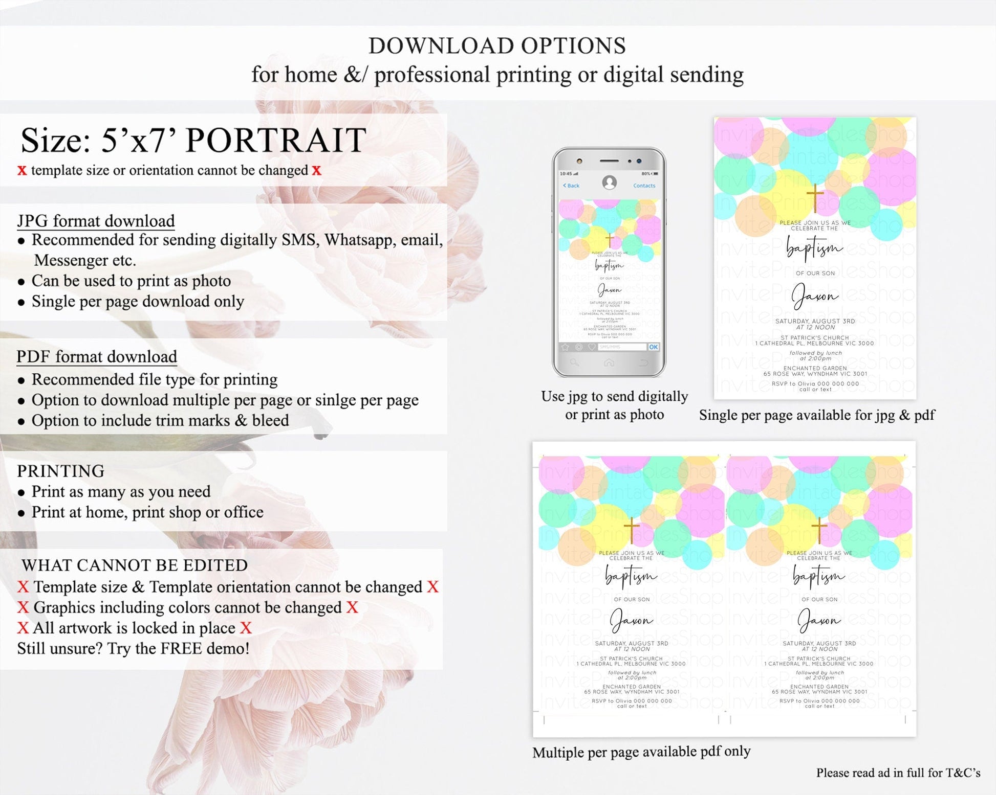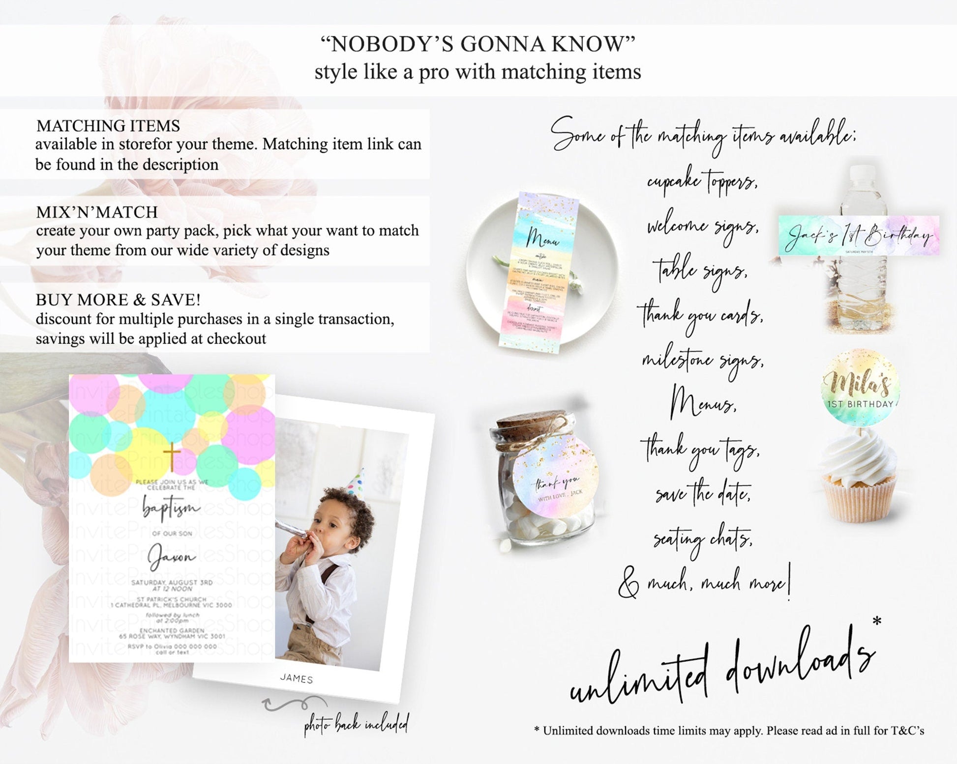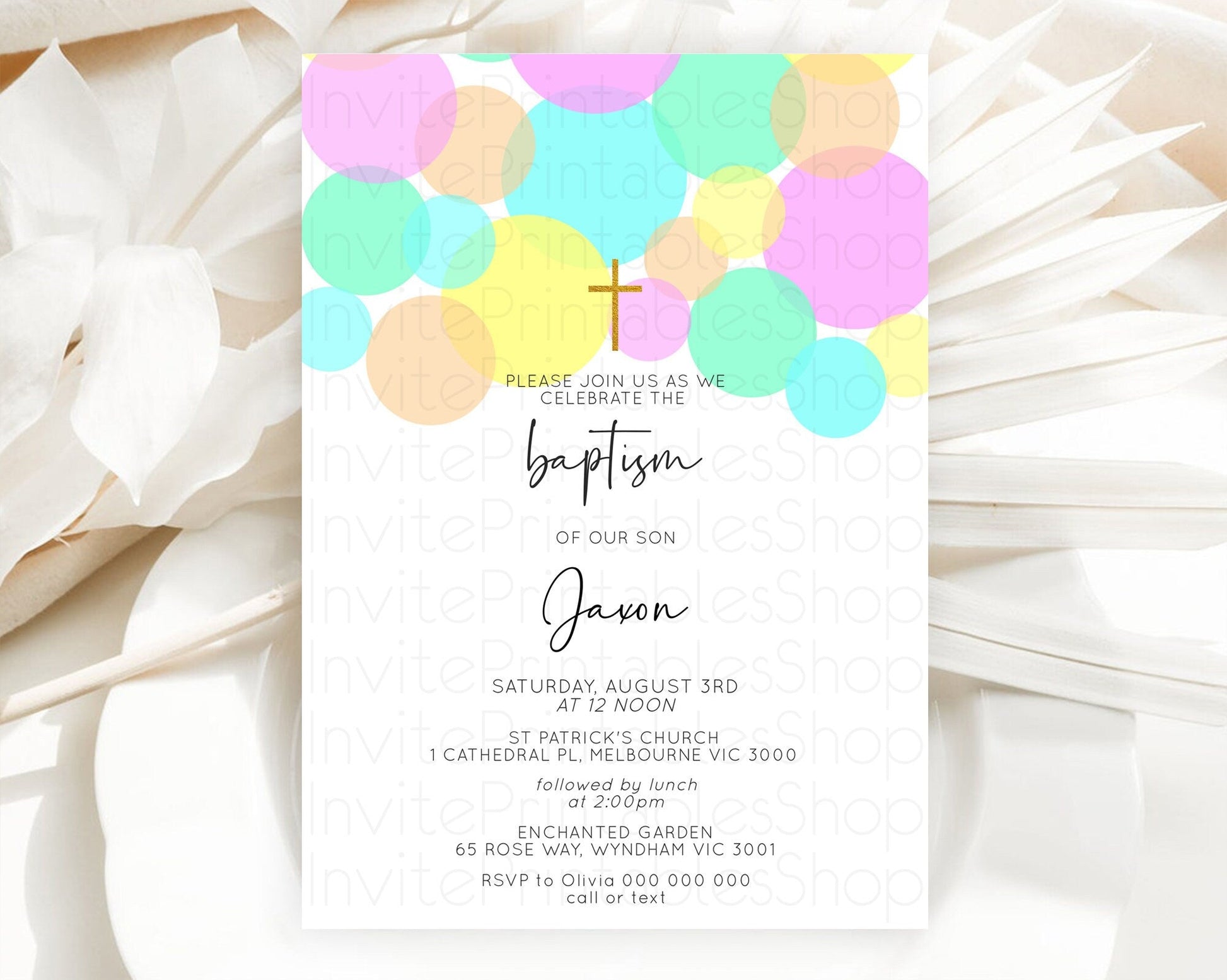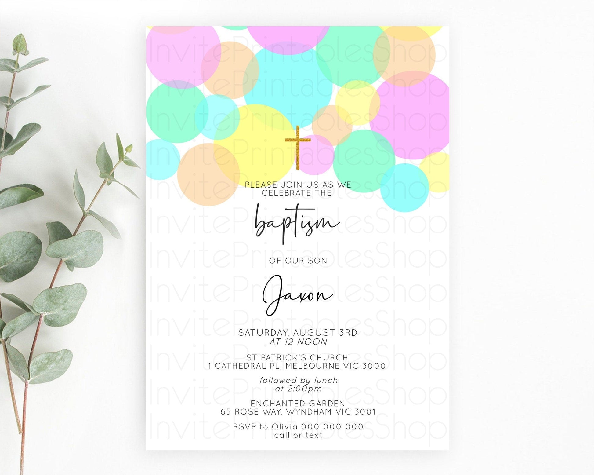 Pastel Baptism Invitation Pastel Confetti Baptism 1st Birthday Invitation Colorful Rainbow Confetti Bubbles Christening Invitation D10409