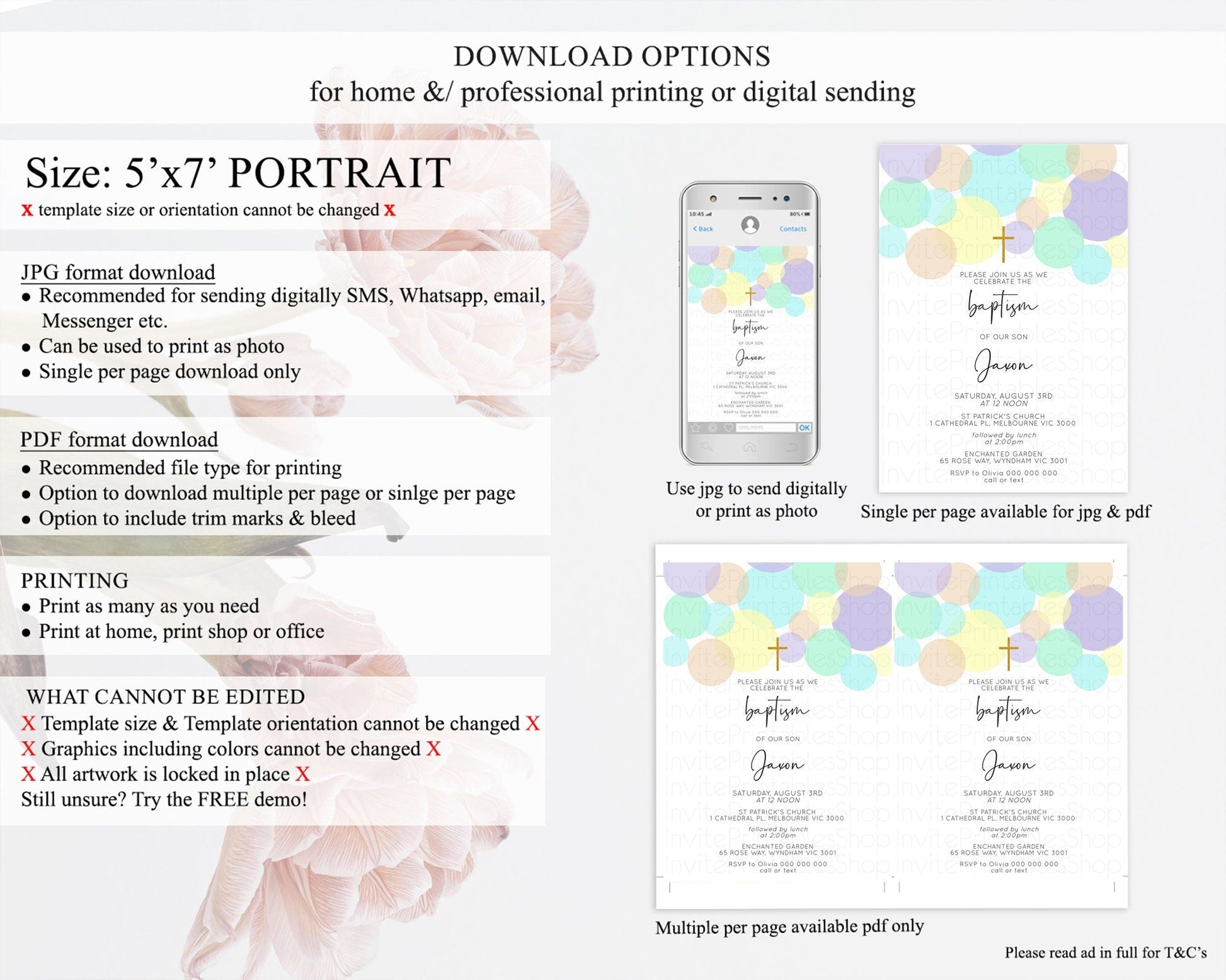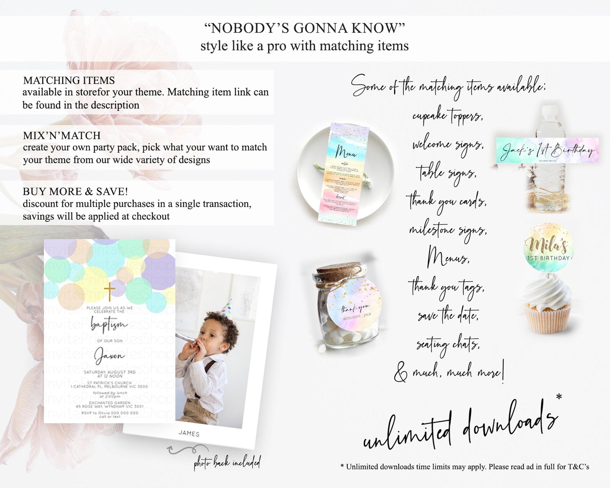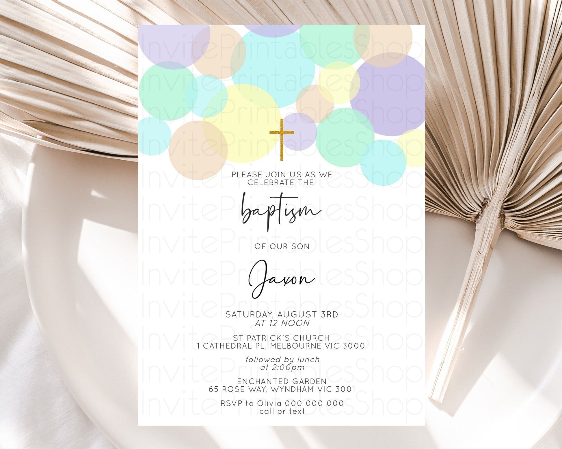 Pastel Baptism Invitation Pastel Confetti Baptism 1st Birthday Invitation Colorful Rainbow Confetti Bubbles Christening Invitation D10414