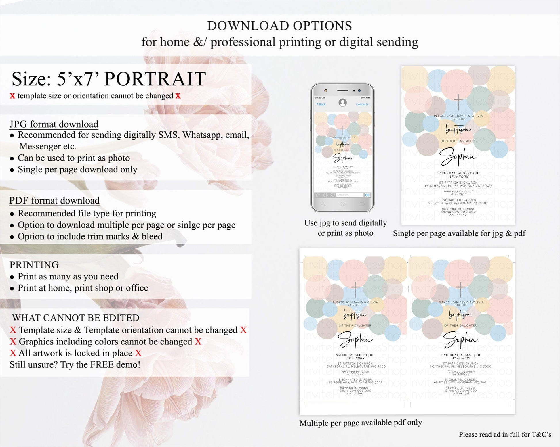 Pastel Baptism Invitation Pastel Confetti Baptism 1st Birthday Invitation Colorful Rainbow Confetti Bubbles Christening Invitation D10602