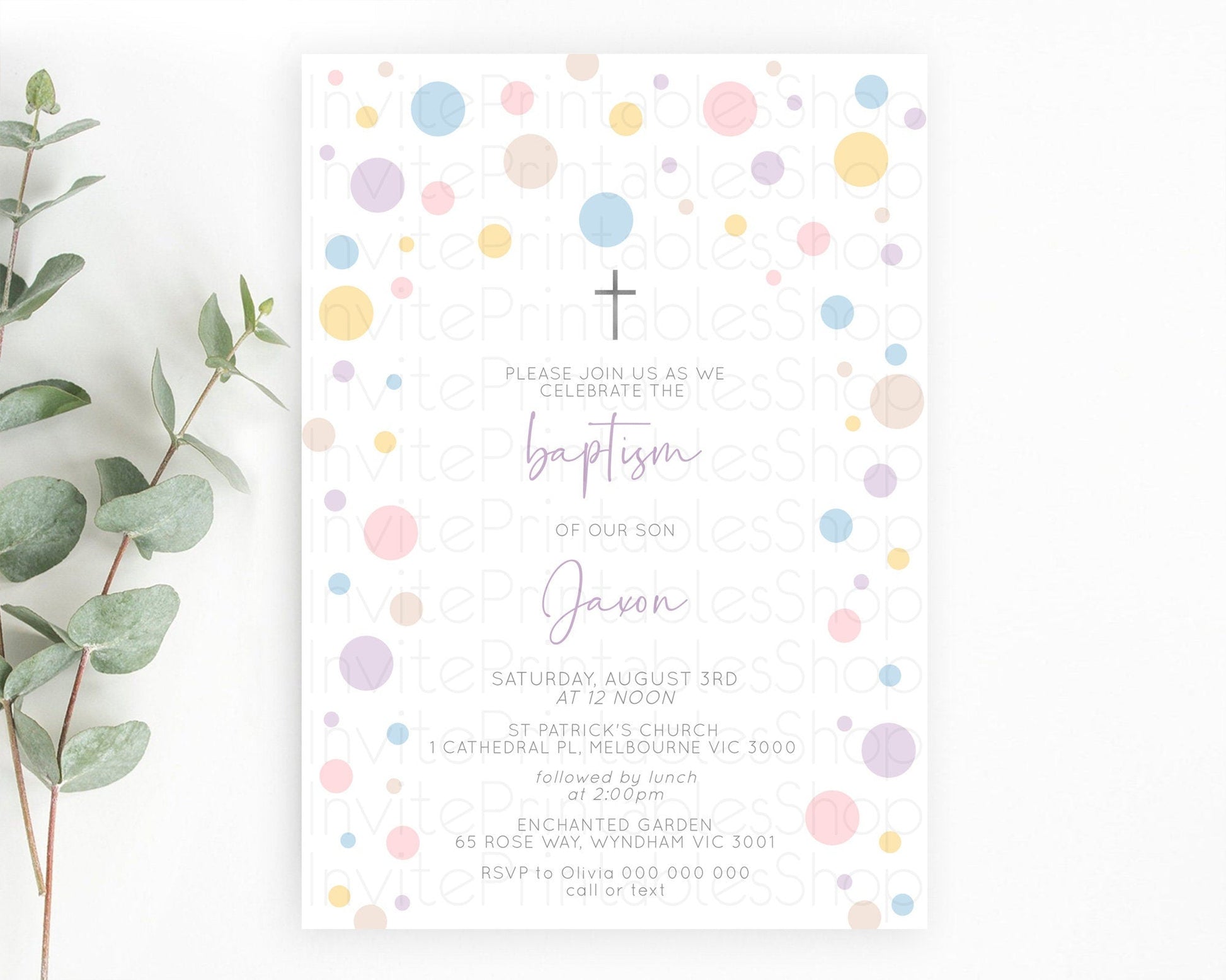 Pastel Baptism Invitation Pastel Confetti Baptism 1st Birthday Invitation Colorful Rainbow Confetti Bubbles Christening Invitation D10759
