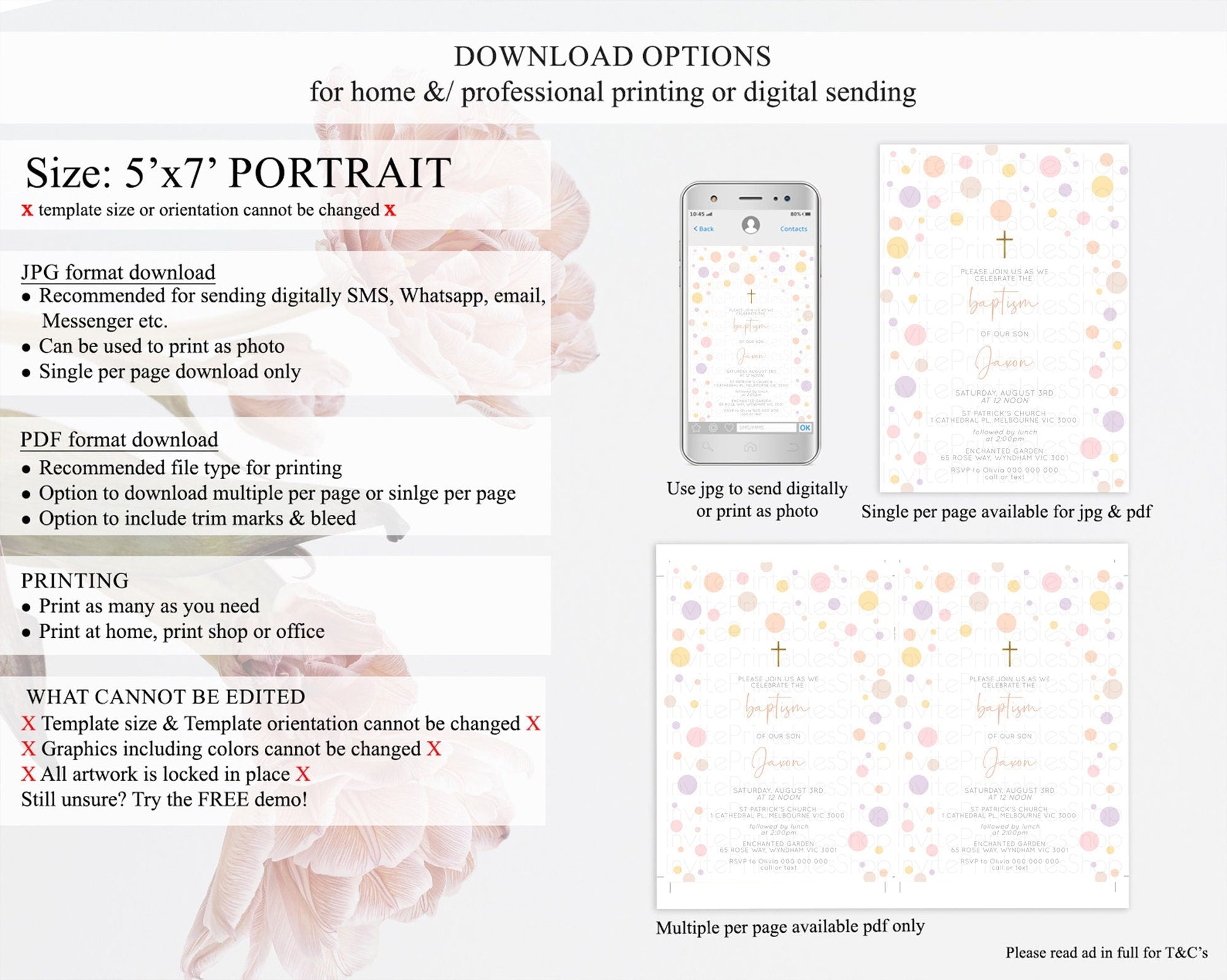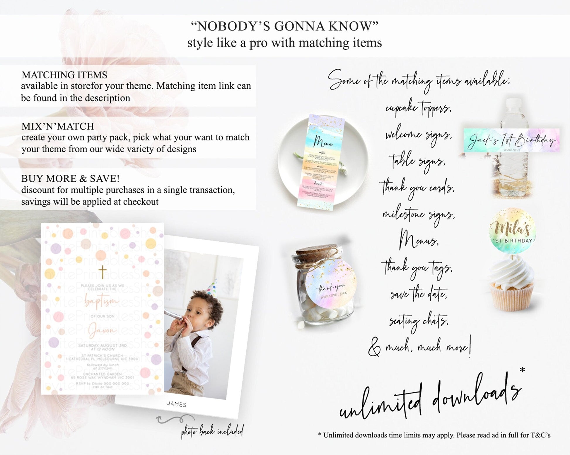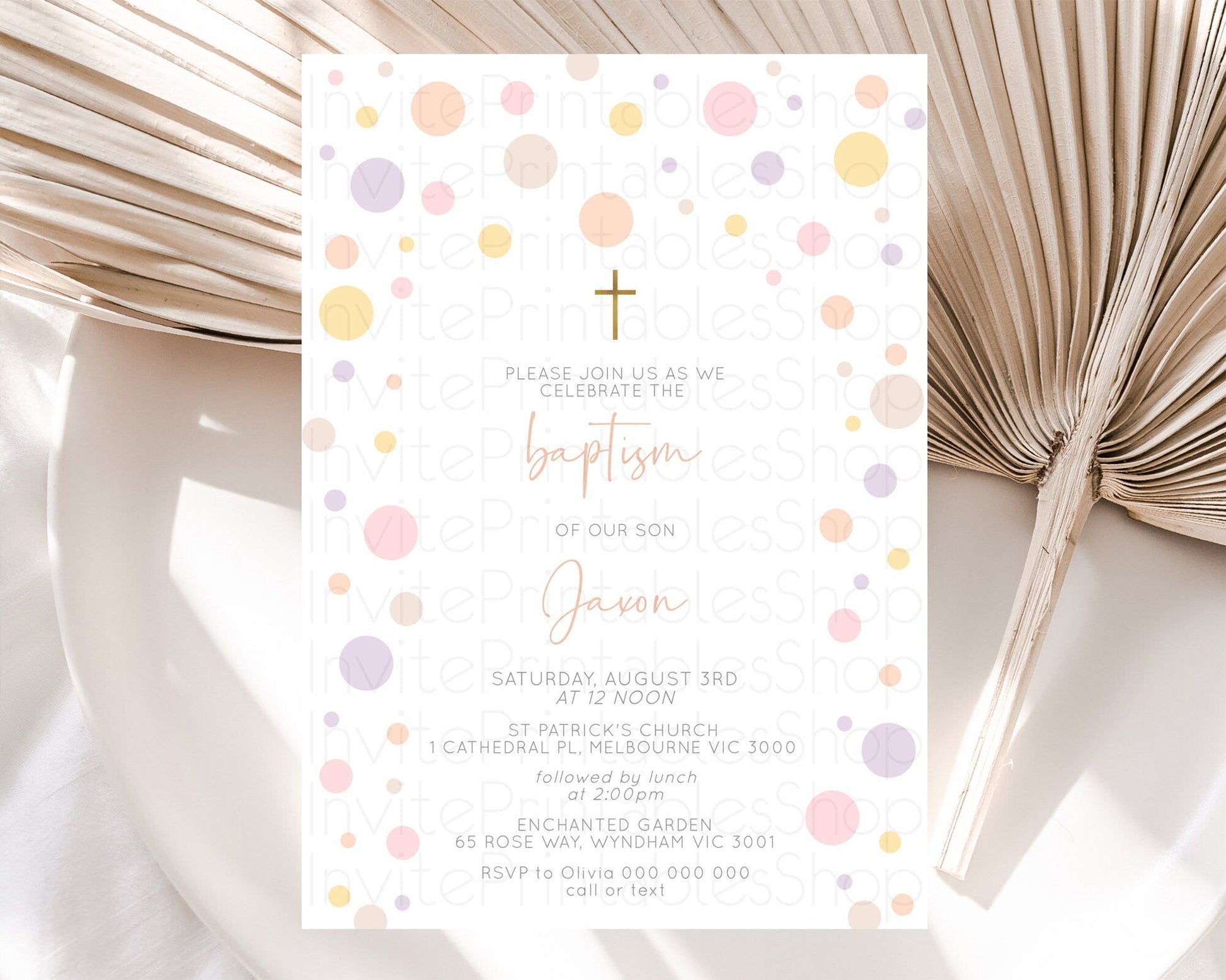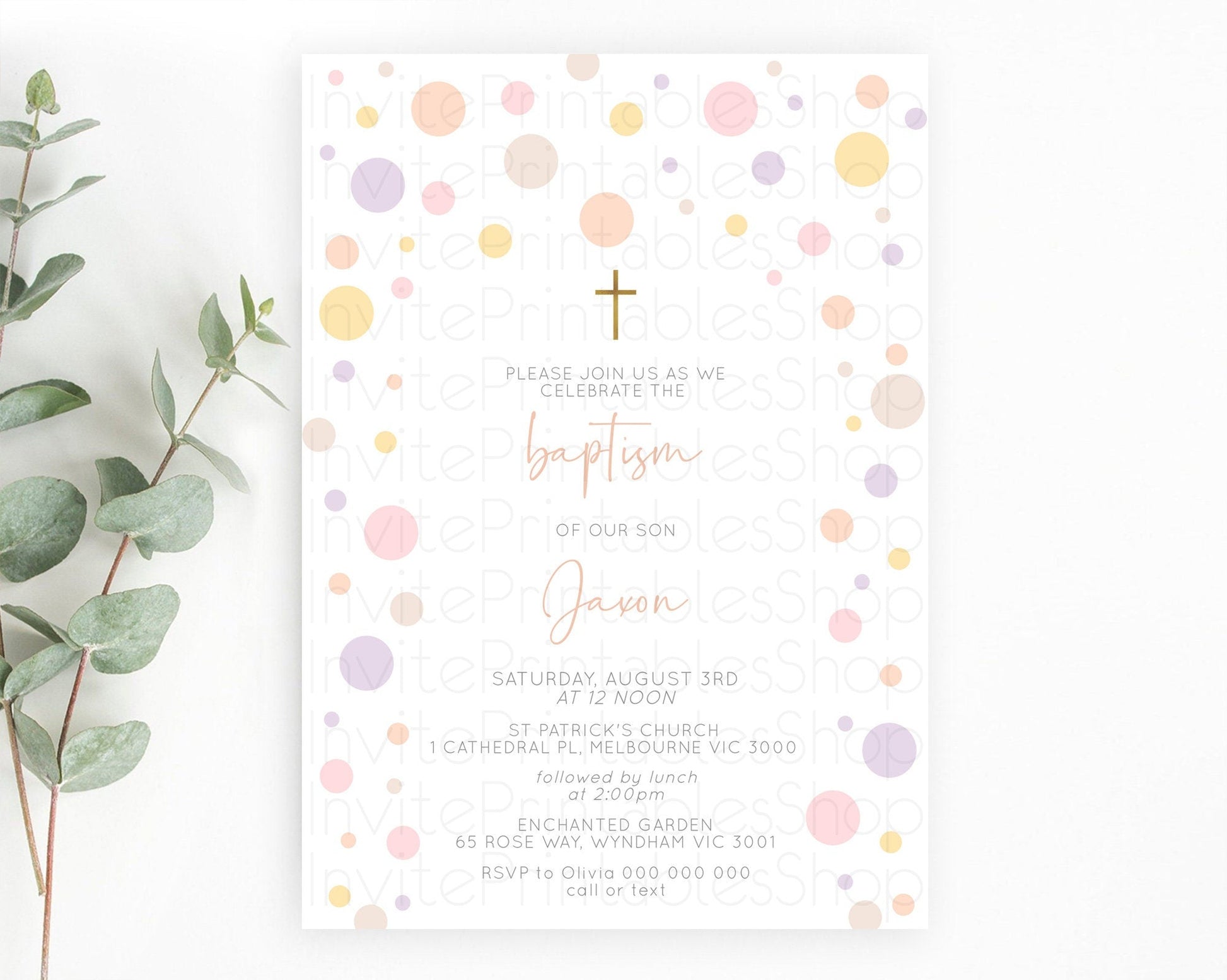 Pastel Baptism Invitation Pastel Confetti Baptism 1st Birthday Invitation Colorful Rainbow Confetti Bubbles Christening Invitation D10759