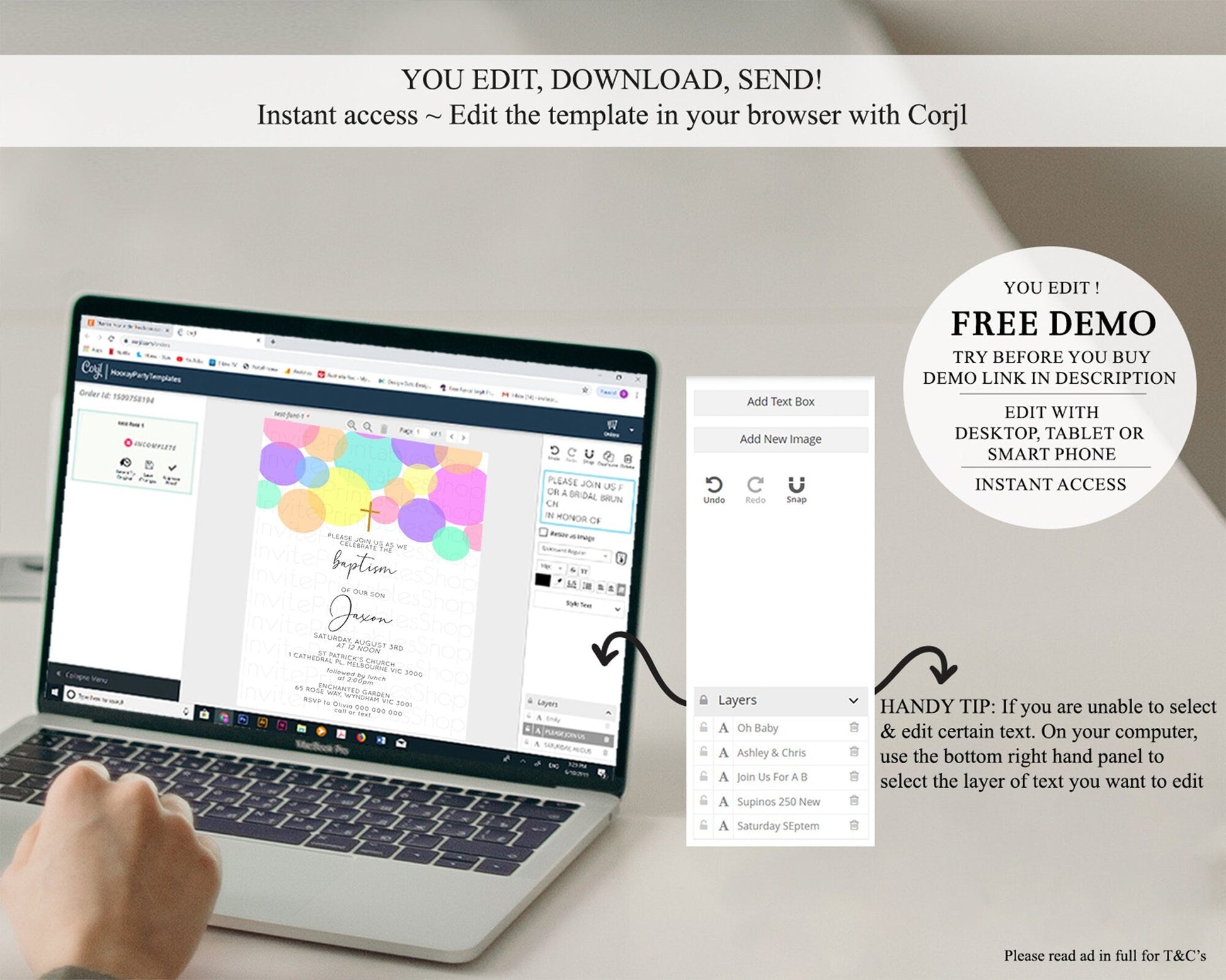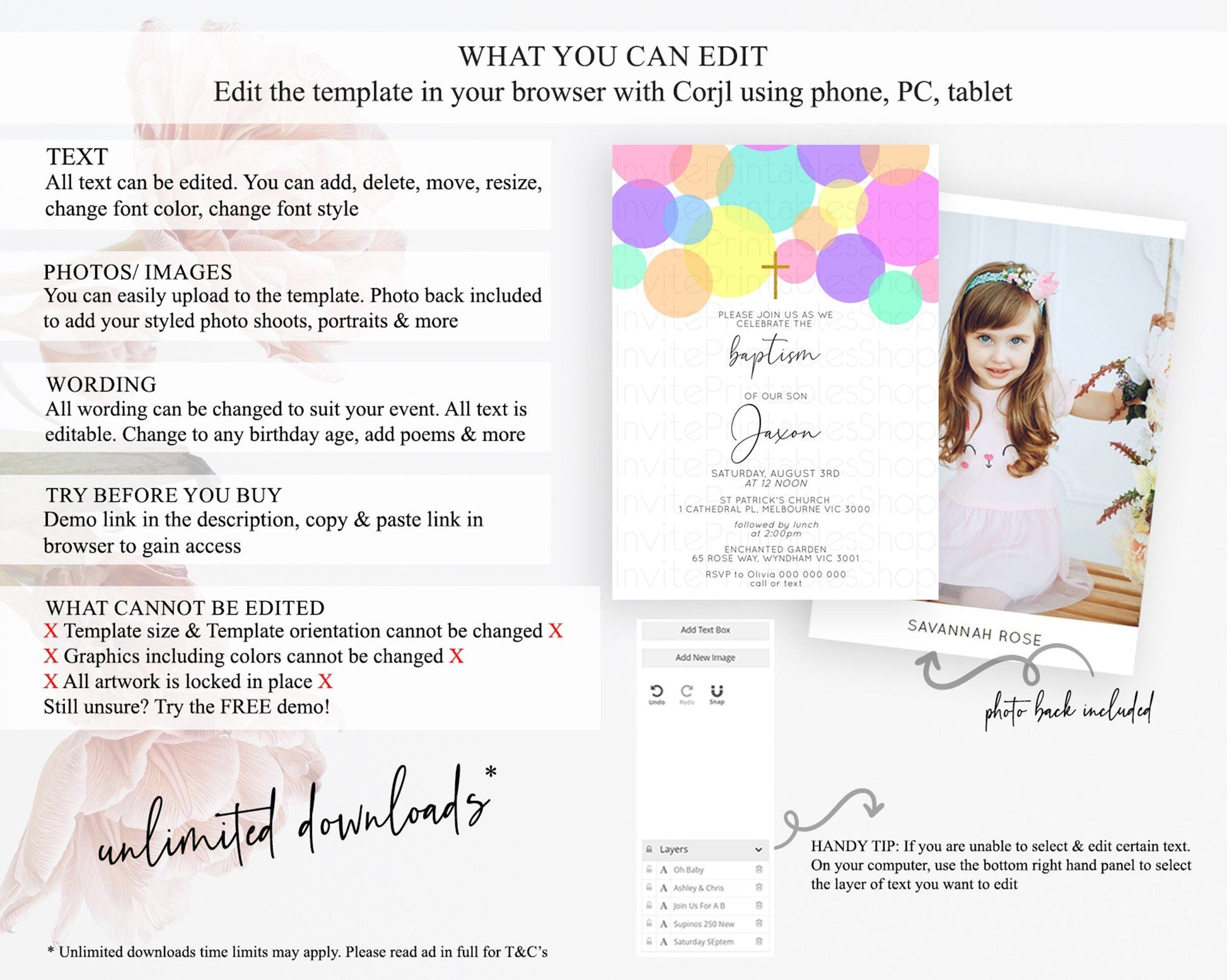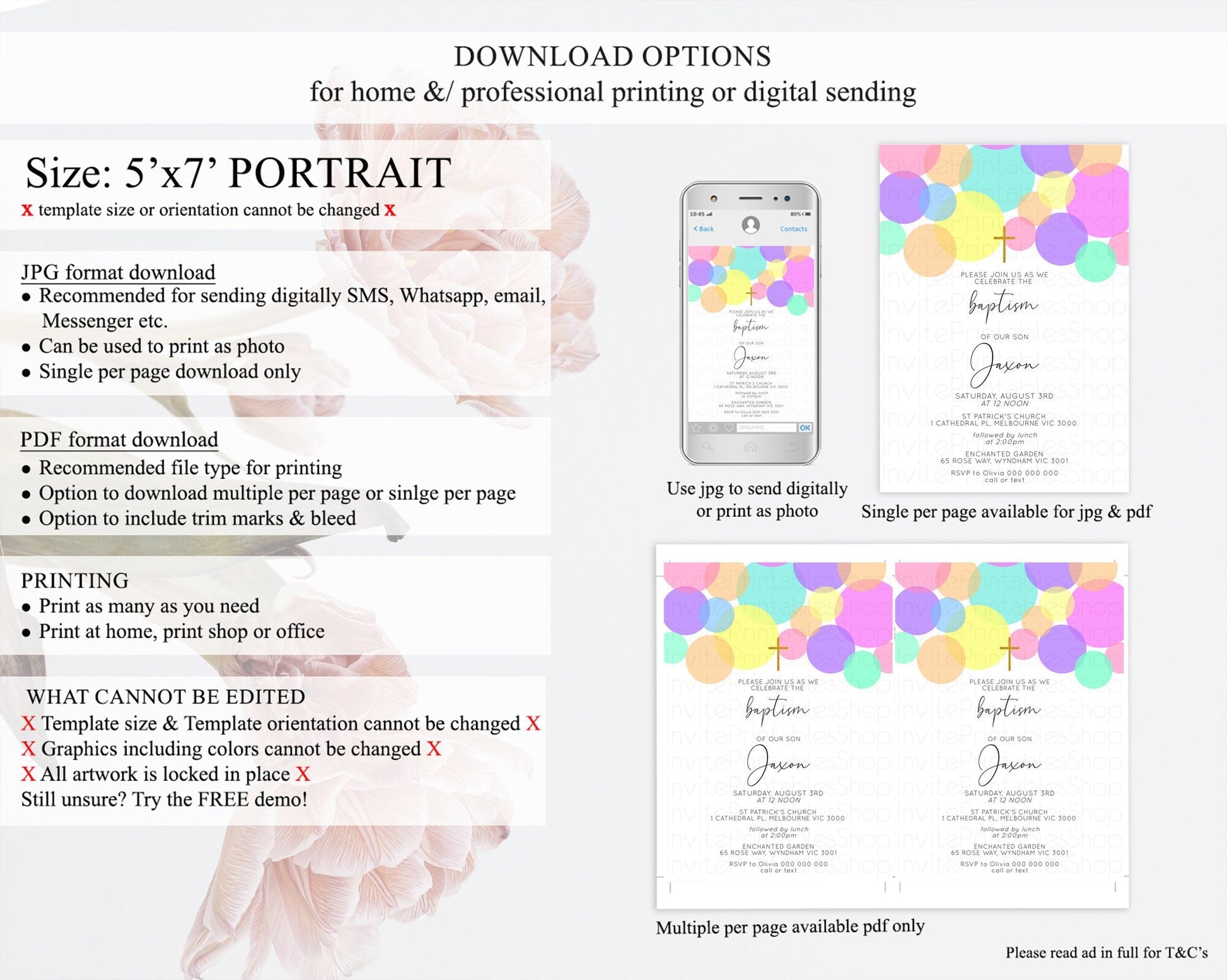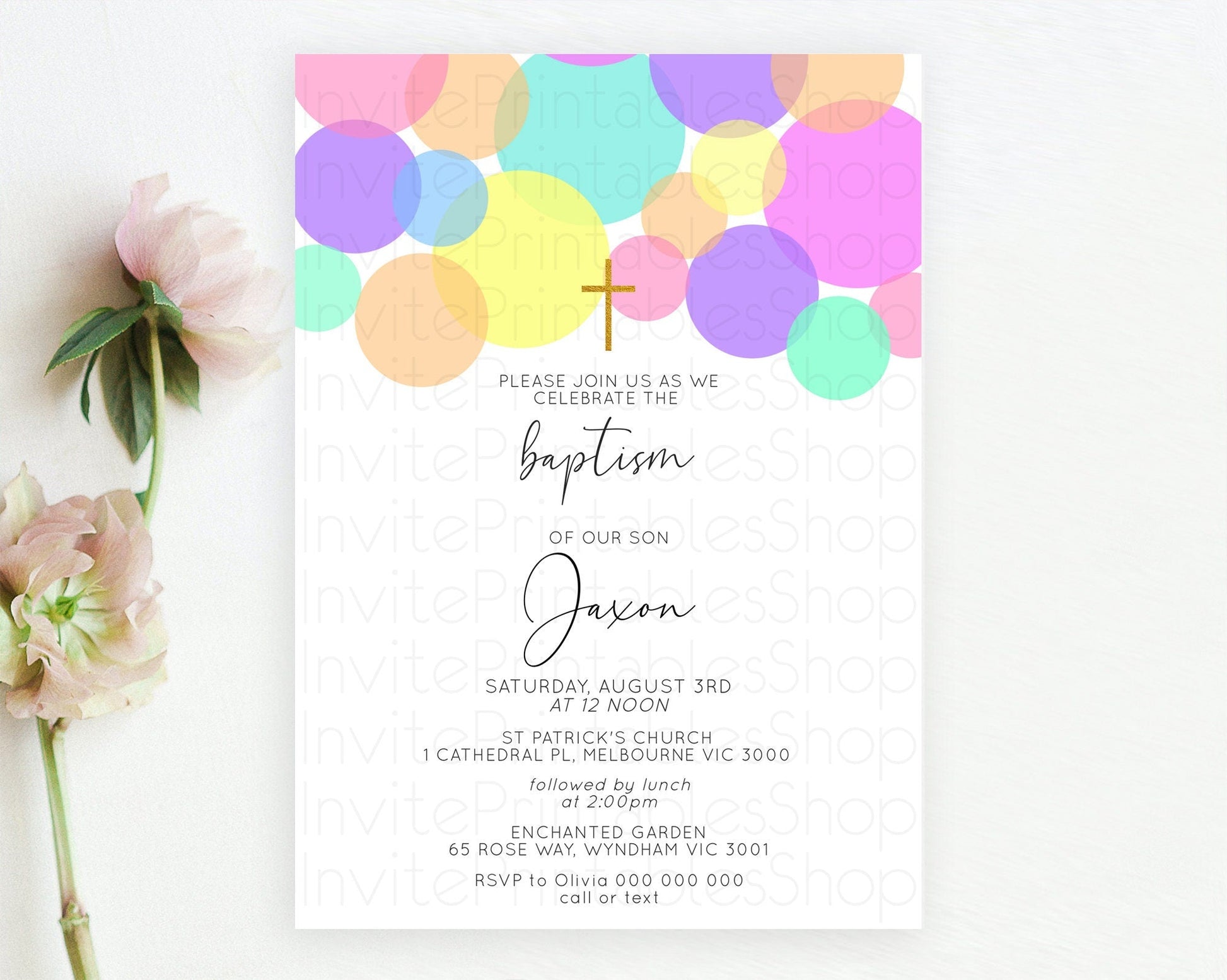 Pastel Baptism Invitation Pastel Confetti Baptism 1st Birthday Invitation Colorful Rainbow Confetti Bubbles Christening Invitation D10888