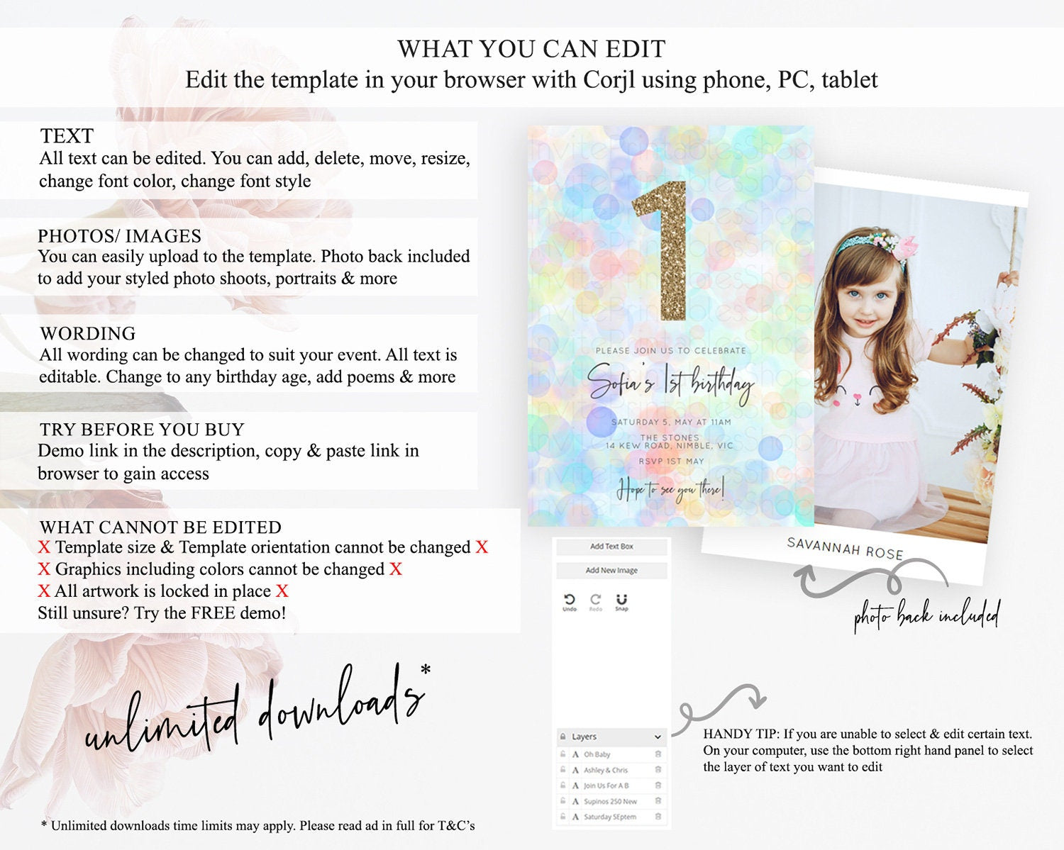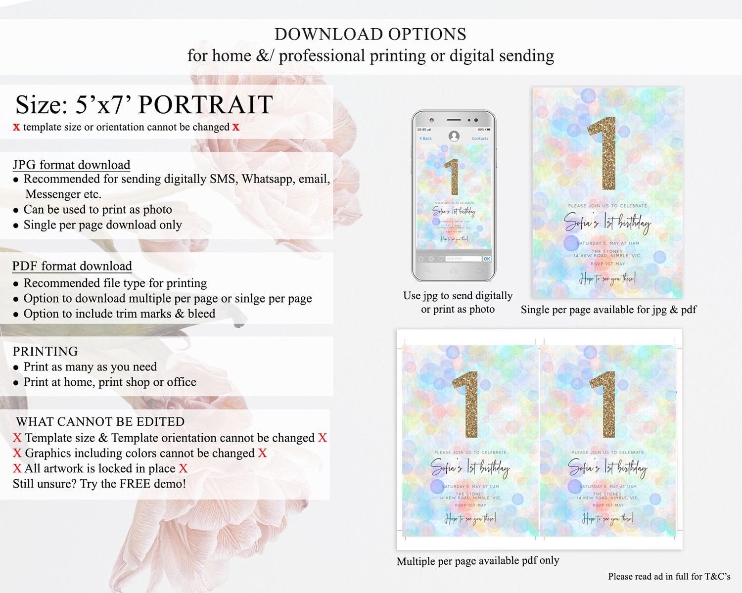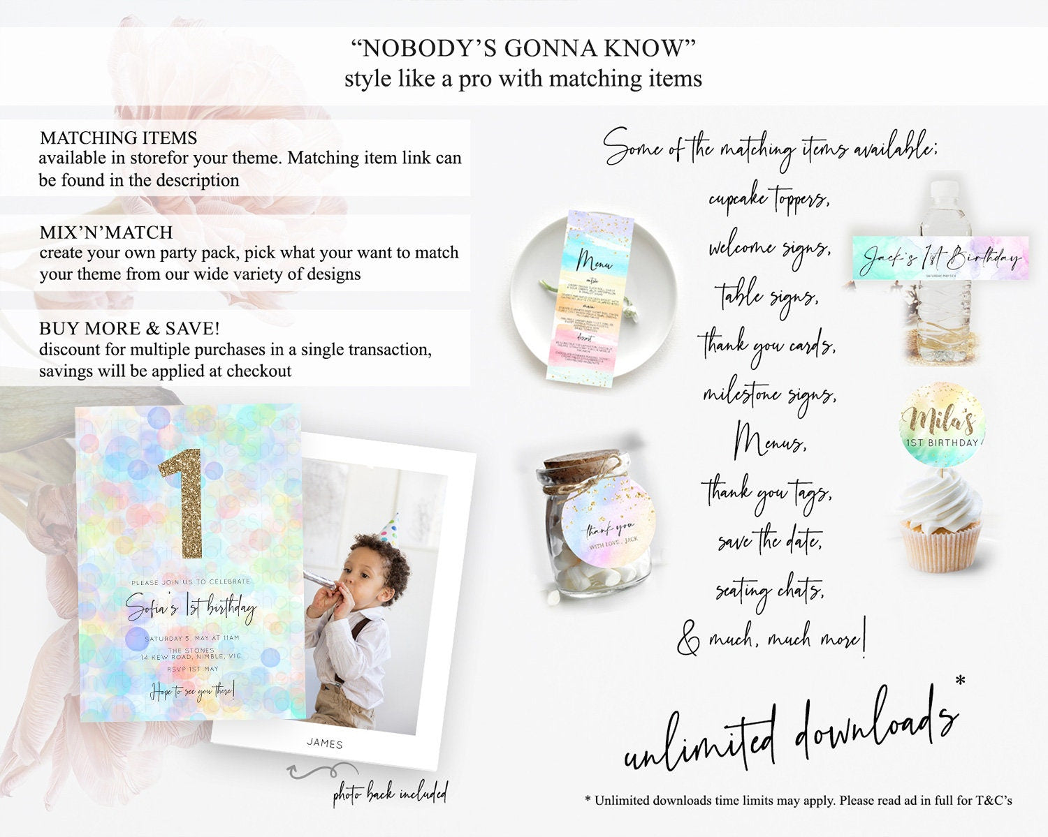 Pastel Birthday Invitation Bath Bomb Party Invitation Pastel Bubbles Invitation Watercolour Invitation 3rd 2nd 1st First Birthday D10444