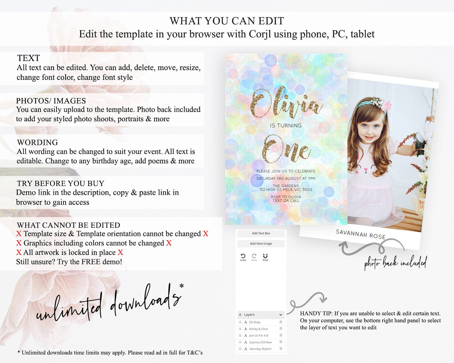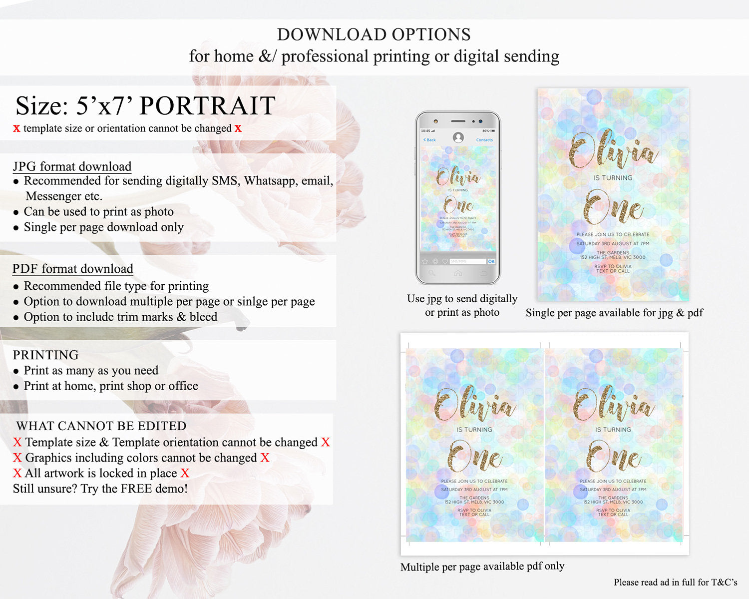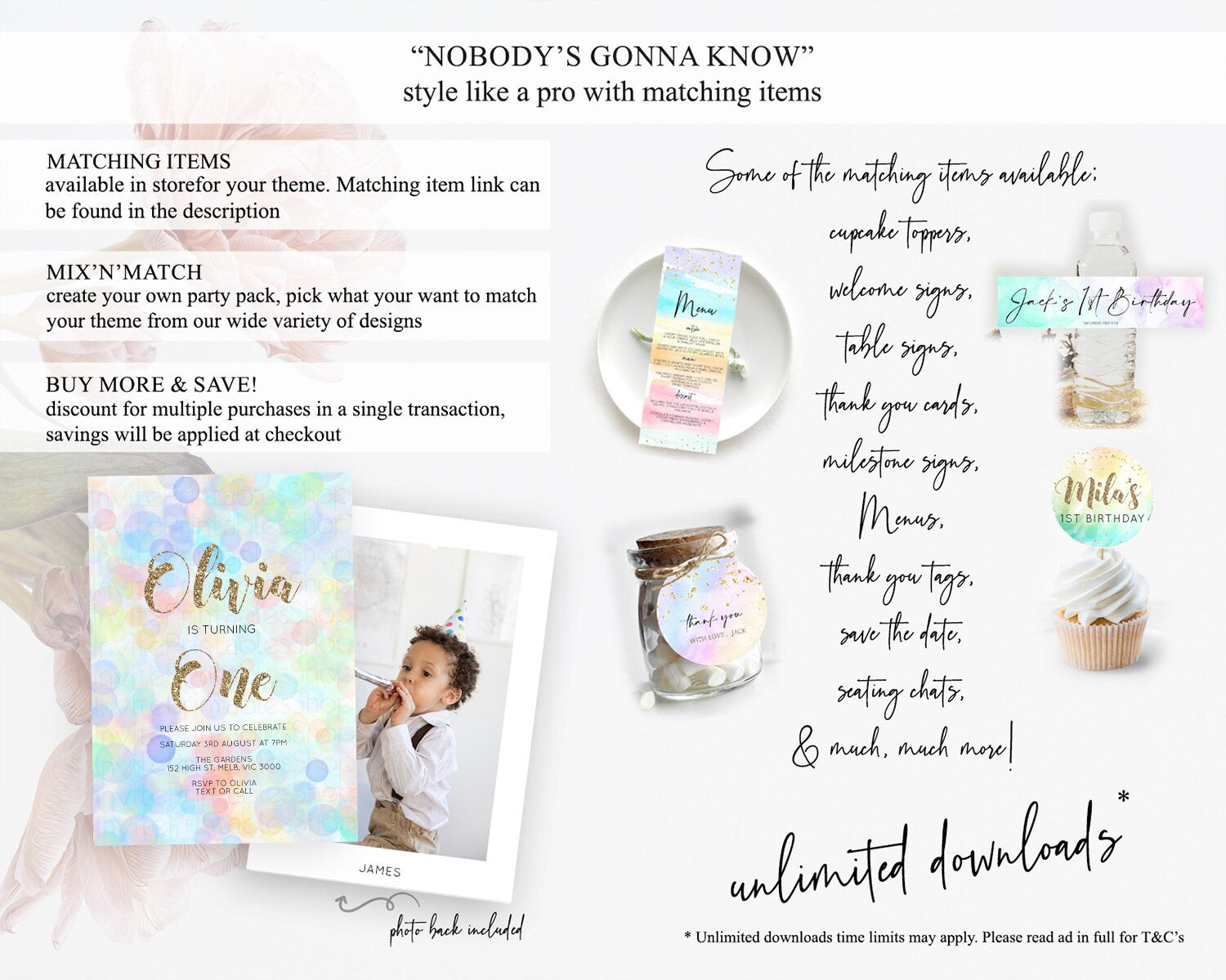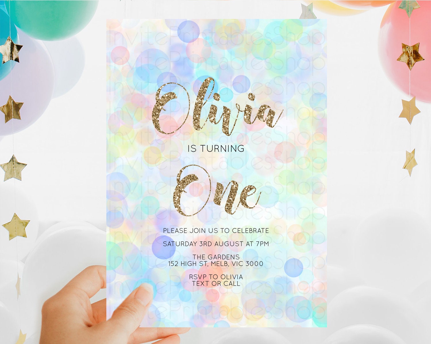 Pastel Birthday Invitation Bath Bomb Party Invitation Pastel Bubbles Invitation Watercolour Invitation 3rd 2nd 1st First Birthday D10447