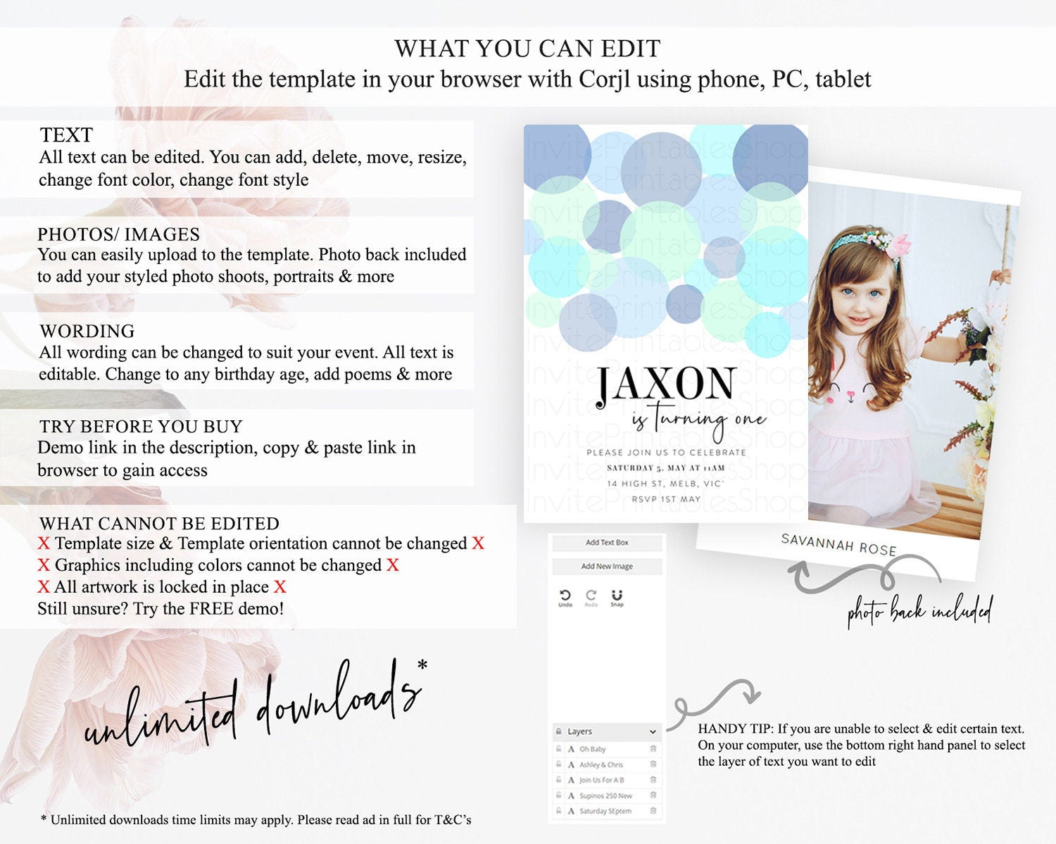 Pastel Birthday Invitation Blue Confetti Birthday Invitation Confetti Birthday Invitation Bubbles Invitation 2nd 1st First Birthday 100208