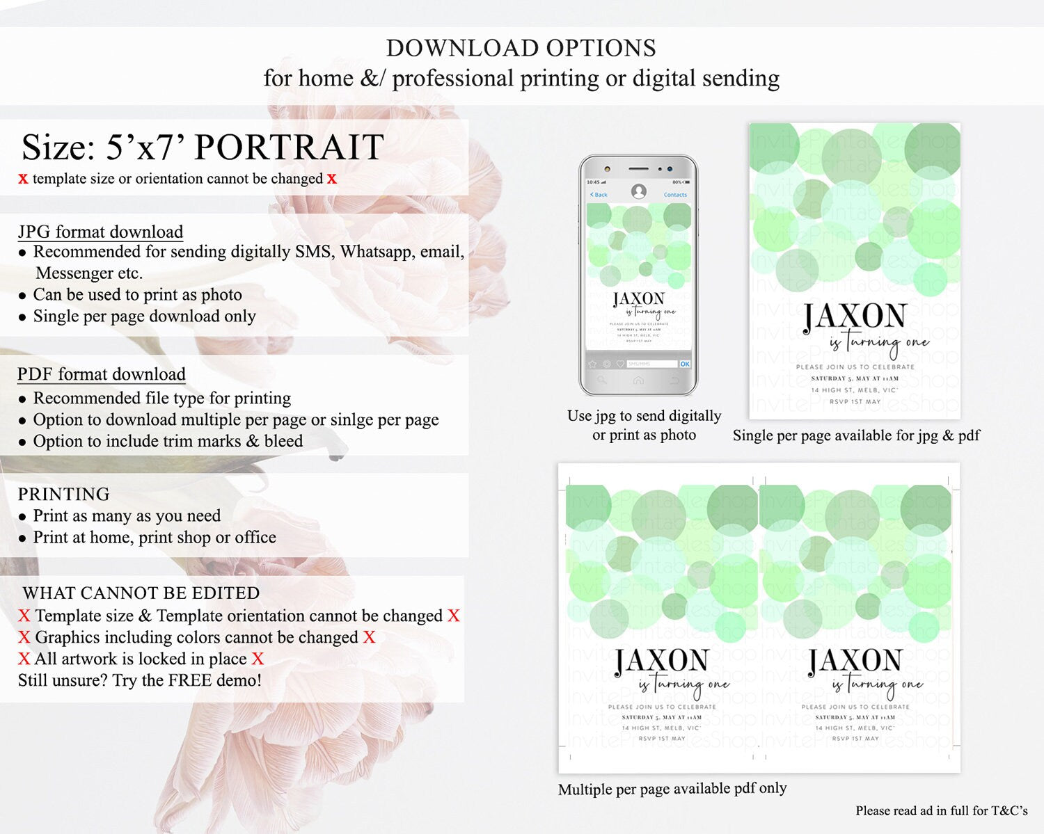 • Template size & orientation cannot be changed. Please use the demo link to confirm this product suits your needs.
