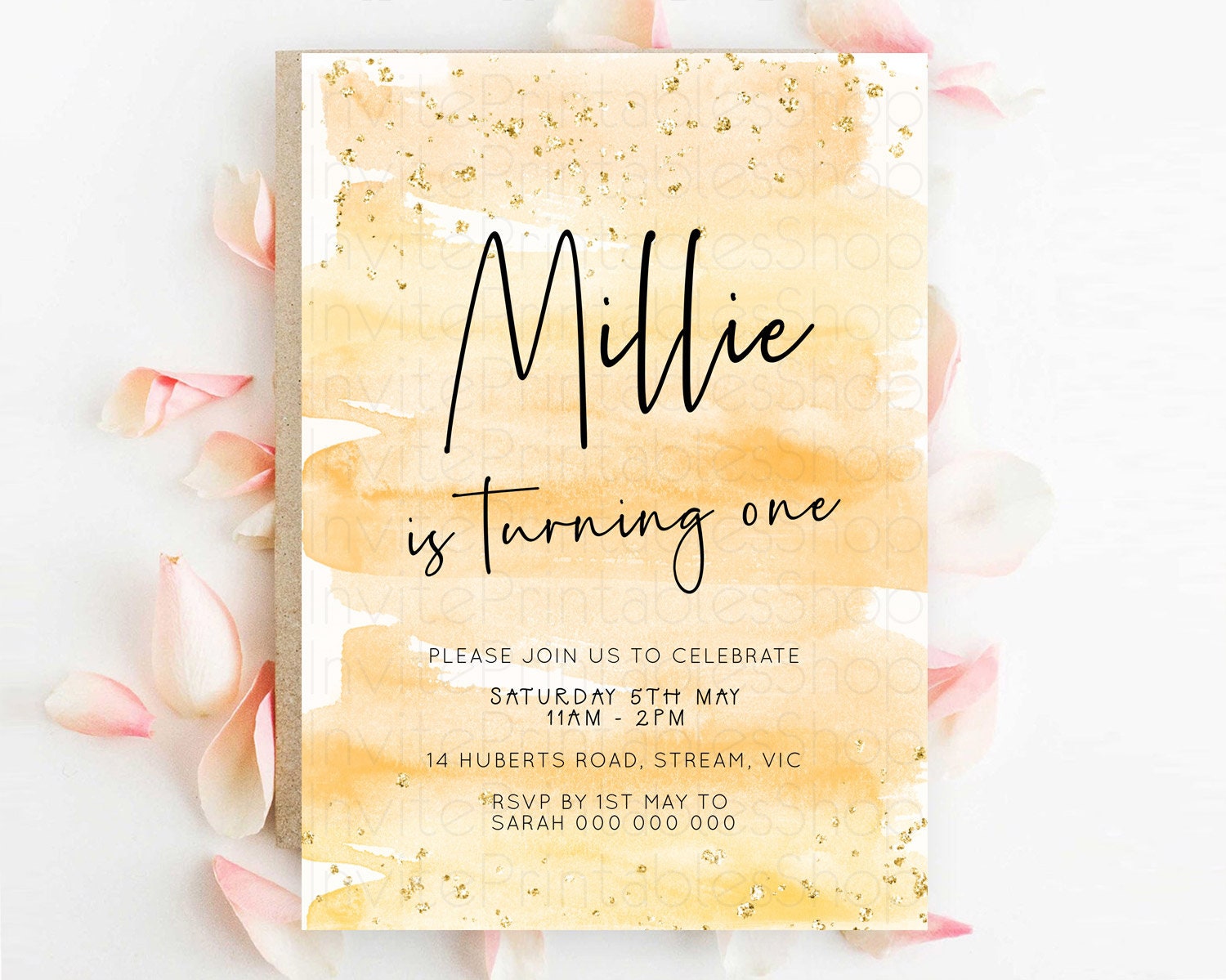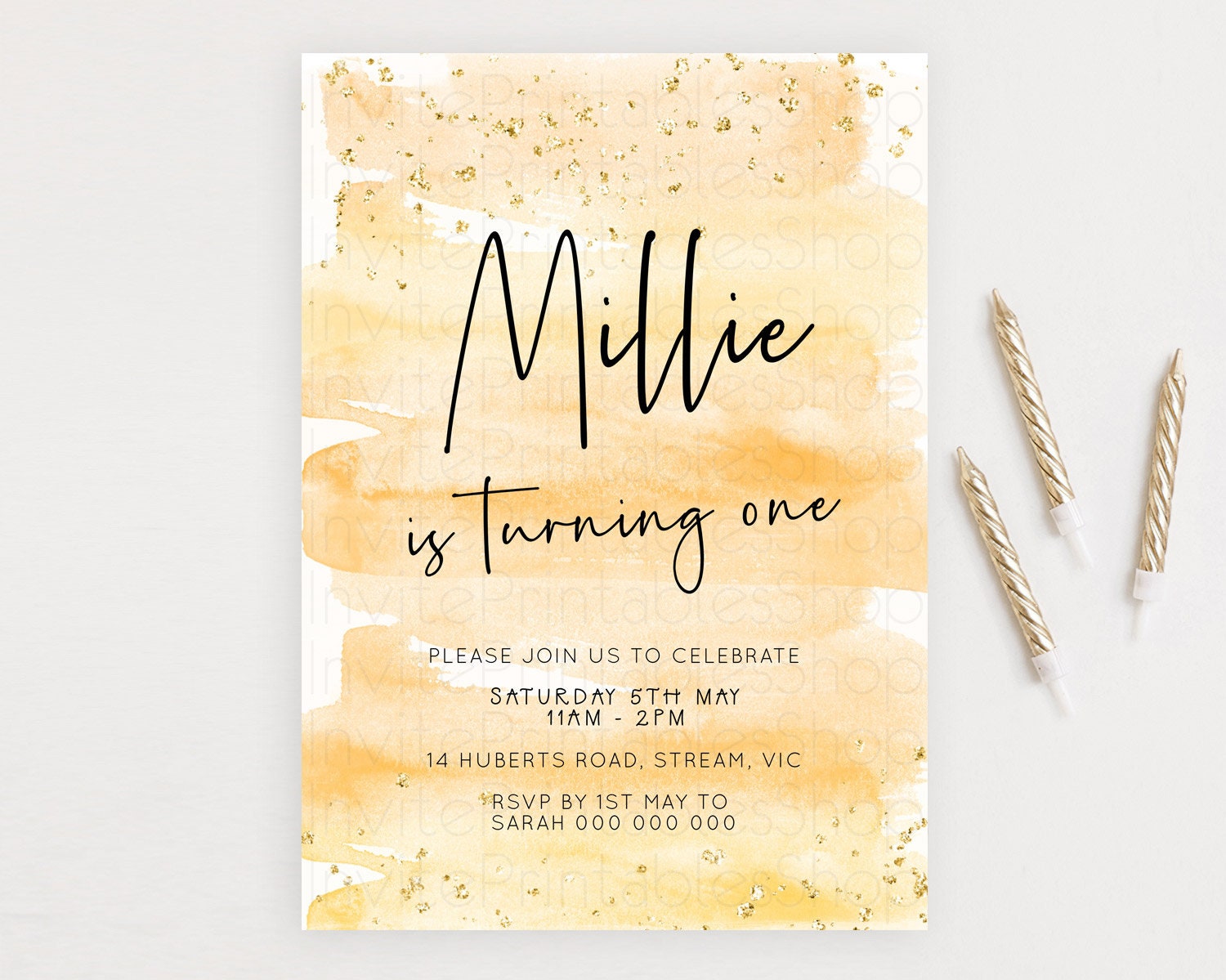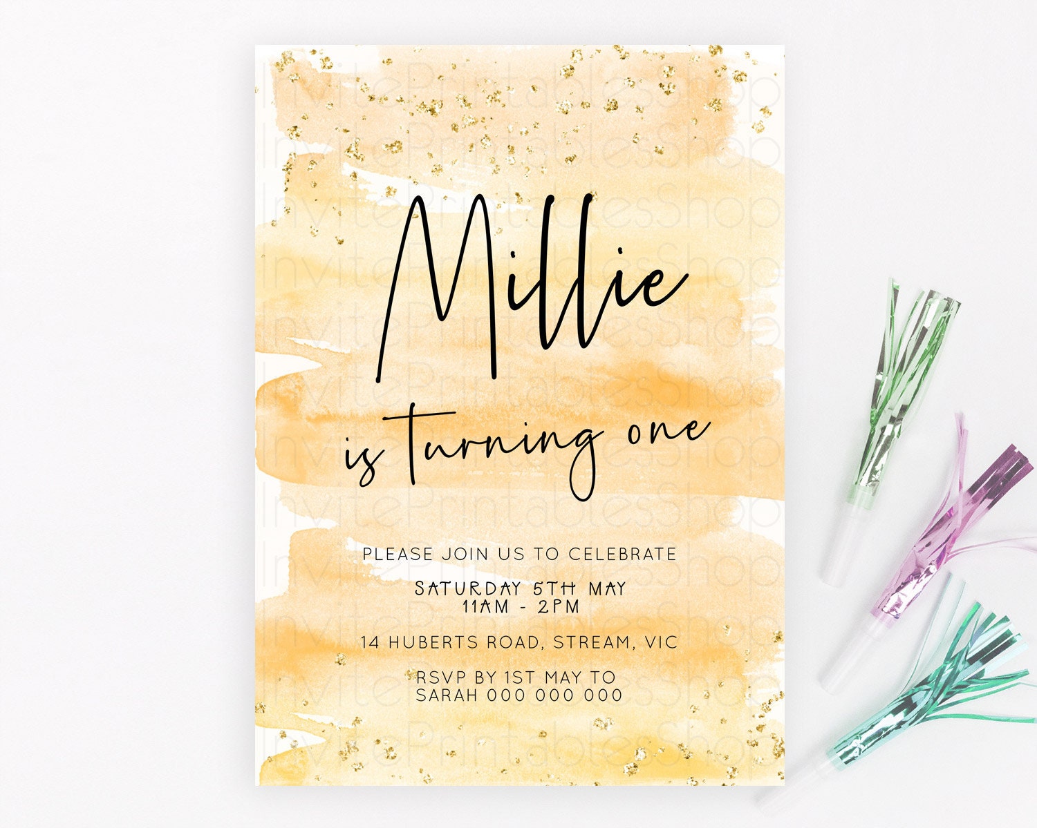 Pastel Birthday Invitation Ombre Watercolor Birthday Invitation Glitter Rainbow Color Splash 1st 2nd 3rd Birthday Invitation D23047