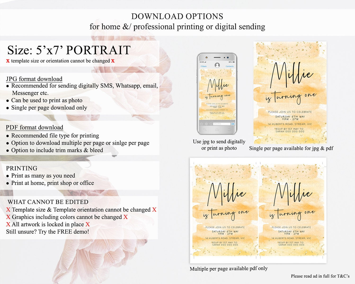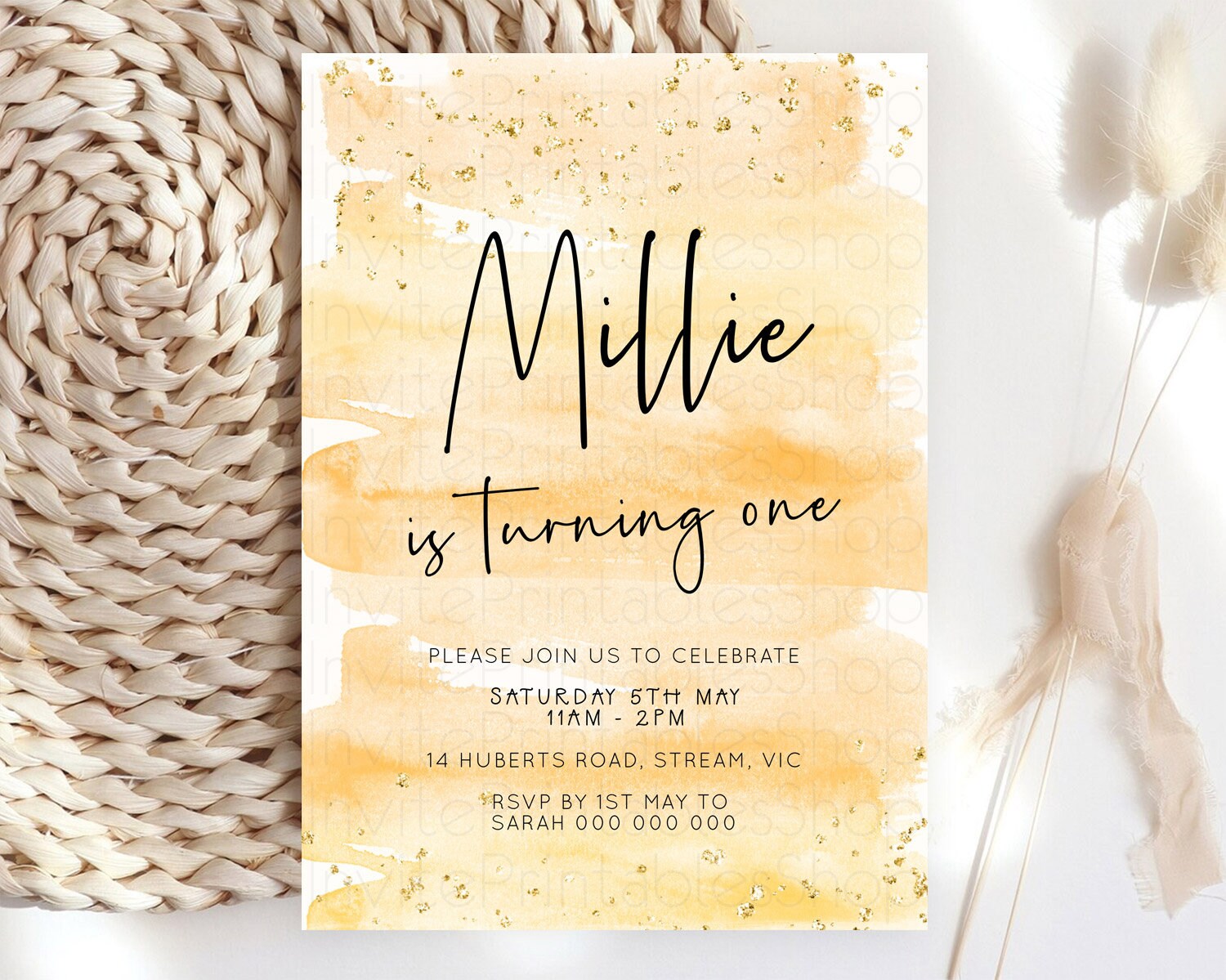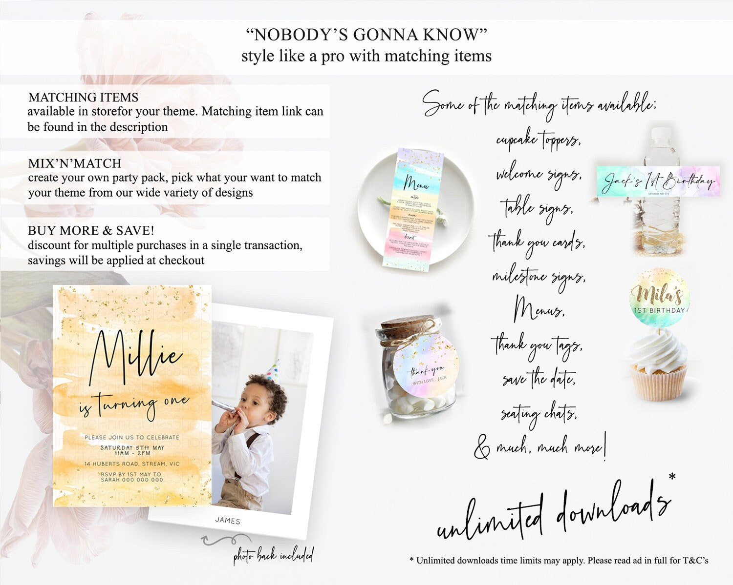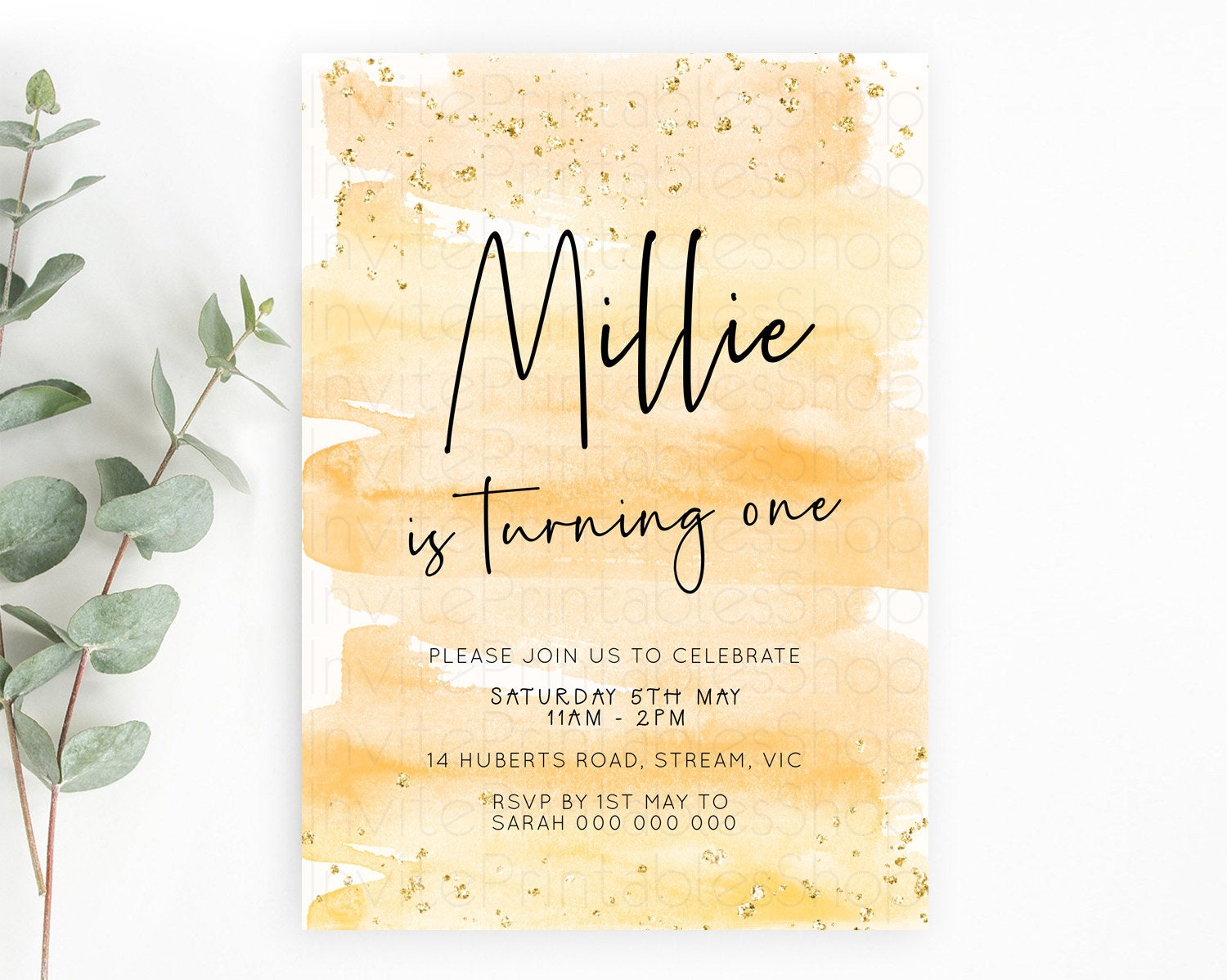 Pastel Birthday Invitation Ombre Watercolor Birthday Invitation Glitter Rainbow Color Splash 1st 2nd 3rd Birthday Invitation D23047