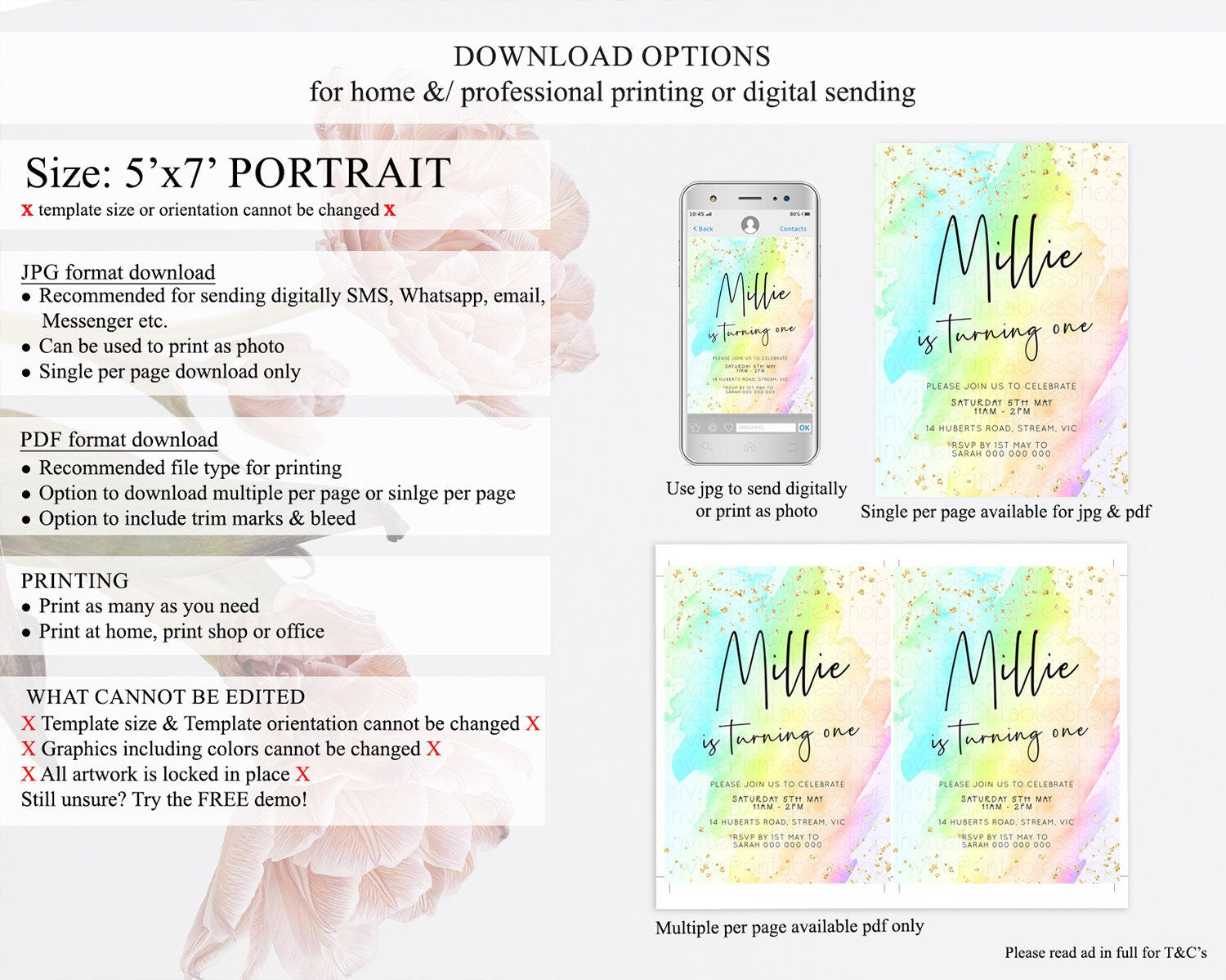 • Template size & orientation cannot be changed. Please use the demo link to confirm this product suits your needs.