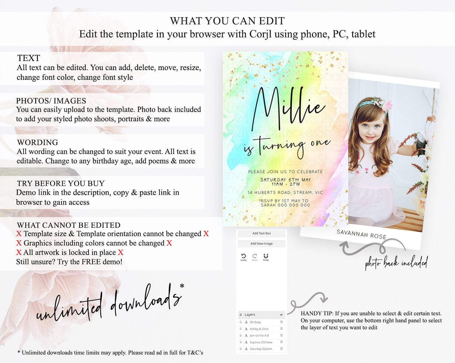 • After purchase, Corjl emails your editing link. Allow up to 15 minutes for delivery.