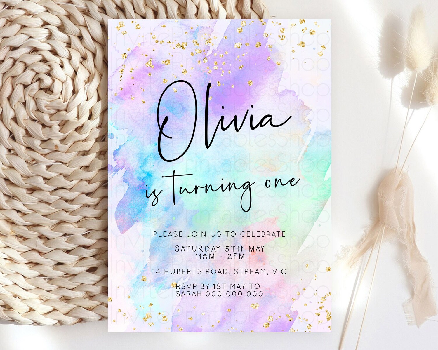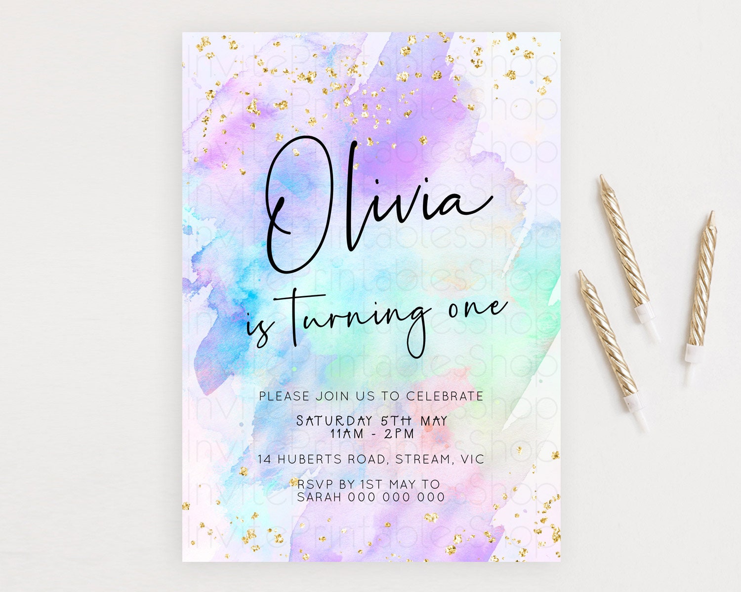 Pastel Watercolor Birthday Invitation