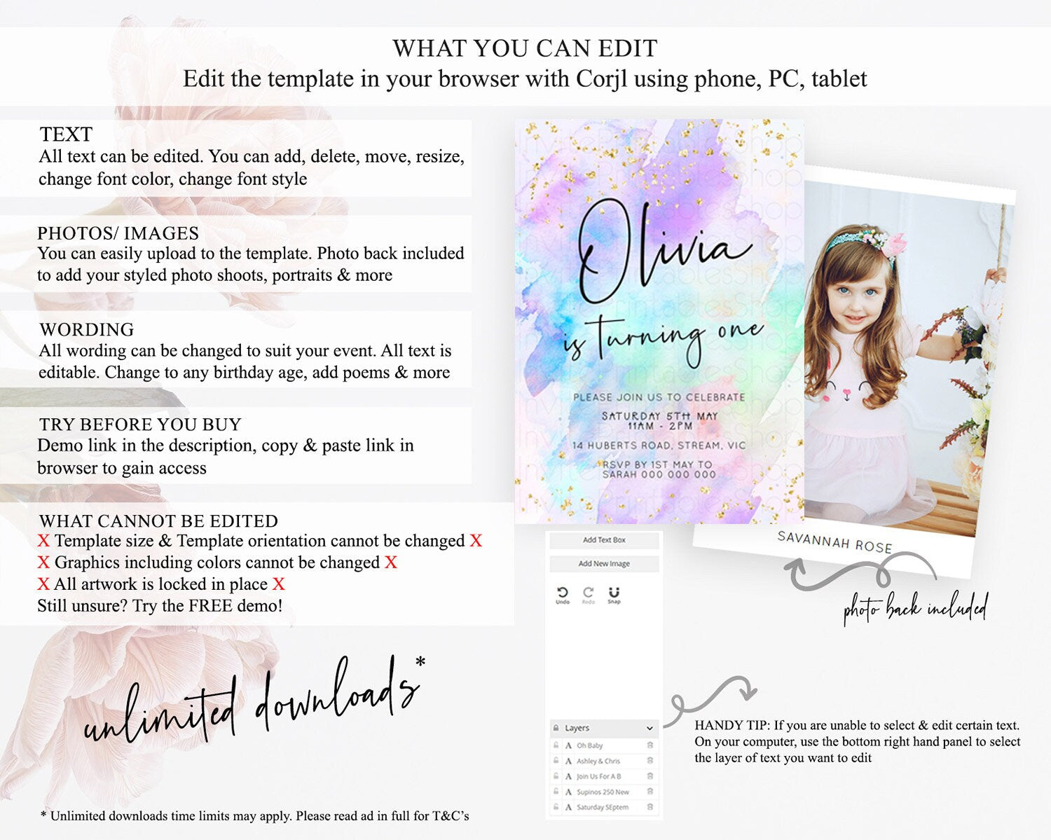 • After purchase, Corjl emails your editing link. Allow up to 15 minutes for delivery.