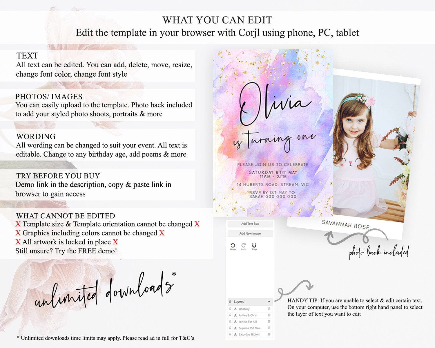 • After purchase, Corjl emails your editing link. Allow up to 15 minutes for delivery.