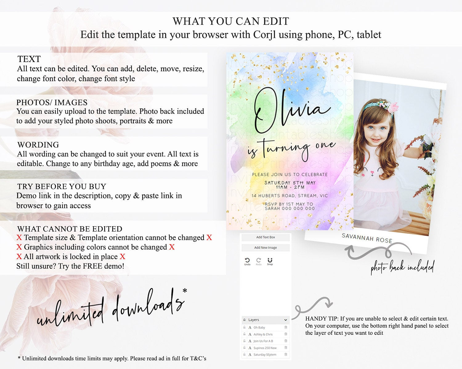 • After purchase, Corjl emails your editing link. Allow up to 15 minutes for delivery.
