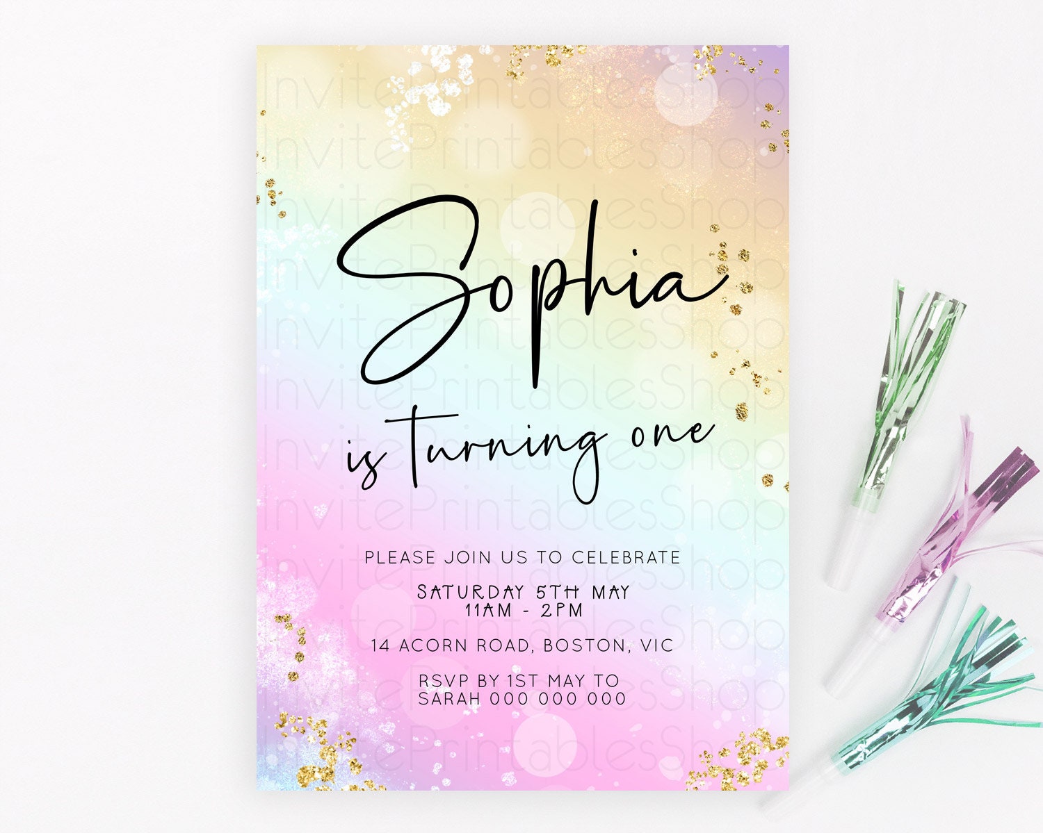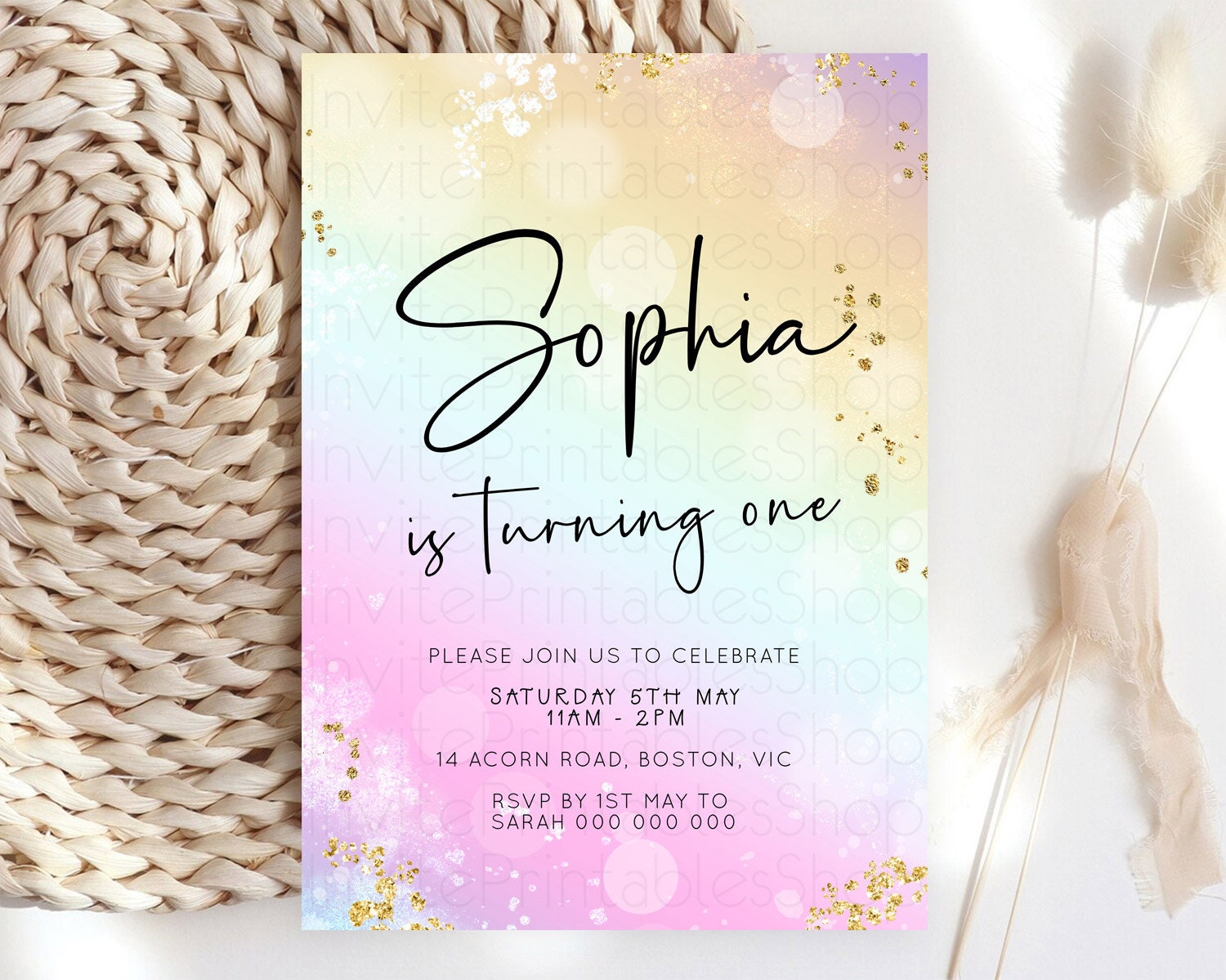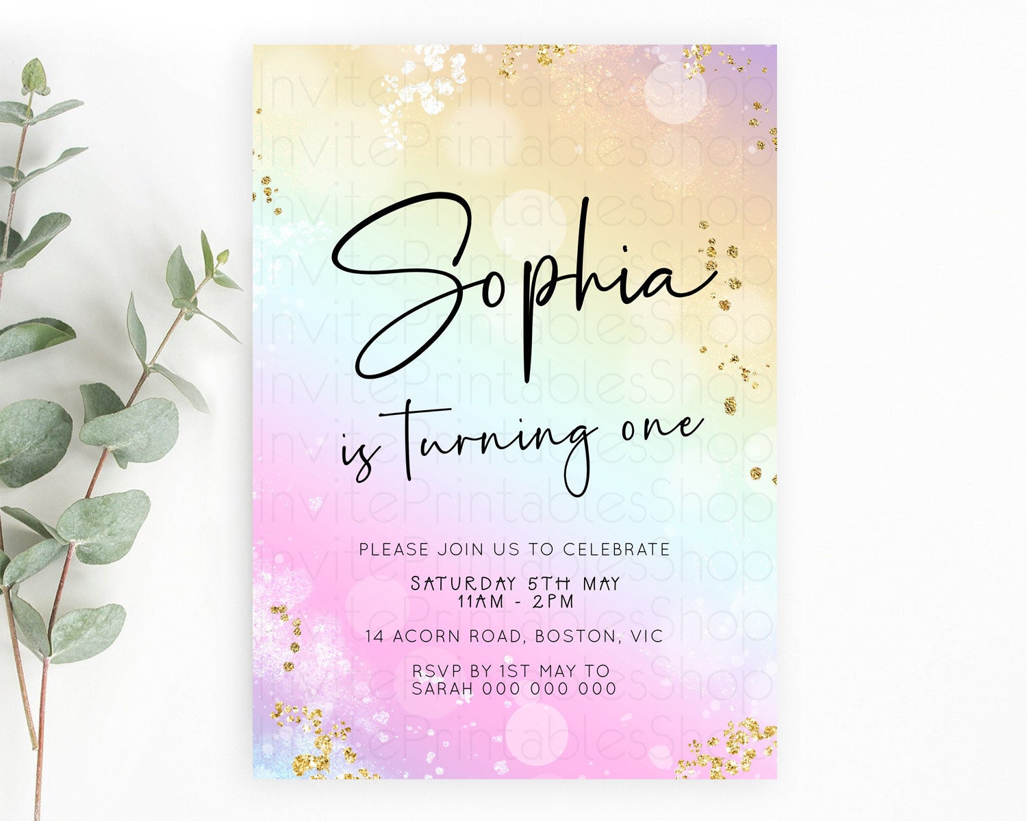 Pastel Birthday Invitation Ombre Watercolor Birthday Invitation Glitter Rainbow Color Splash 1st 2nd 3rd Birthday Invitation D23102