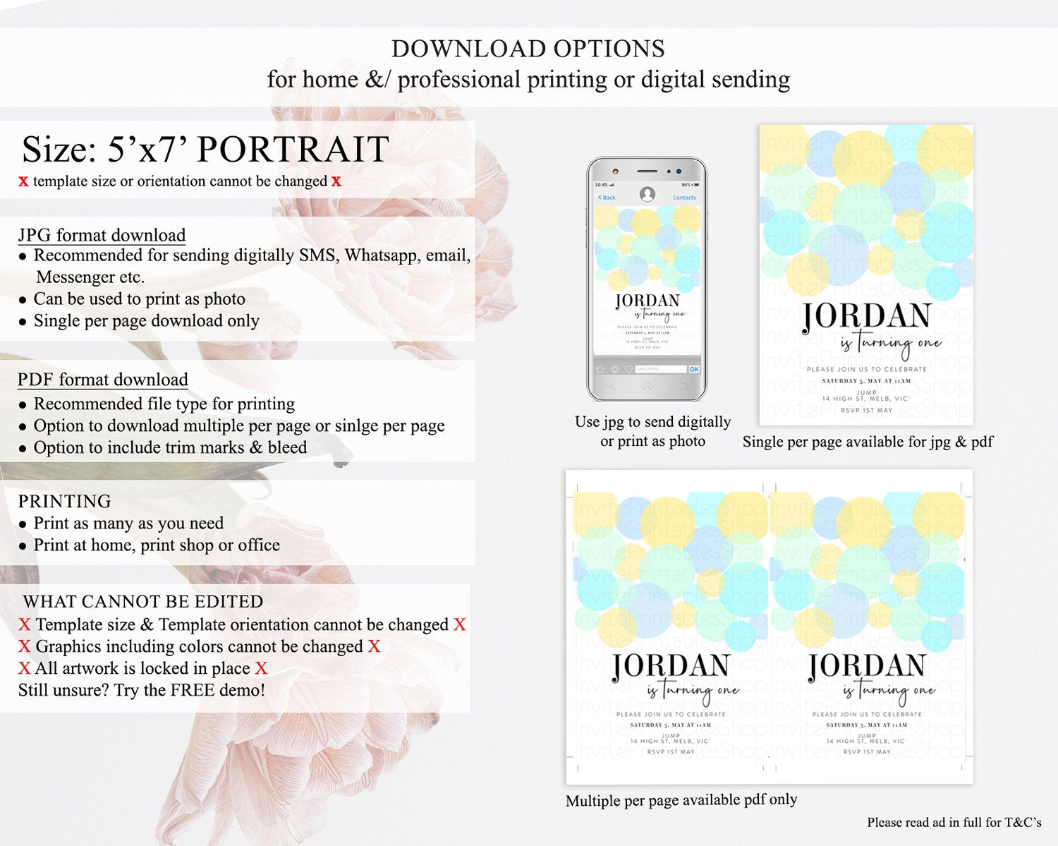 Copyright © 2023 by InvitePrintablesShop PTY LTD All rights reserved. This file or any portion thereof may not be reproduced or resold without the express written permission of the publisher (including edits to the design). Our files are provided as high-resolution PDFs – the end result is dependent upon the printer and paper used. If using a professional printing company, InvitePrintablesShop are not responsible for their specific printing requirements, paper or colour quality. Any changes required to the template are not included with your purchase – the files come as described in the listing only and cannot be changed.
