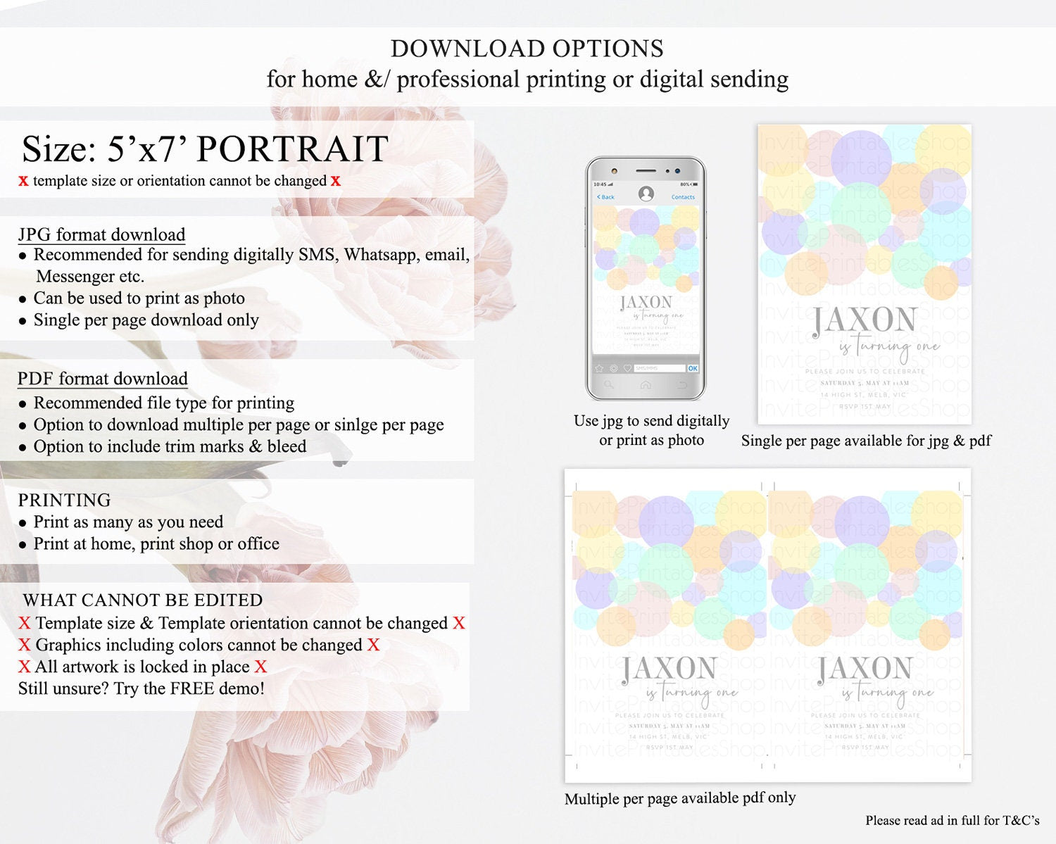 Copyright © 2023 by InvitePrintablesShop PTY LTD All rights reserved. This file or any portion thereof may not be reproduced or resold without the express written permission of the publisher (including edits to the design). Our files are provided as high-resolution PDFs – the end result is dependent upon the printer and paper used. If using a professional printing company, InvitePrintablesShop are not responsible for their specific printing requirements, paper or colour quality. Any changes required to the template are not included with your purchase – the files come as described in the listing only and cannot be changed.