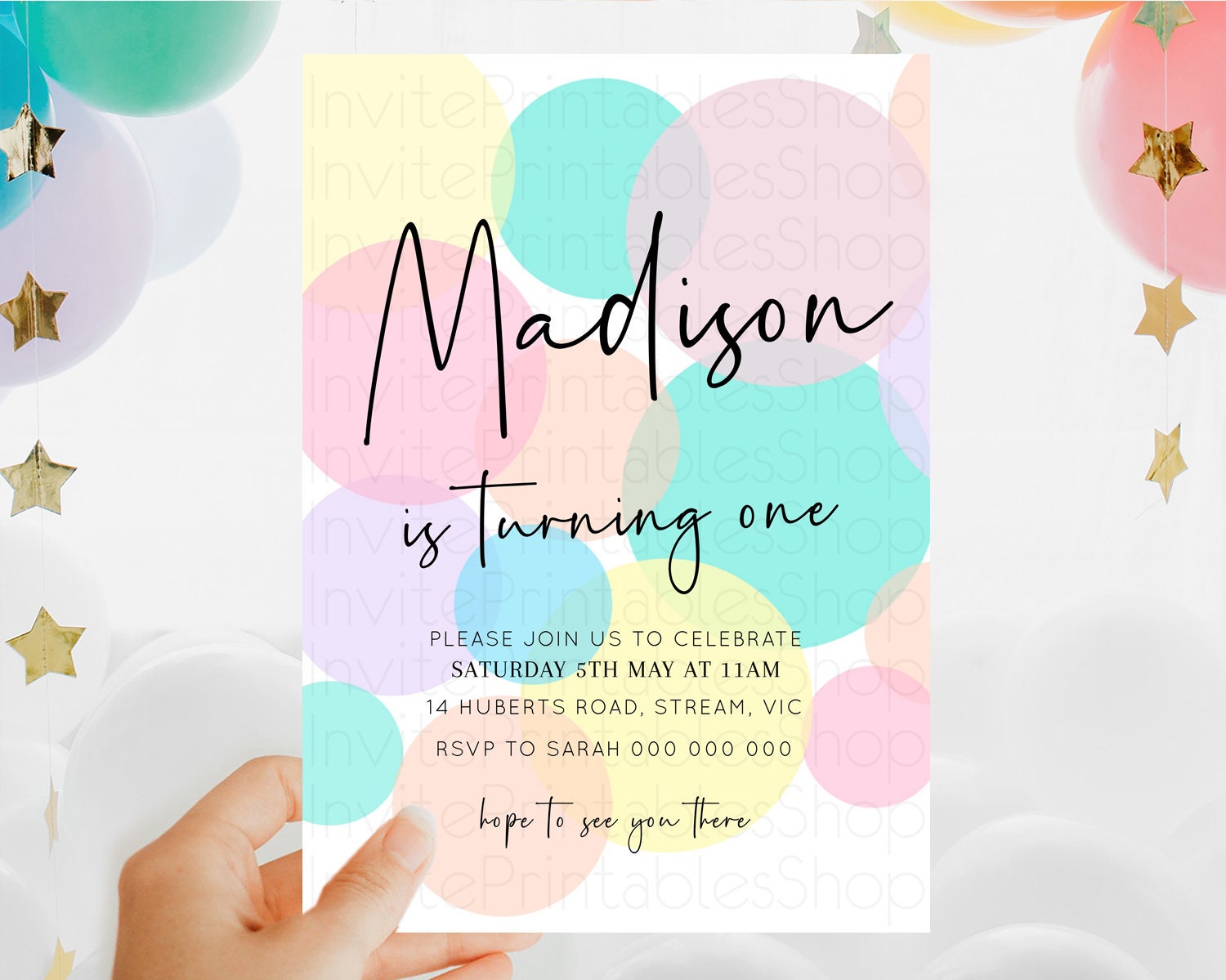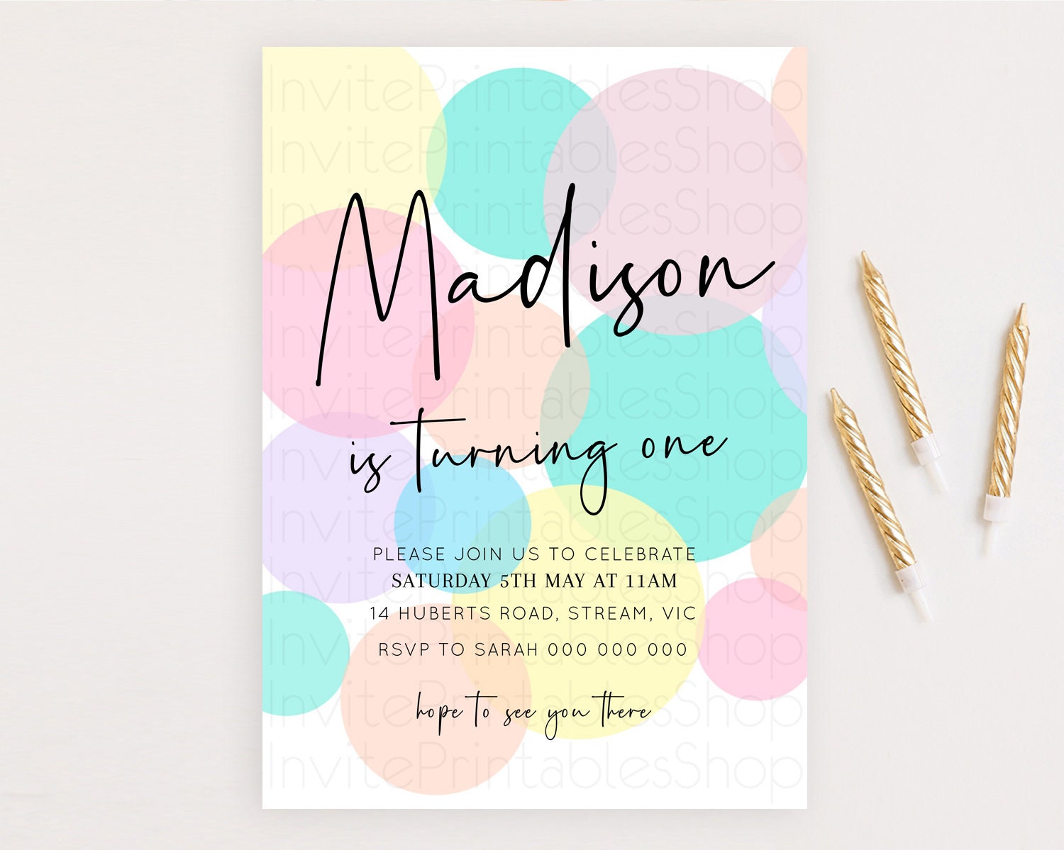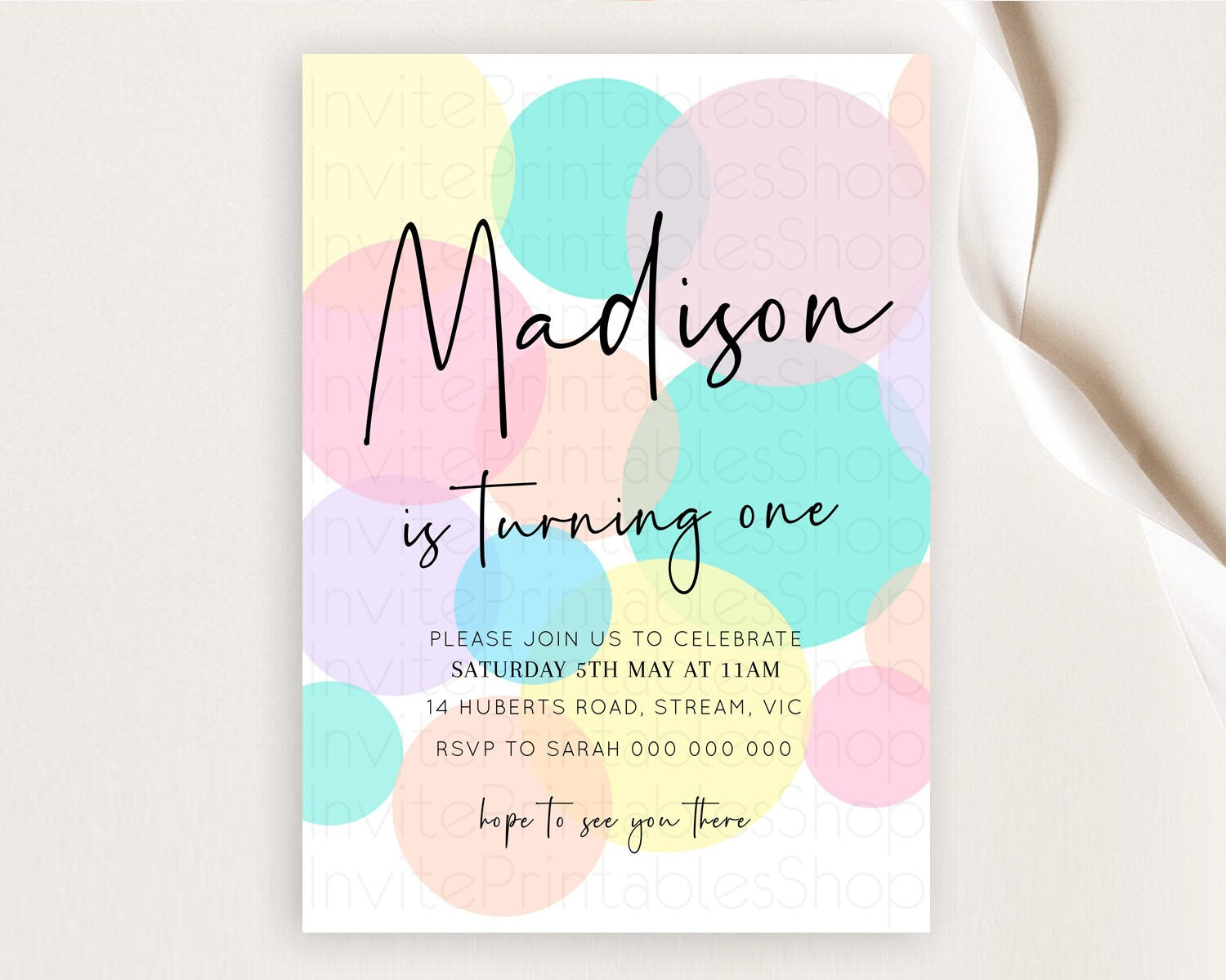 Pastel Birthday Invitation Pastel Confetti Birthday Invitation Bubbles Invitation Colorful Rainbow Confetti 2nd 1st First Birthday D10223