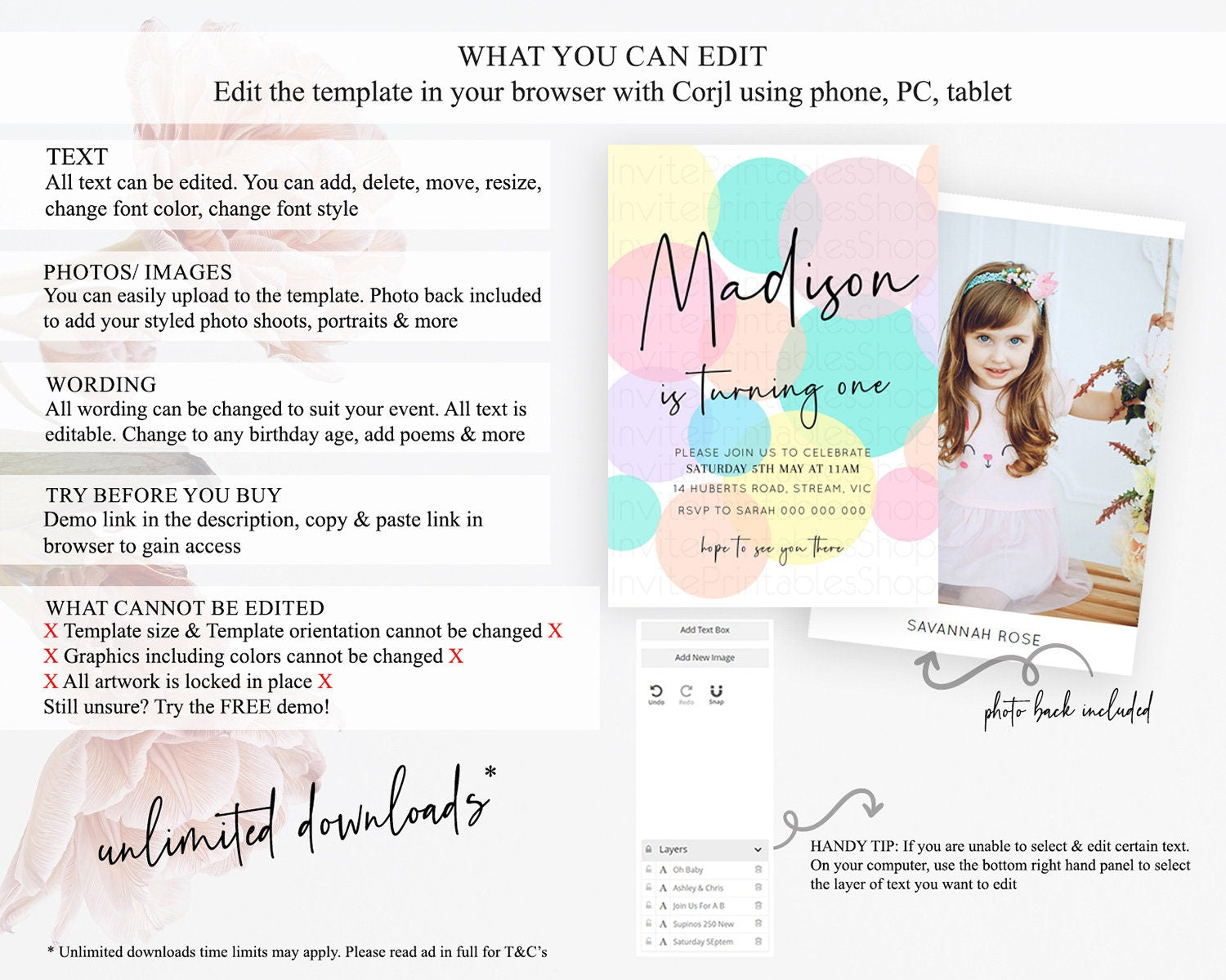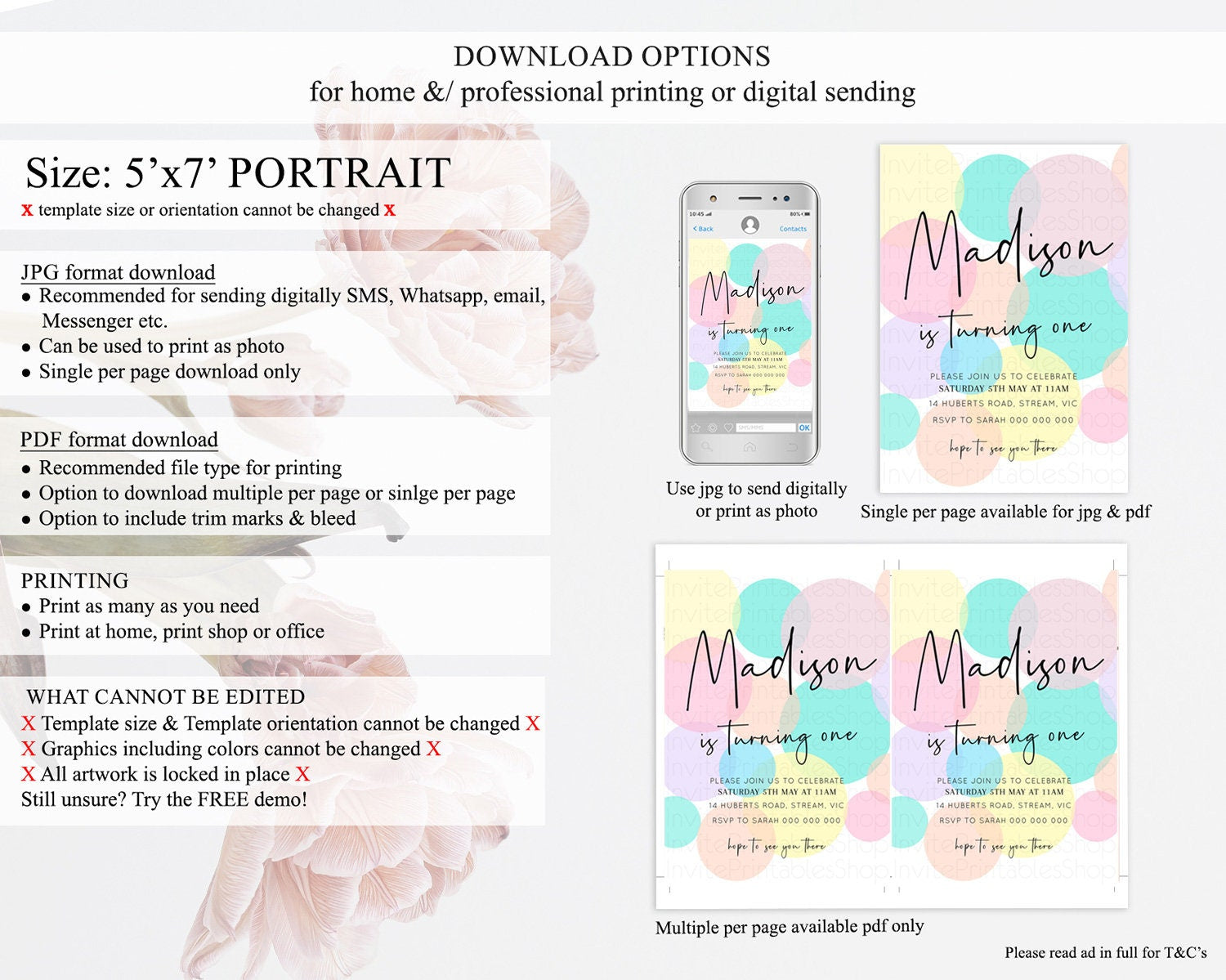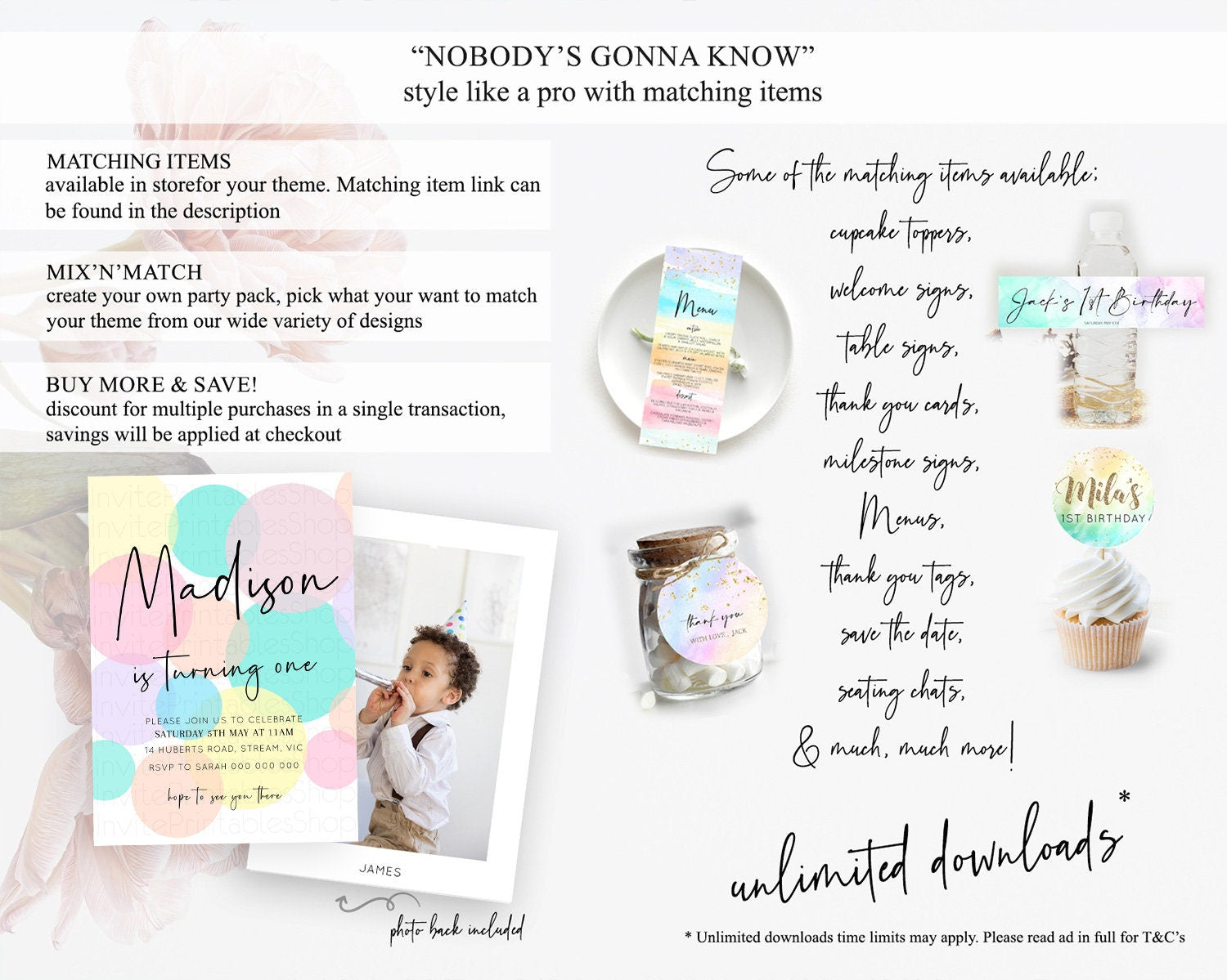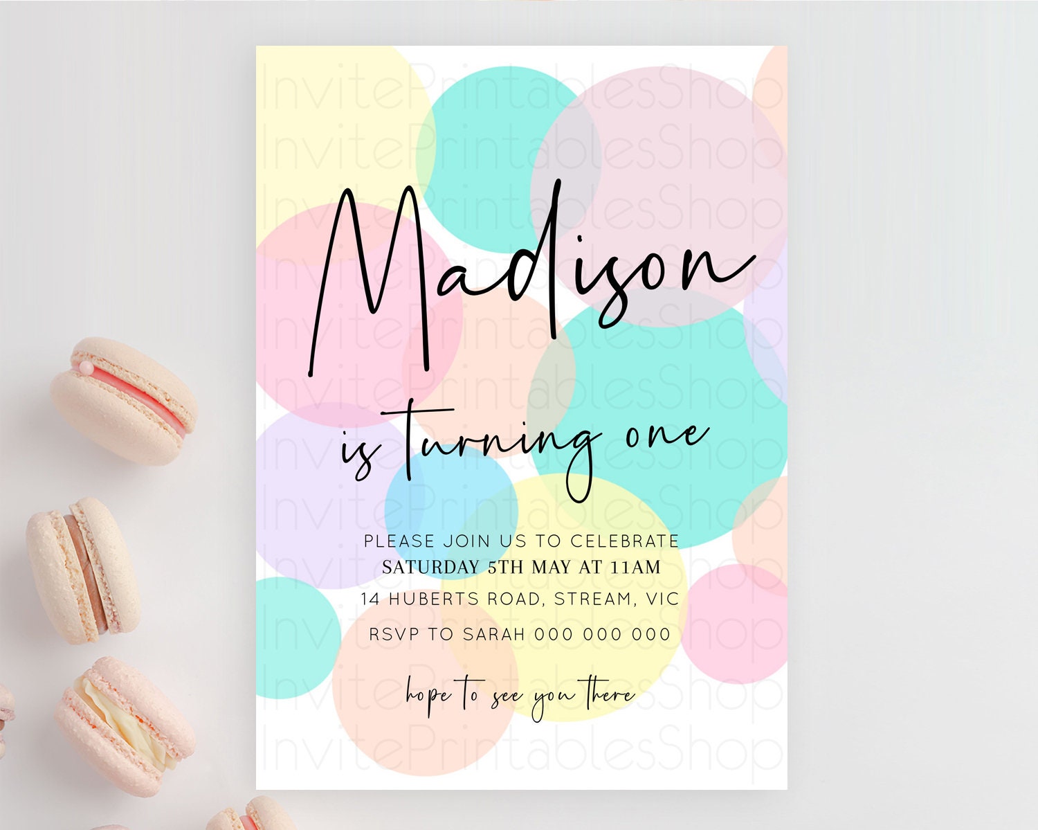 Pastel Birthday Invitation Pastel Confetti Birthday Invitation Bubbles Invitation Colorful Rainbow Confetti 2nd 1st First Birthday D10223