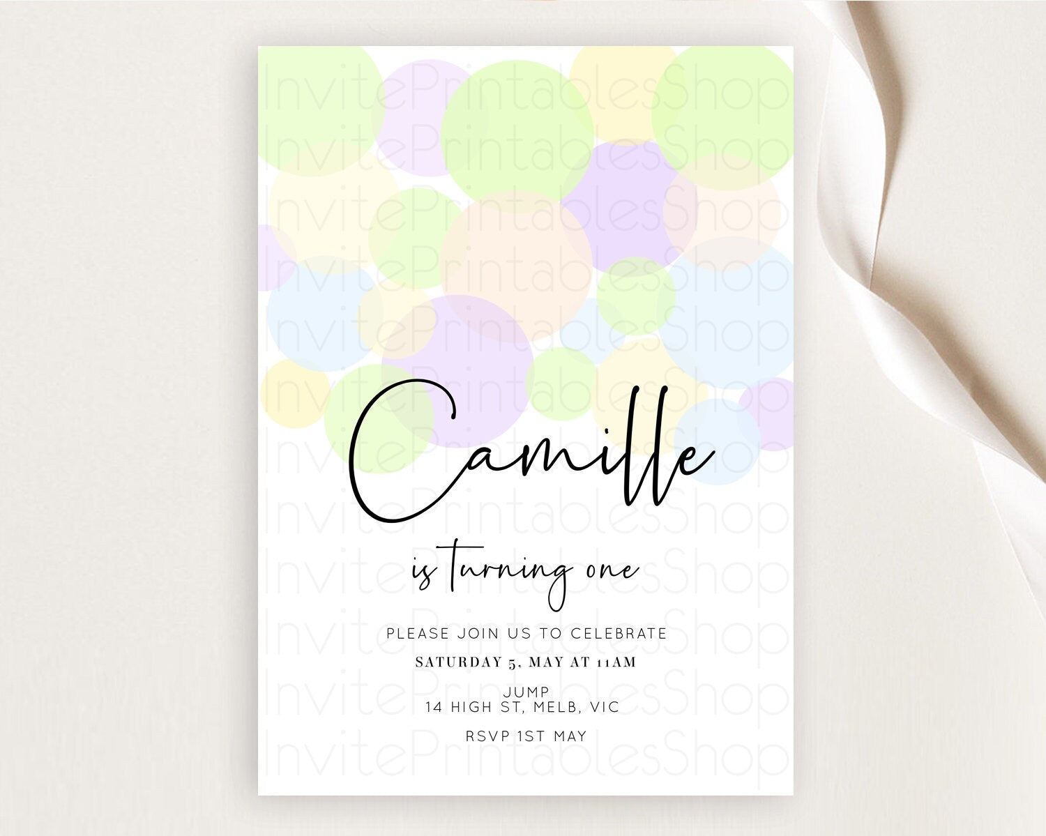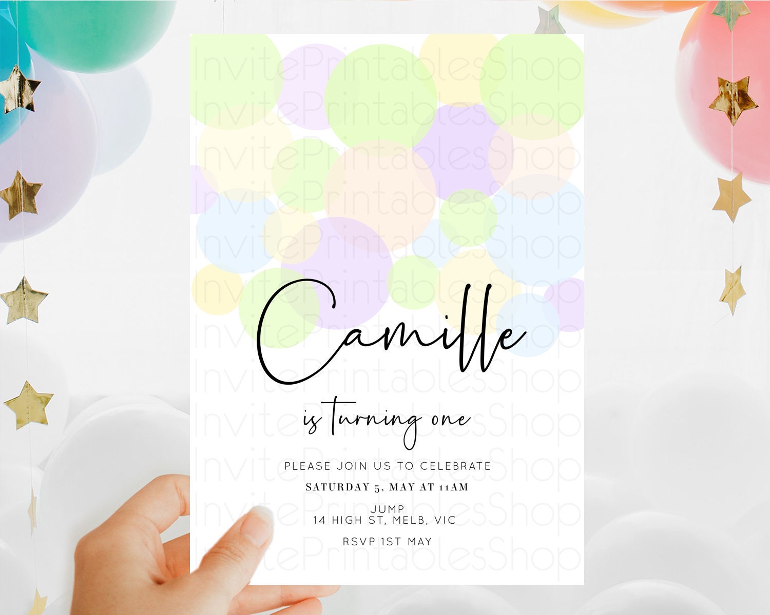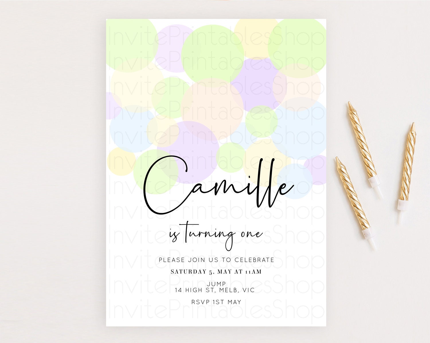 Pastel Birthday Invitation Pastel Confetti Birthday Invitation Bubbles Invitation Colorful Rainbow Confetti 2nd 1st First Birthday D10228