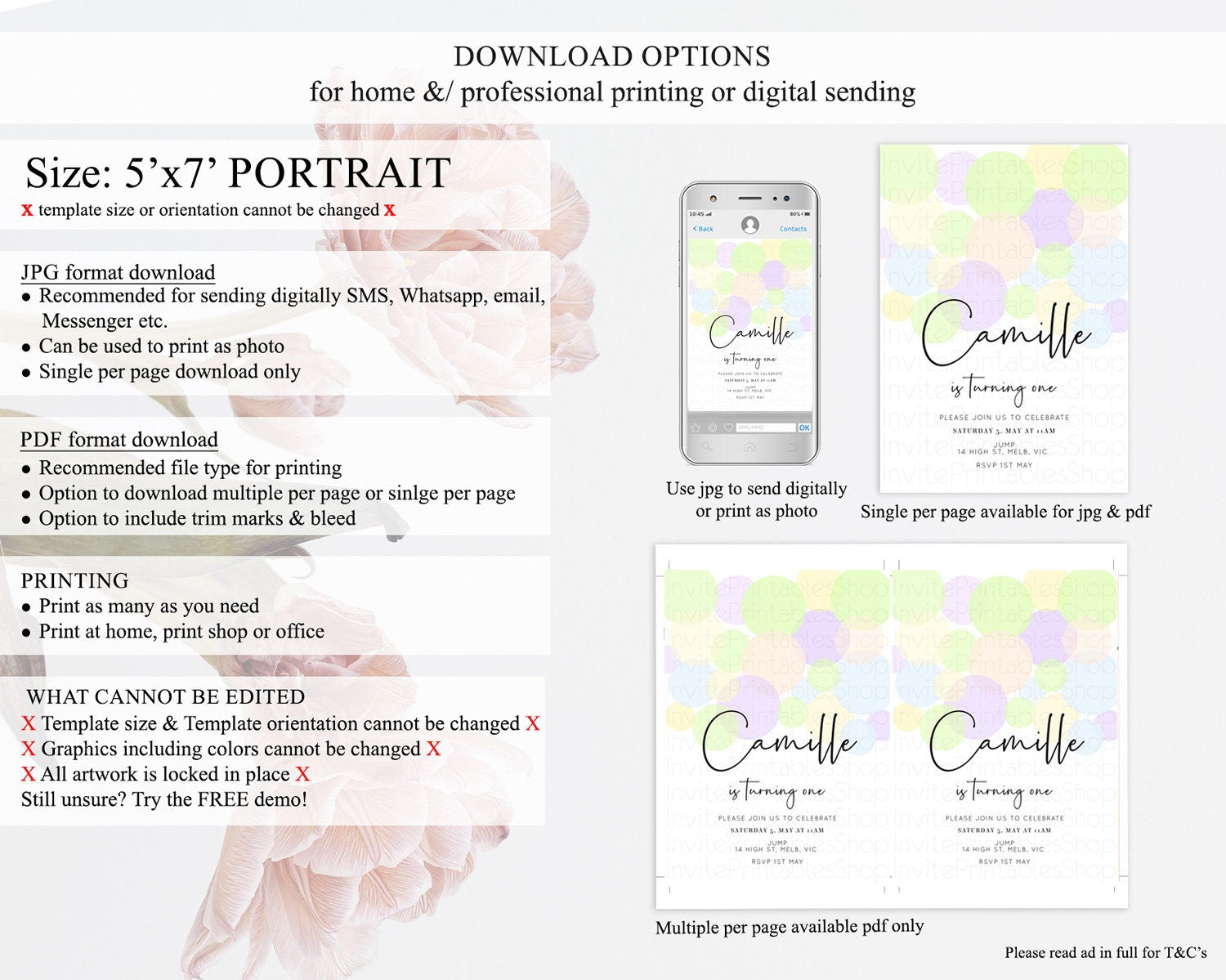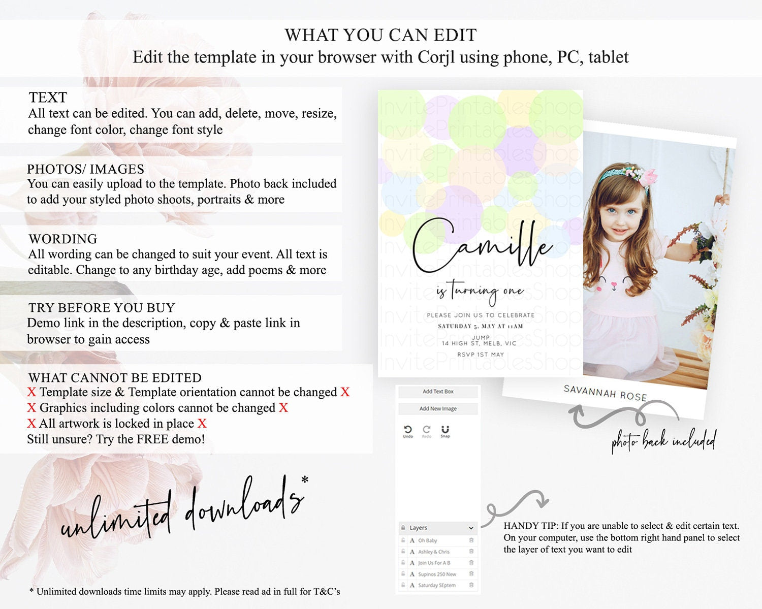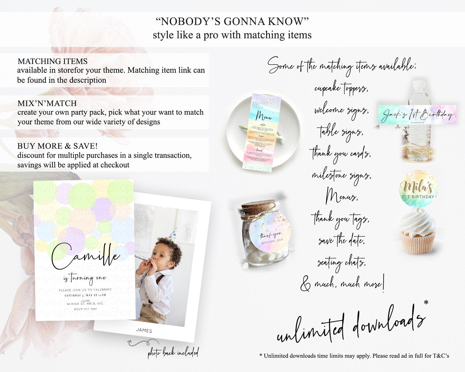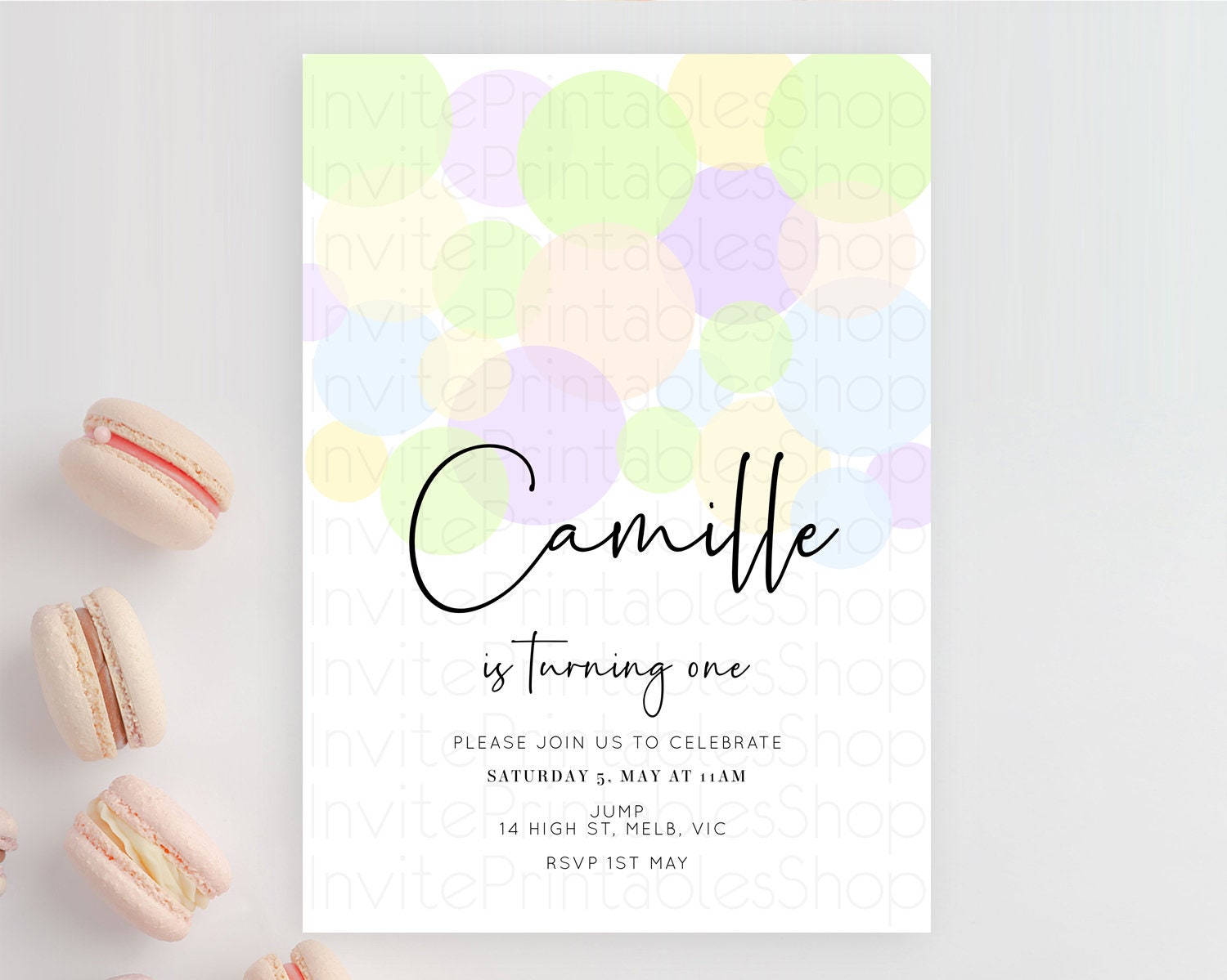 Pastel Birthday Invitation Pastel Confetti Birthday Invitation Bubbles Invitation Colorful Rainbow Confetti 2nd 1st First Birthday D10228