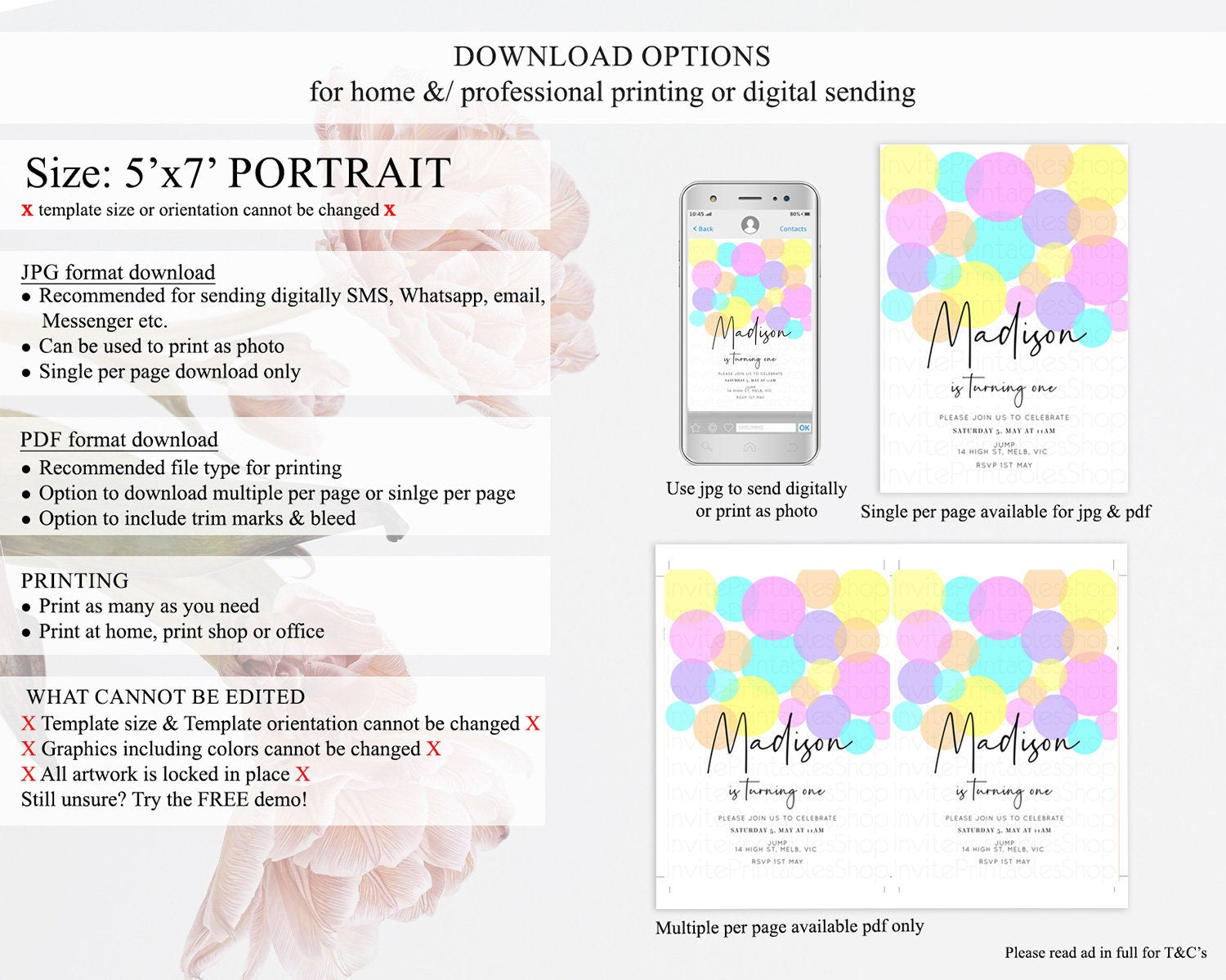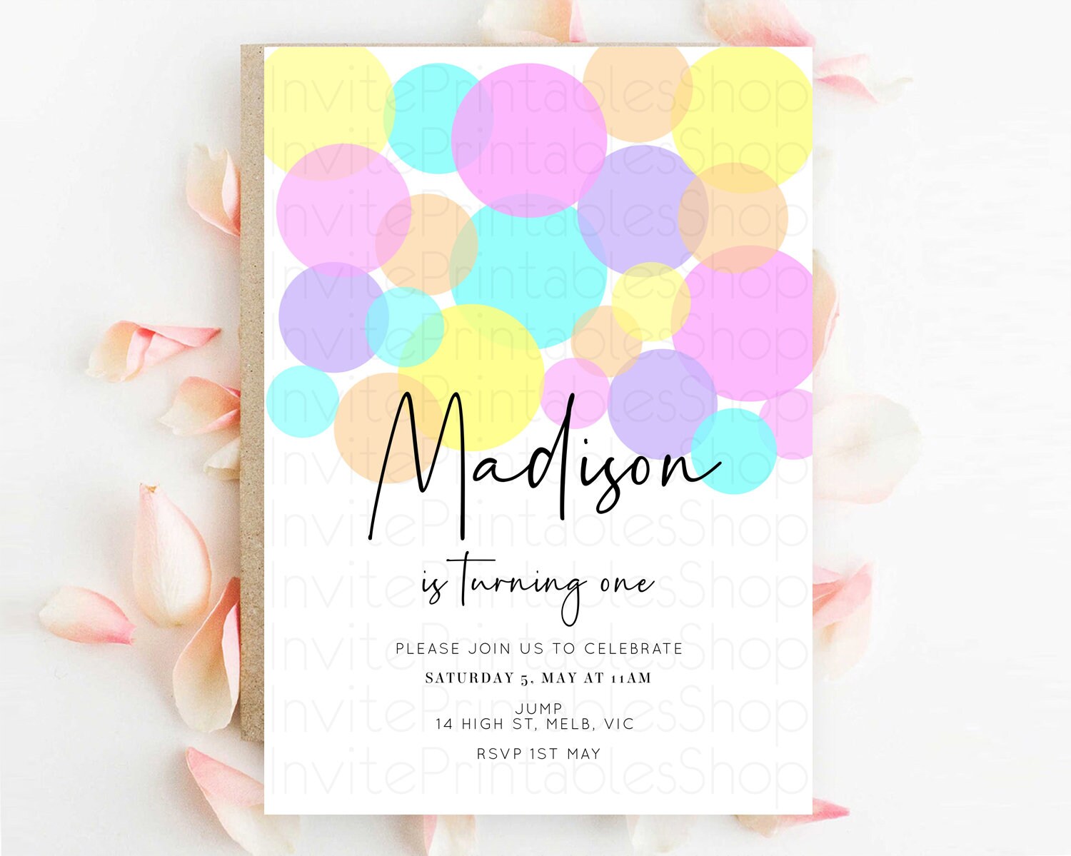 Pastel Birthday Invitation Pastel Confetti Birthday Invitation Bubbles Invitation Colorful Rainbow Confetti 2nd 1st First Birthday D10406