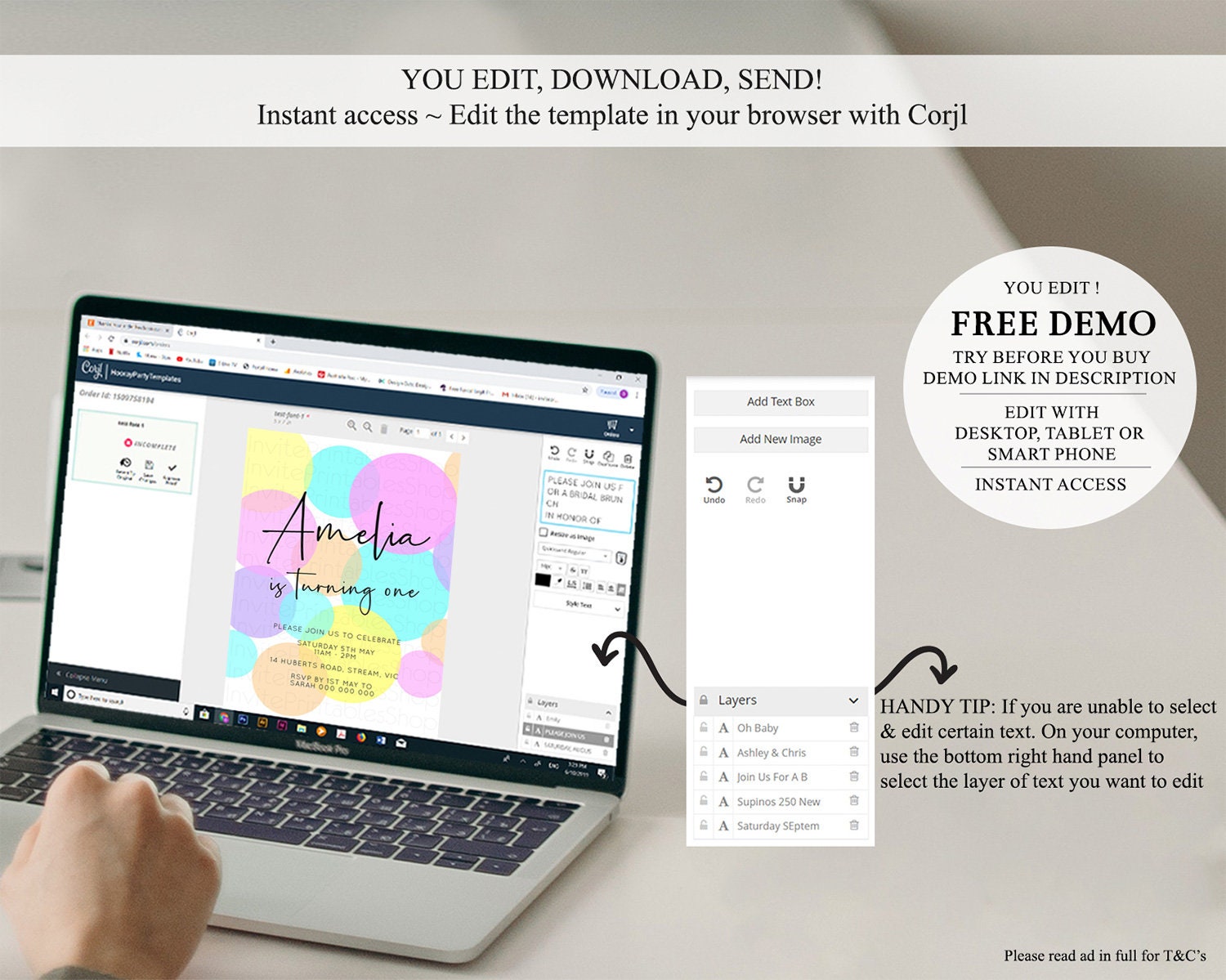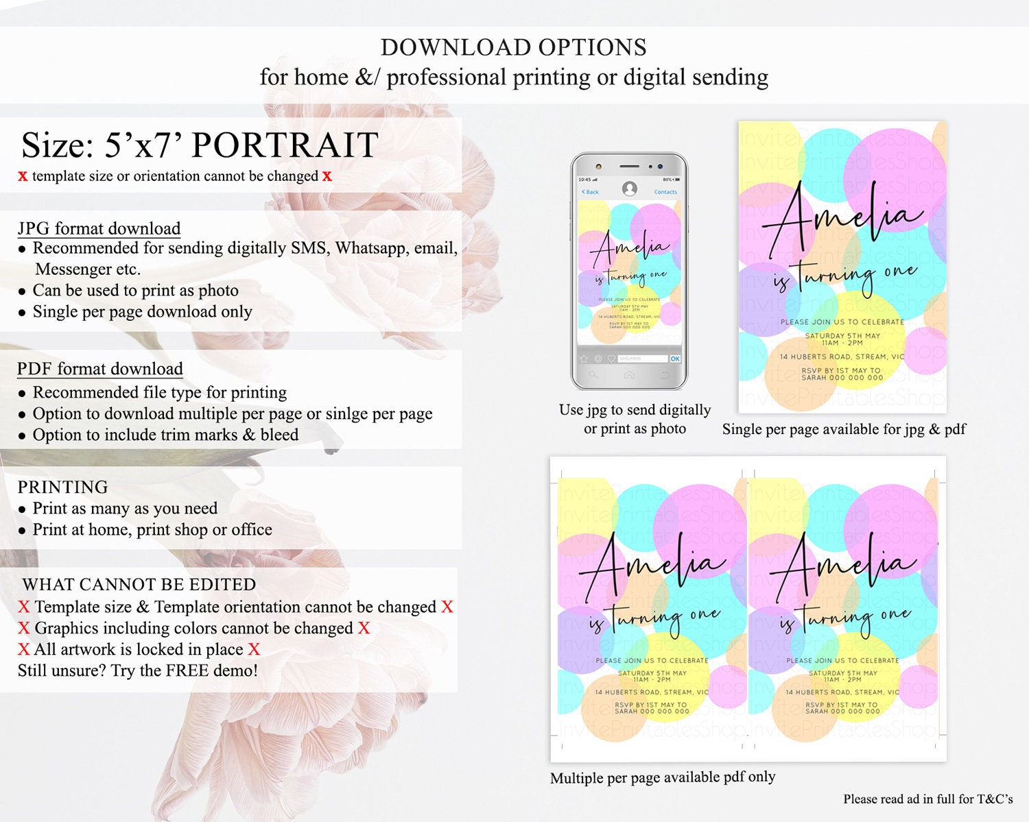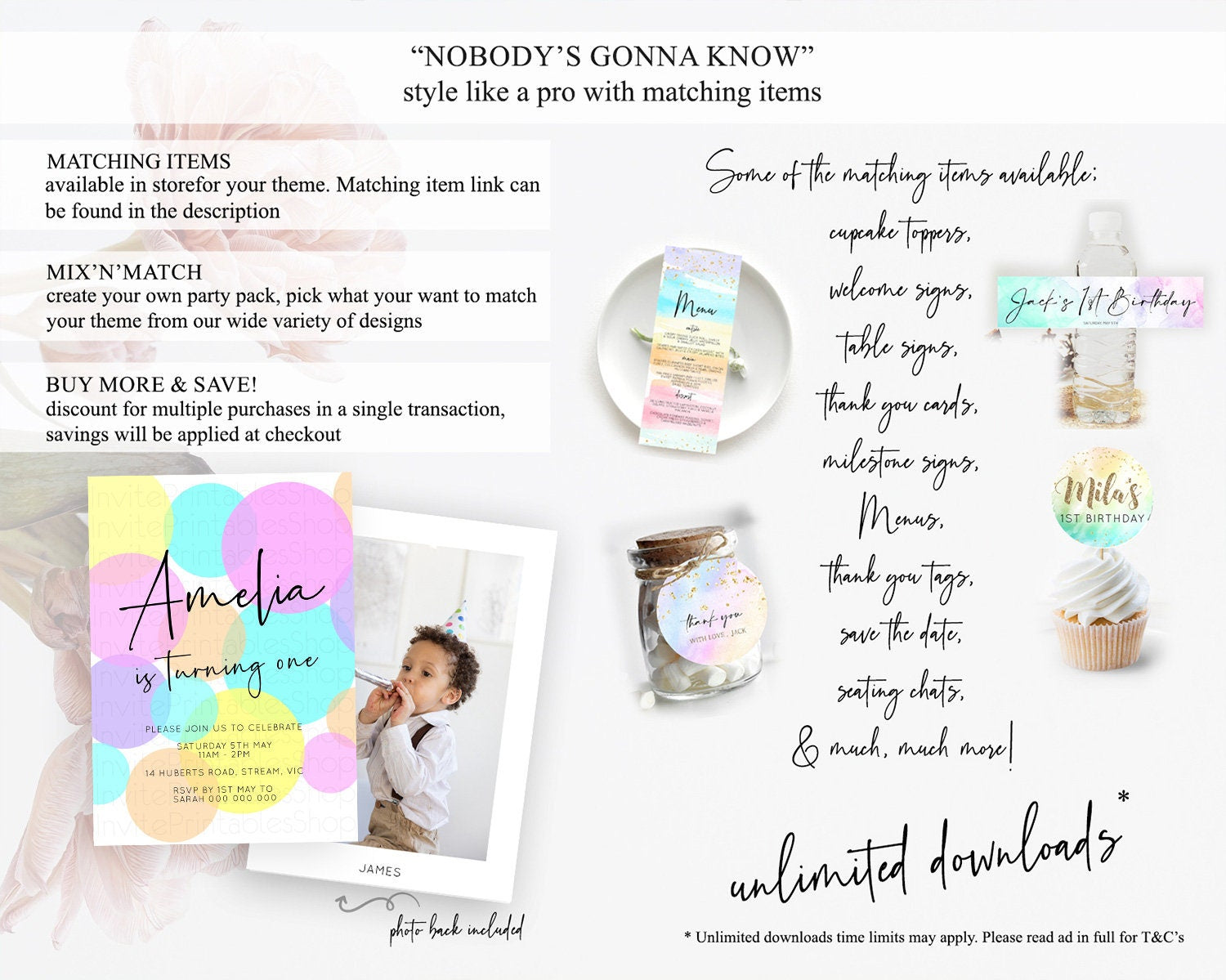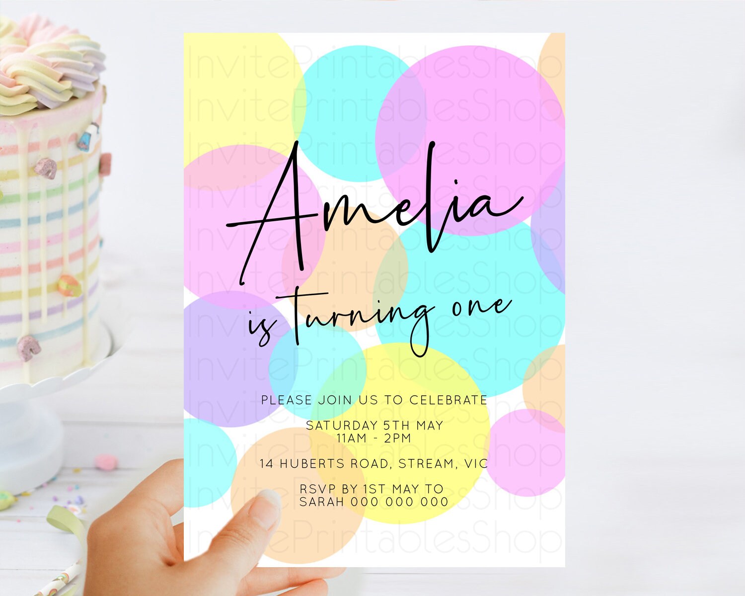 Pastel Birthday Invitation Pastel Confetti Birthday Invitation Bubbles Invitation Colorful Rainbow Confetti 2nd 1st First Birthday D10406
