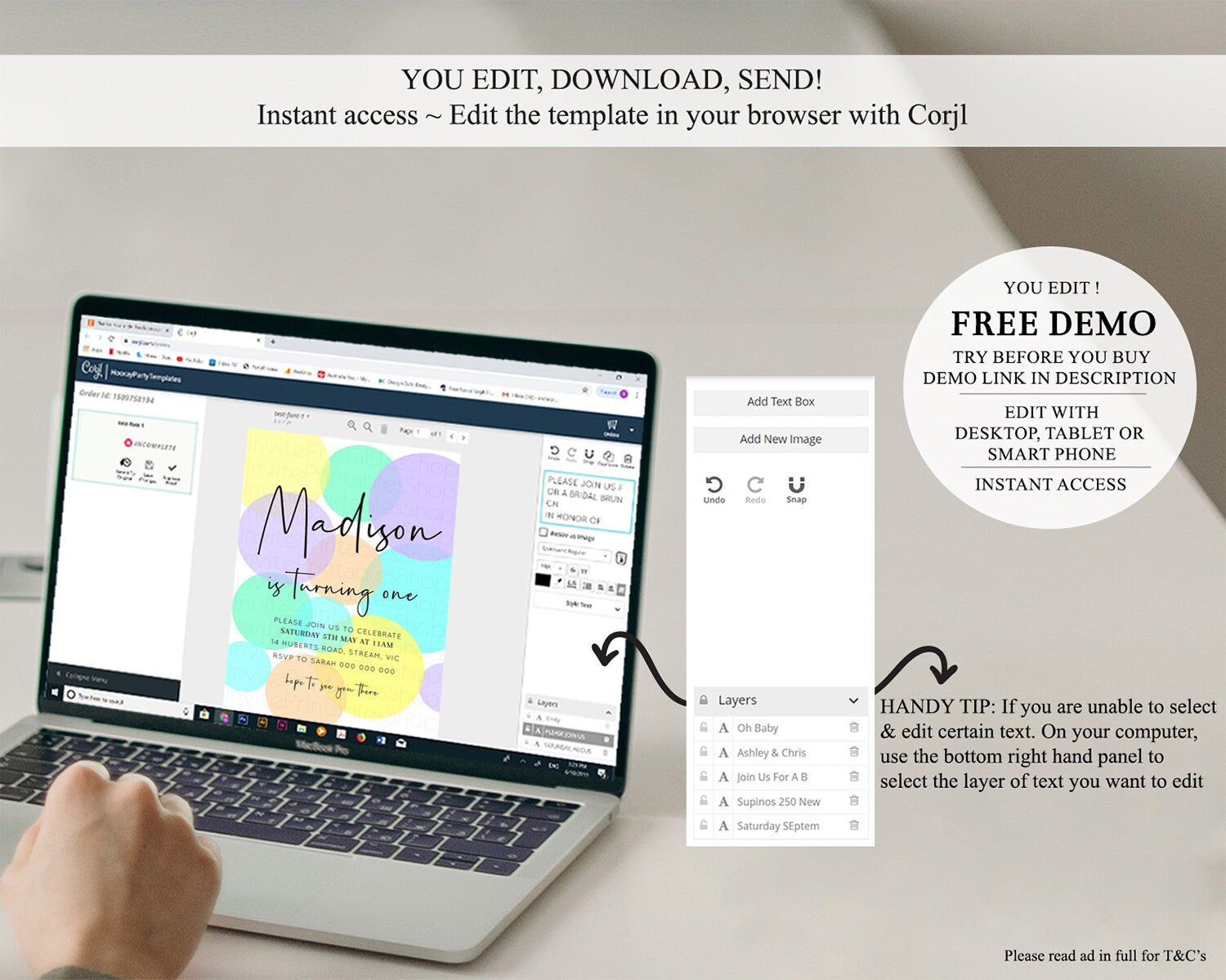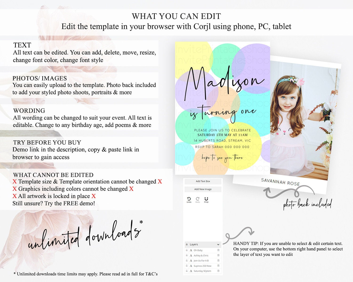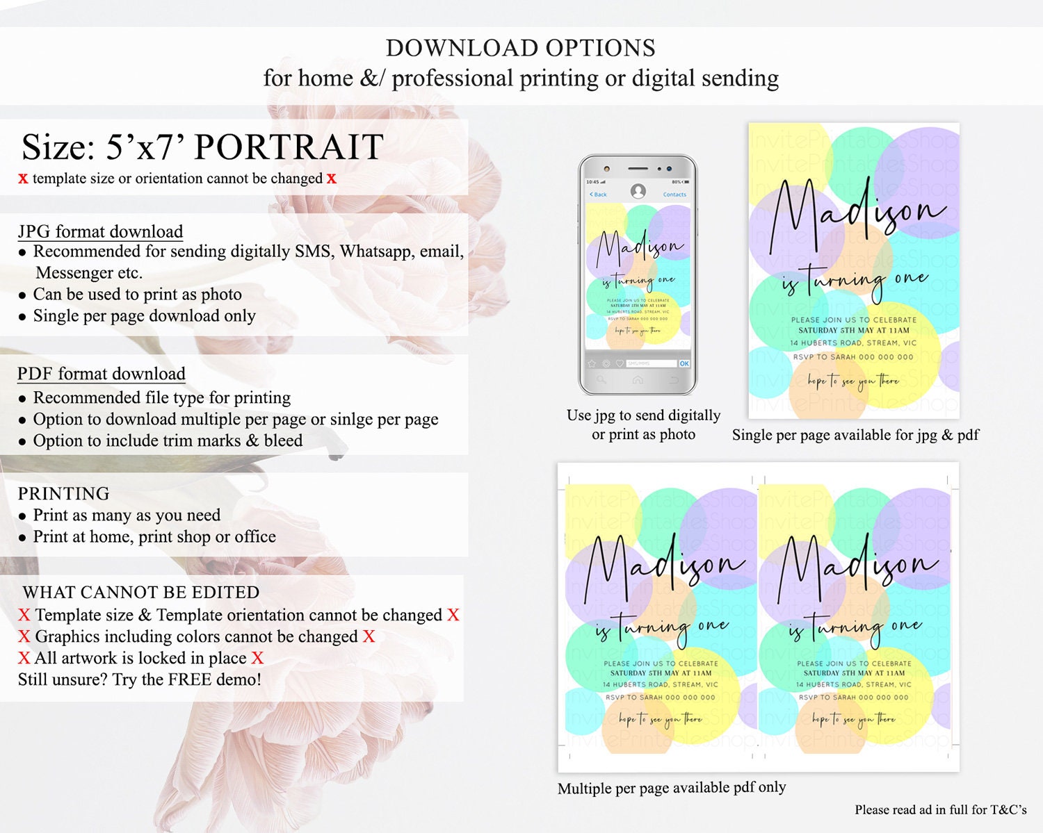 Pastel Birthday Invitation Pastel Confetti Birthday Invitation Bubbles Invitation Colorful Rainbow Confetti 2nd 1st First Birthday D10412