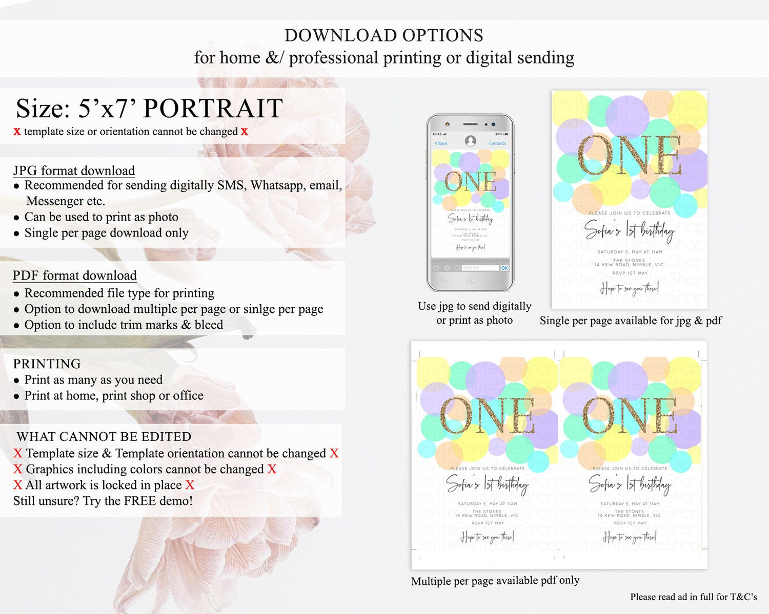Pastel Birthday Invitation Pastel Confetti Birthday Invitation Bubbles Invitation Colorful Rainbow Confetti 2nd 1st First Birthday D10415