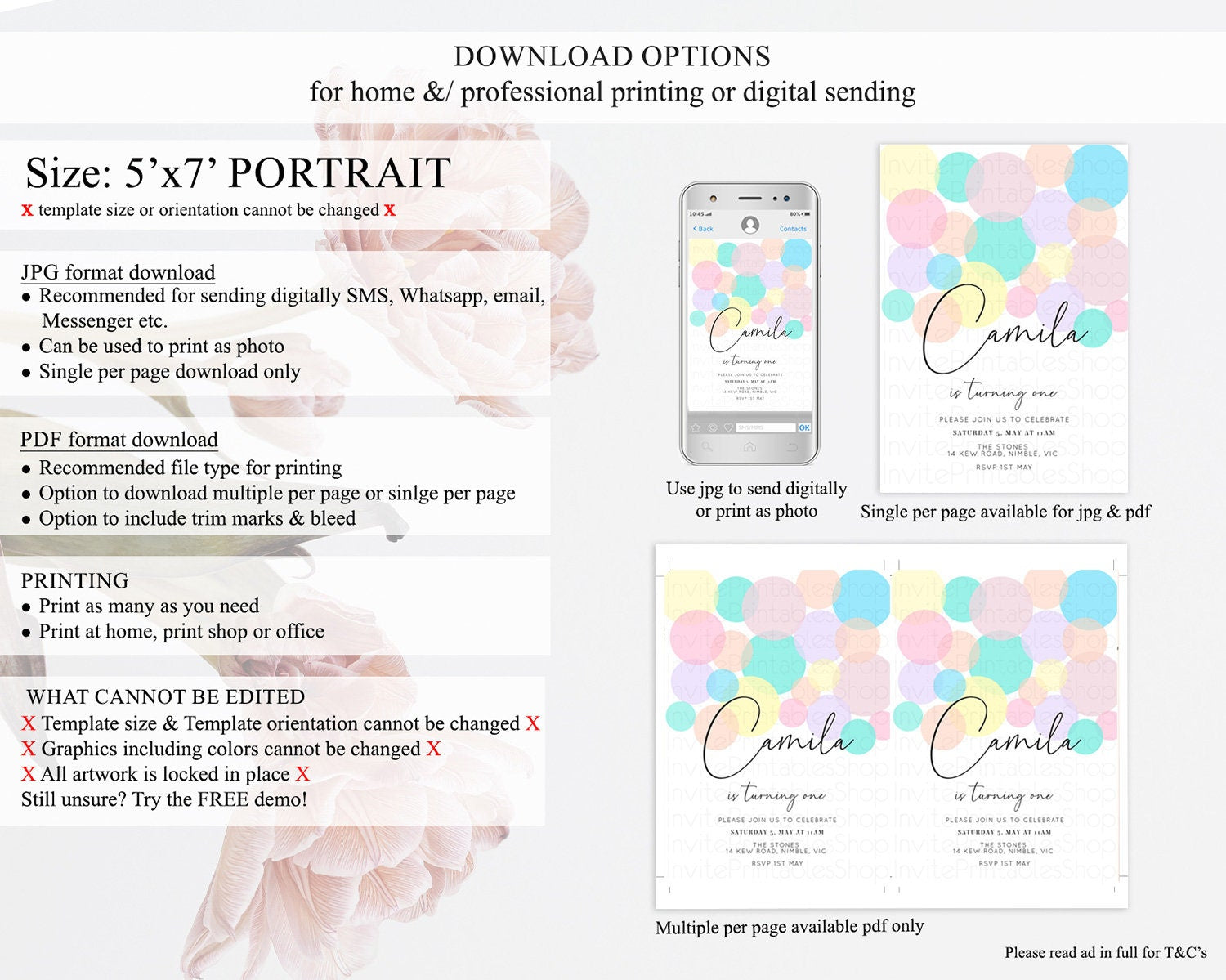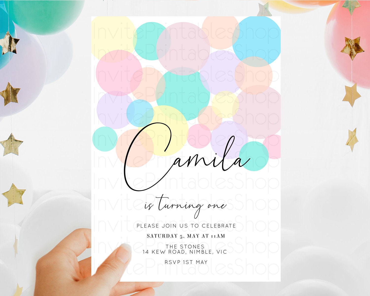 Pastel Birthday Invitation Pastel Confetti Birthday Invitation Bubbles Invitation Colorful Rainbow Confetti 2nd 1st First Birthday D10784