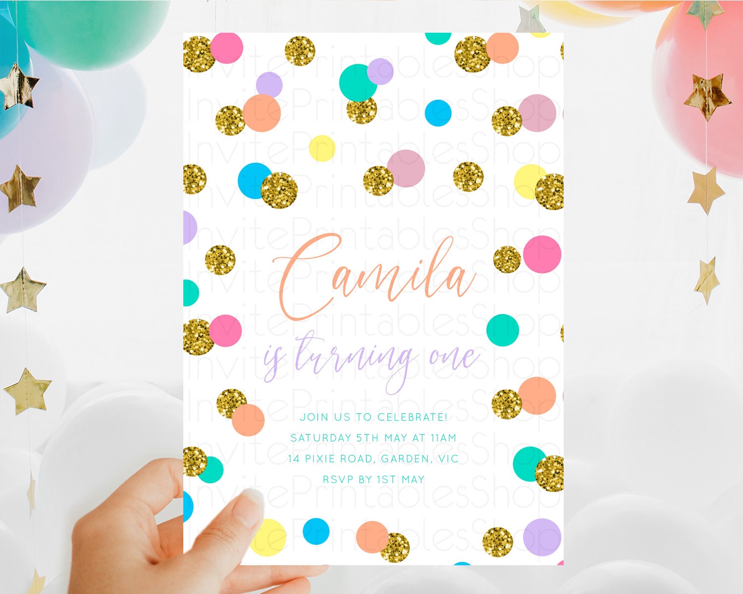 Pastel Birthday Invitation Pastel Confetti Birthday Invitation Bubbles Invitation Colorful Rainbow Confetti 2nd 1st First Birthday D10862
