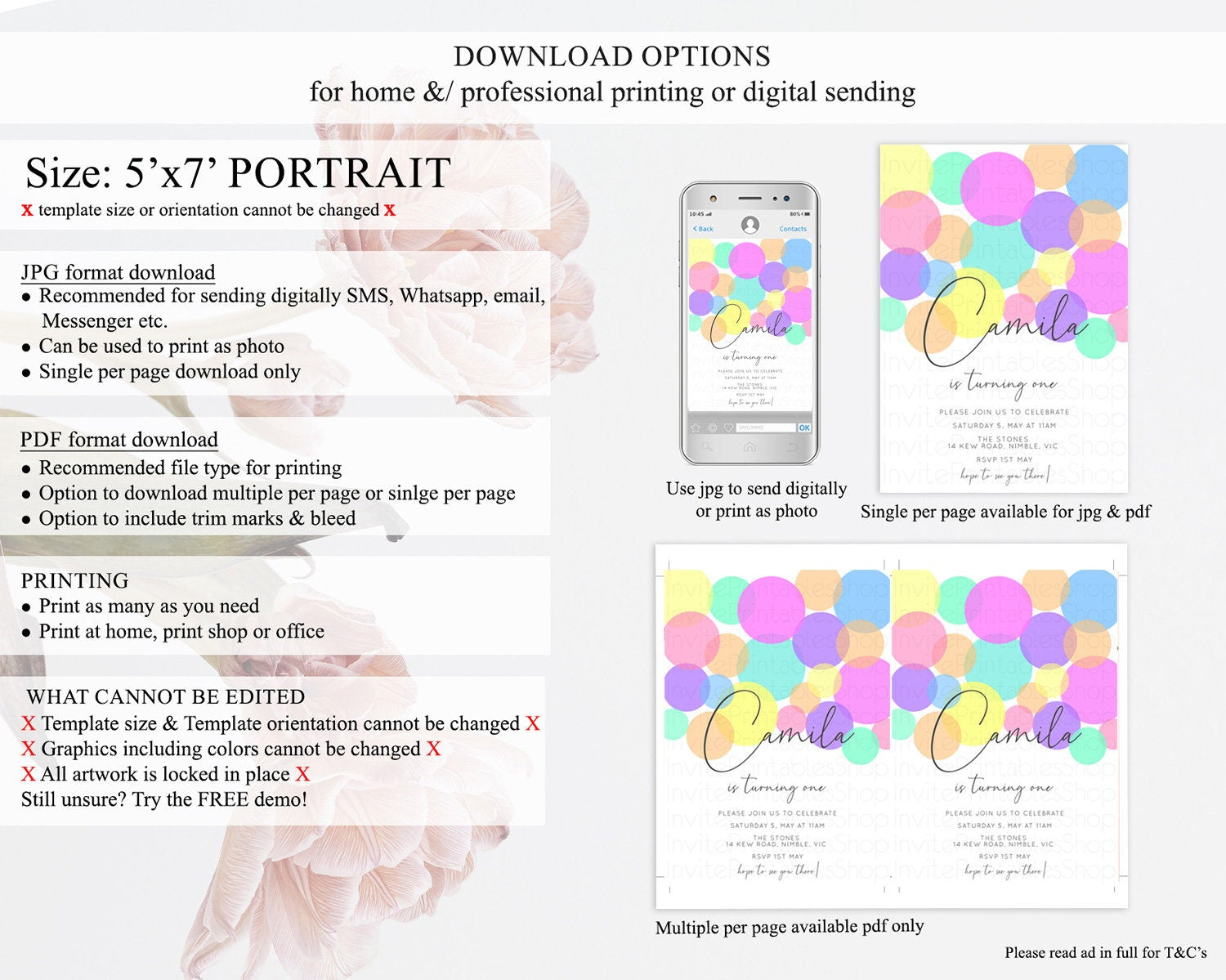 Pastel Birthday Invitation Pastel Confetti Birthday Invitation Bubbles Invitation Colorful Rainbow Confetti 2nd 1st First Birthday D10888