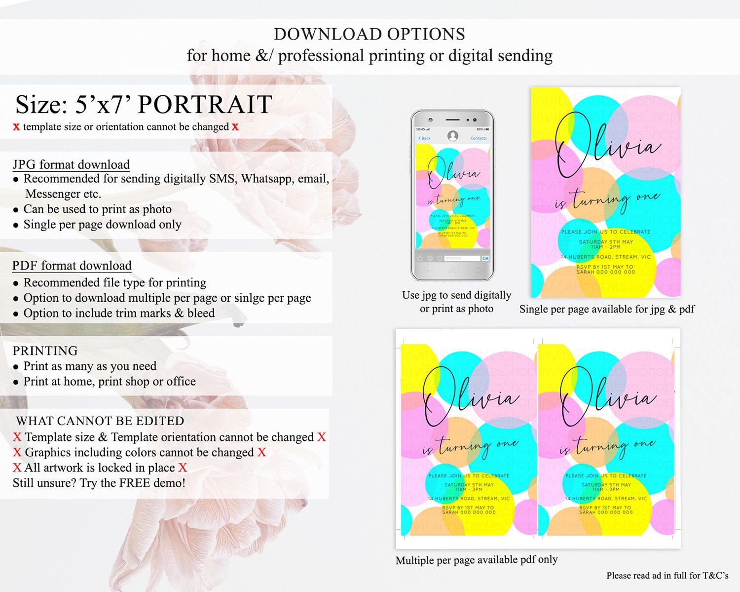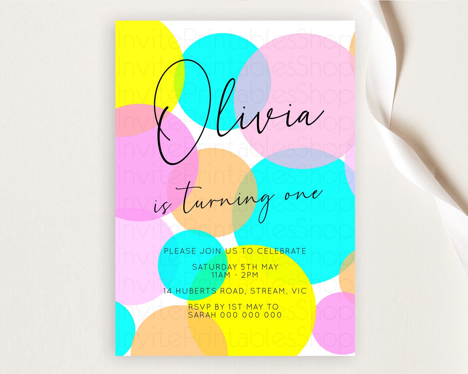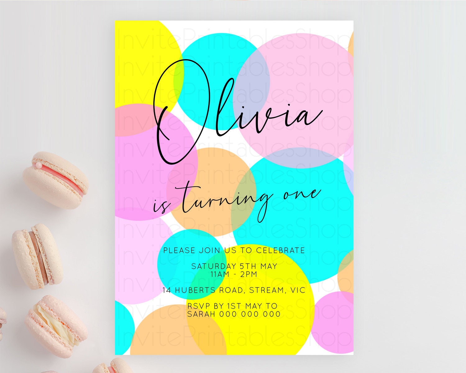 Pastel Birthday Invitation Pastel Confetti Birthday Invitation Bubbles Invitation Colorful Rainbow Confetti 2nd 1st First Birthday D10896
