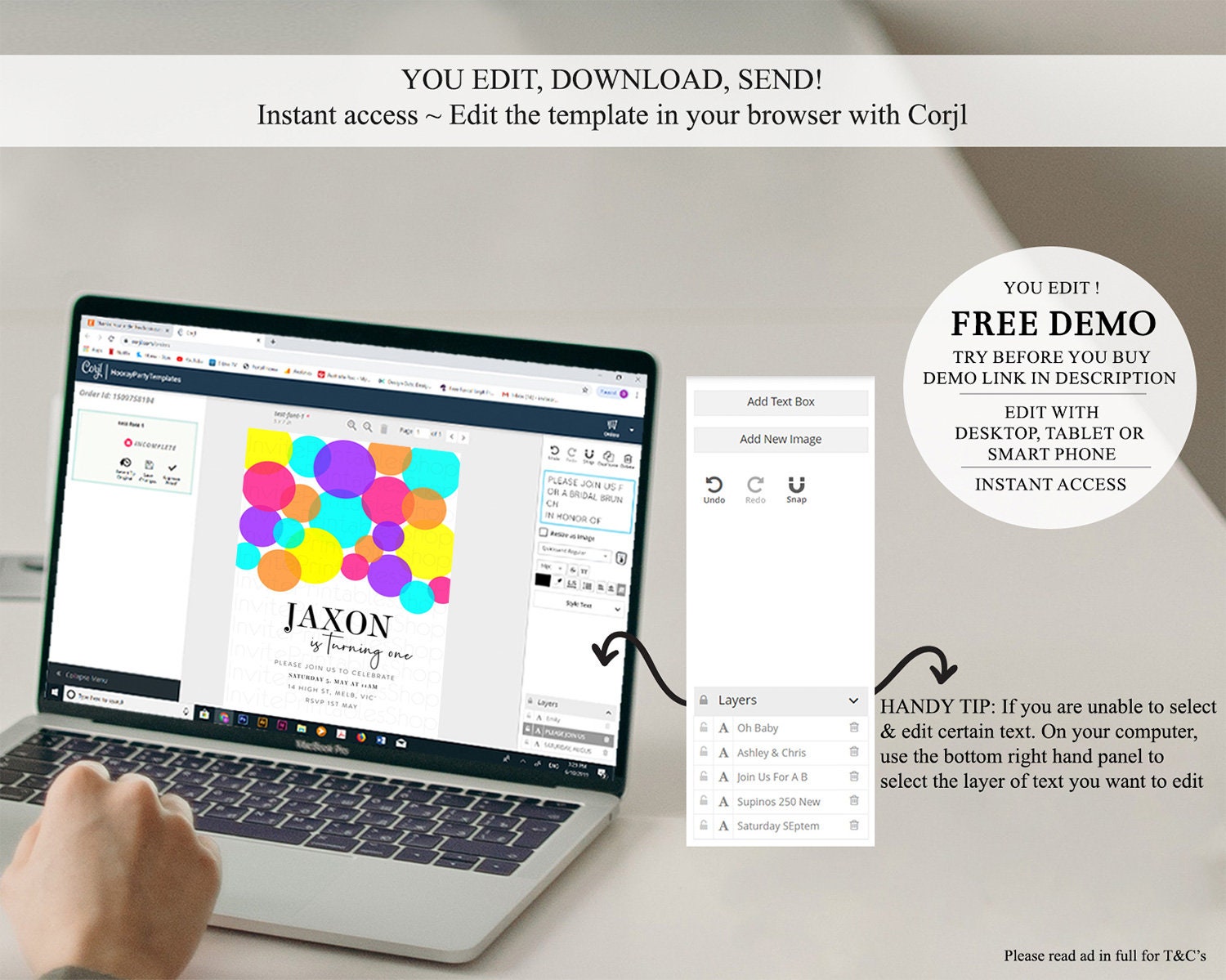 • After purchase, Corjl emails your editing link. Allow up to 15 minutes for delivery.