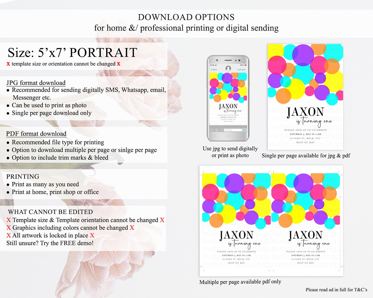 Pastel Birthday Invitation Pastel Confetti Birthday Invitation Bubbles Invitation Colorful Rainbow Confetti 2nd 1st First Birthday D11022