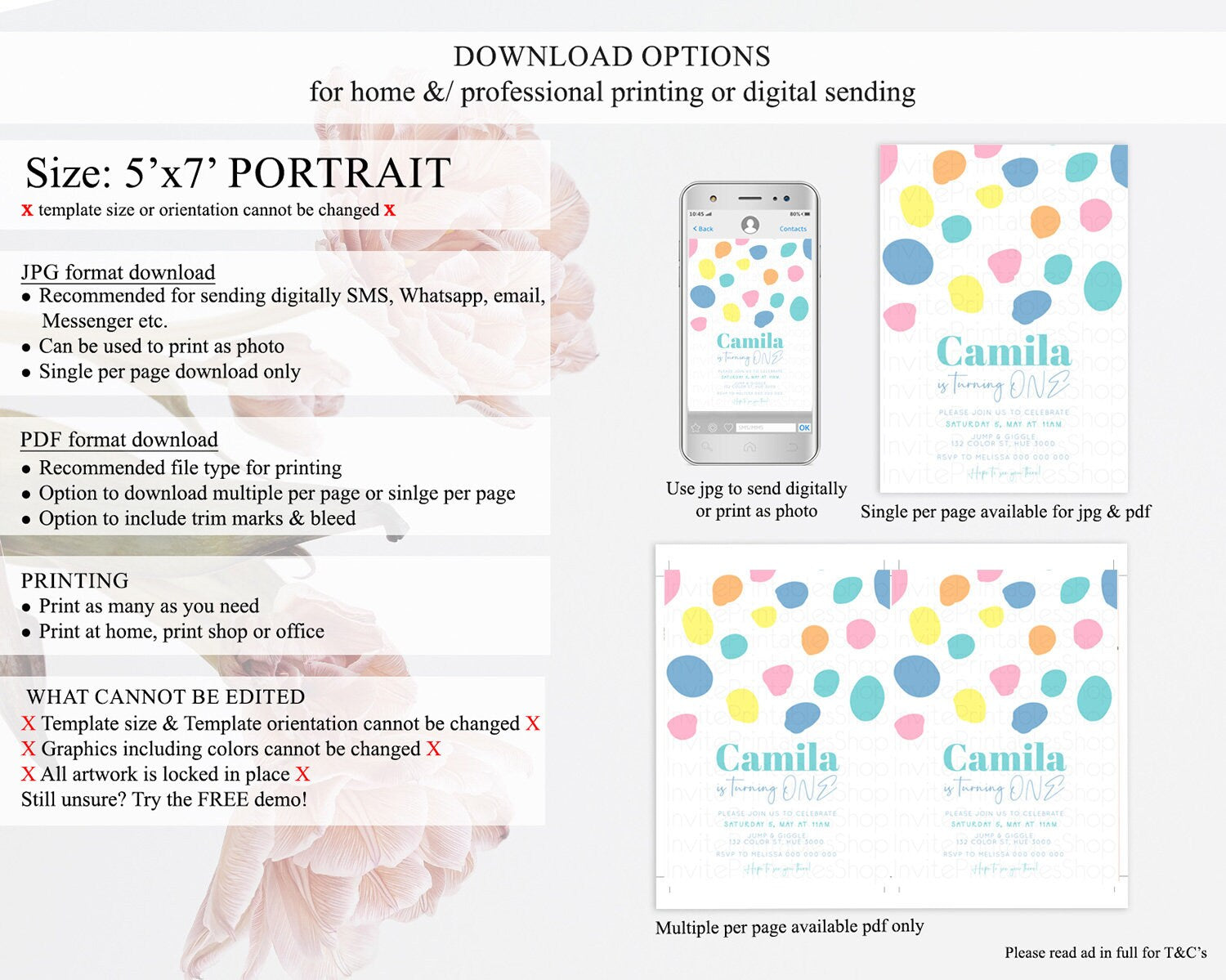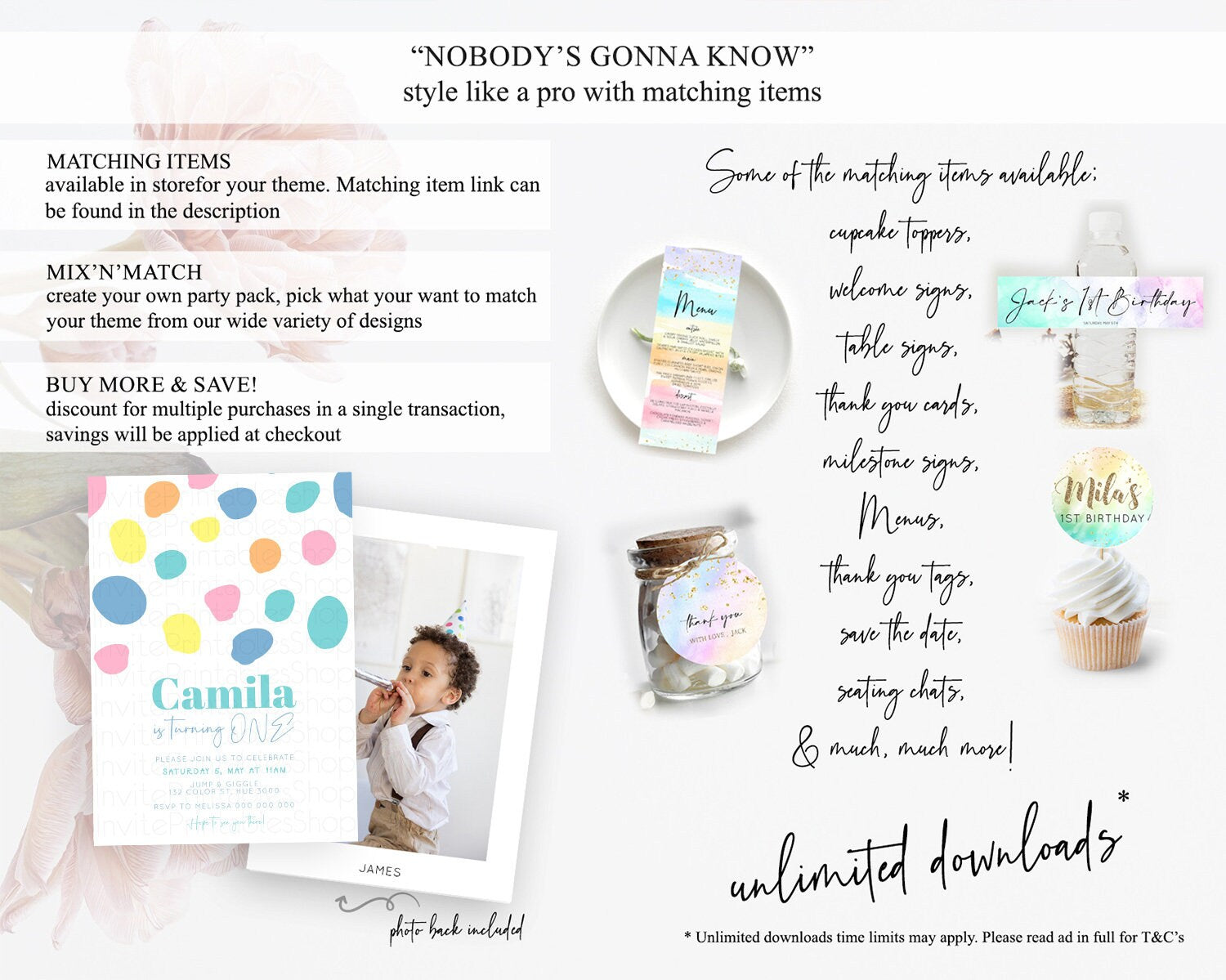 Pastel Birthday Invitation Pastel Confetti Birthday Invitation Bubbles Invitation Colorful Rainbow Confetti 2nd 1st First Birthday D11046