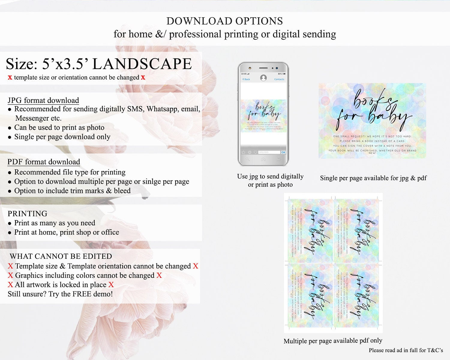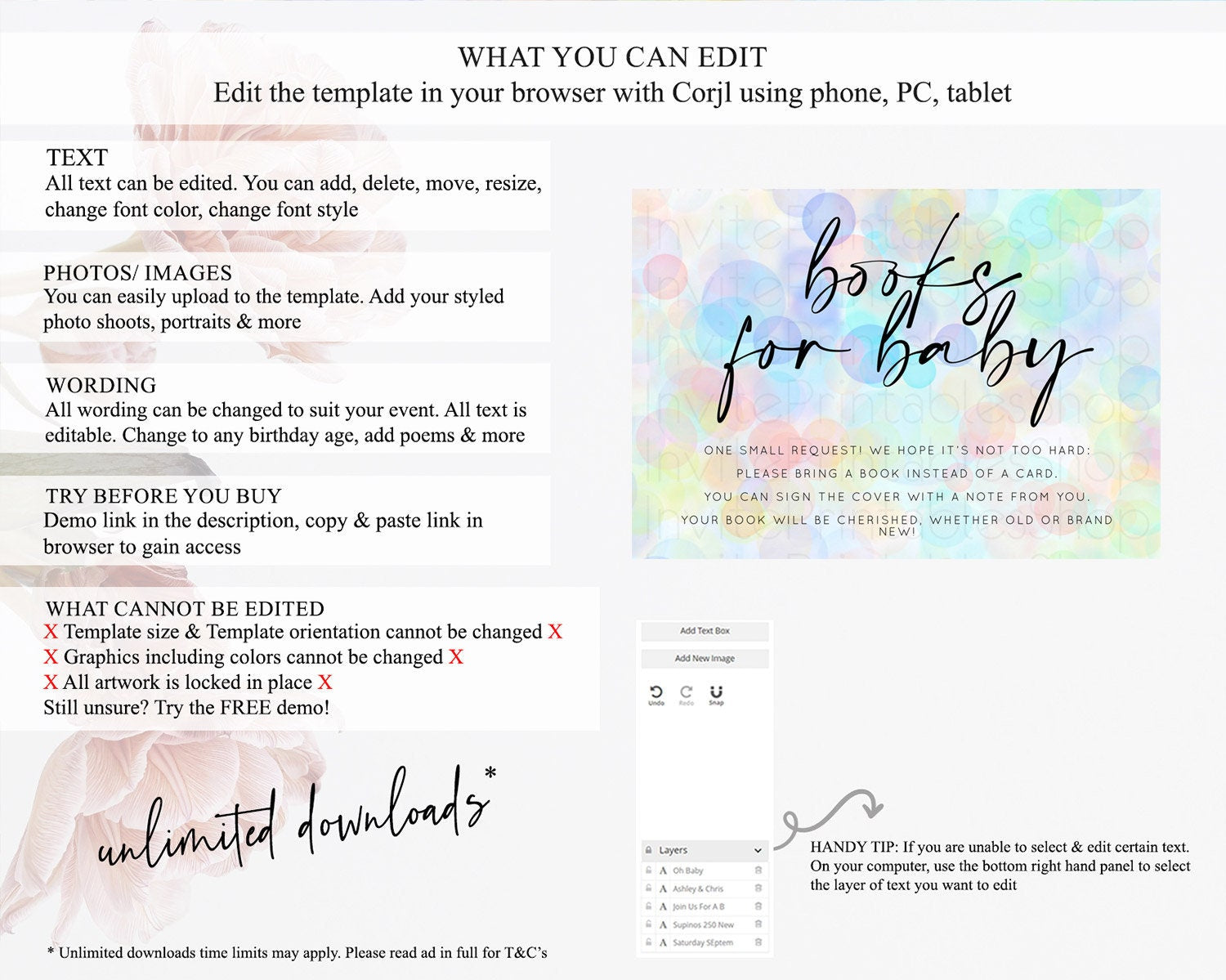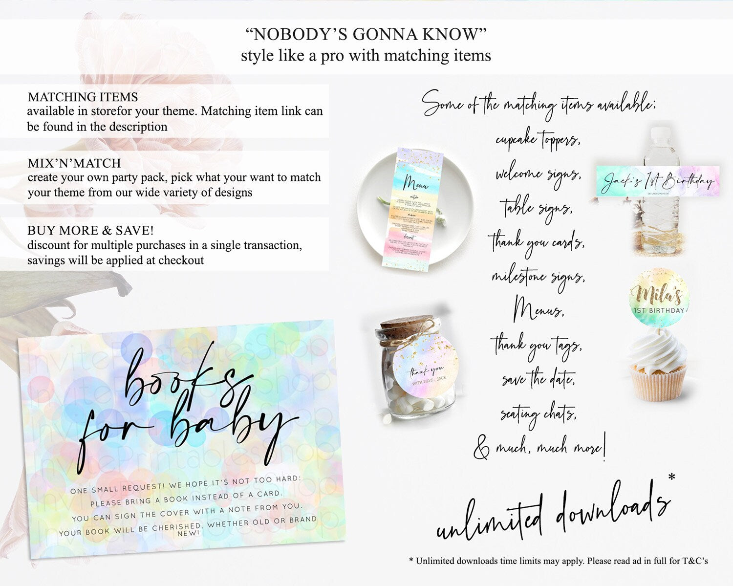 Pastel Books For Baby Card Bubble Bath Baby Shower Books Insert Rainbow Book Card Pastel Bubbles Colorful Confetti Book Poem Request D10446