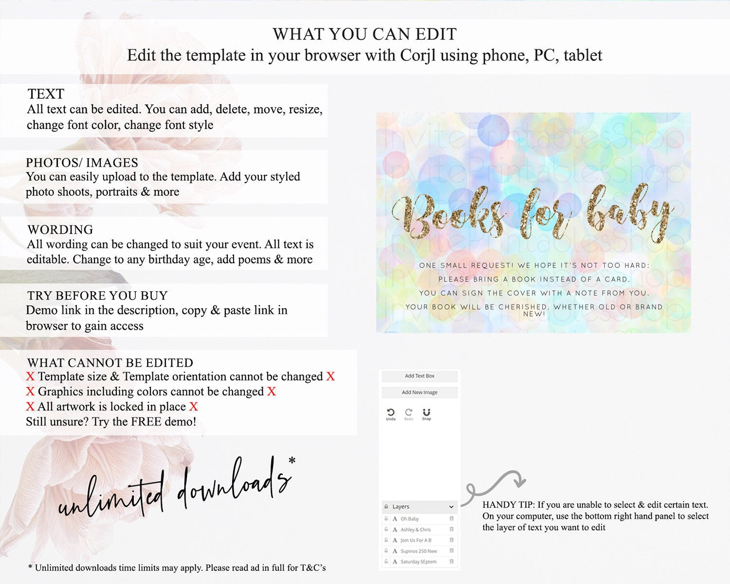 Pastel Books For Baby Card Bubble Bath Baby Shower Books Insert Rainbow Book Card Pastel Bubbles Colorful Confetti Book Poem Request D10447