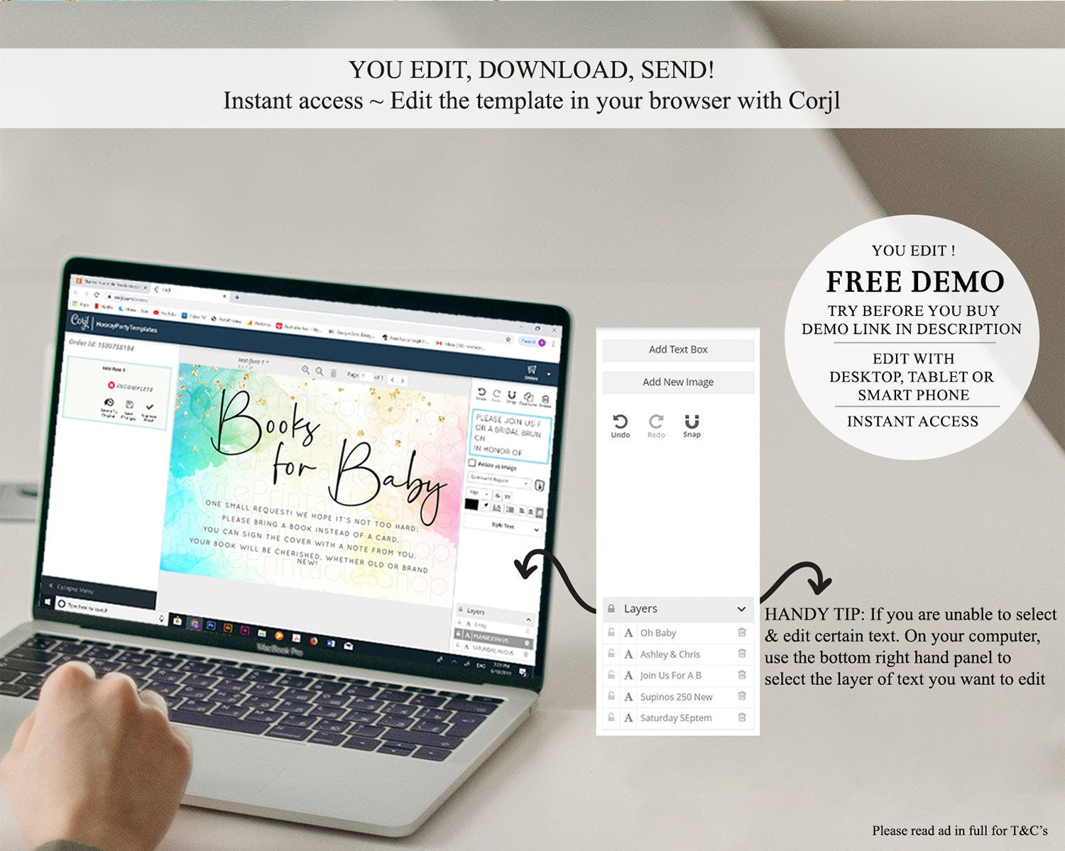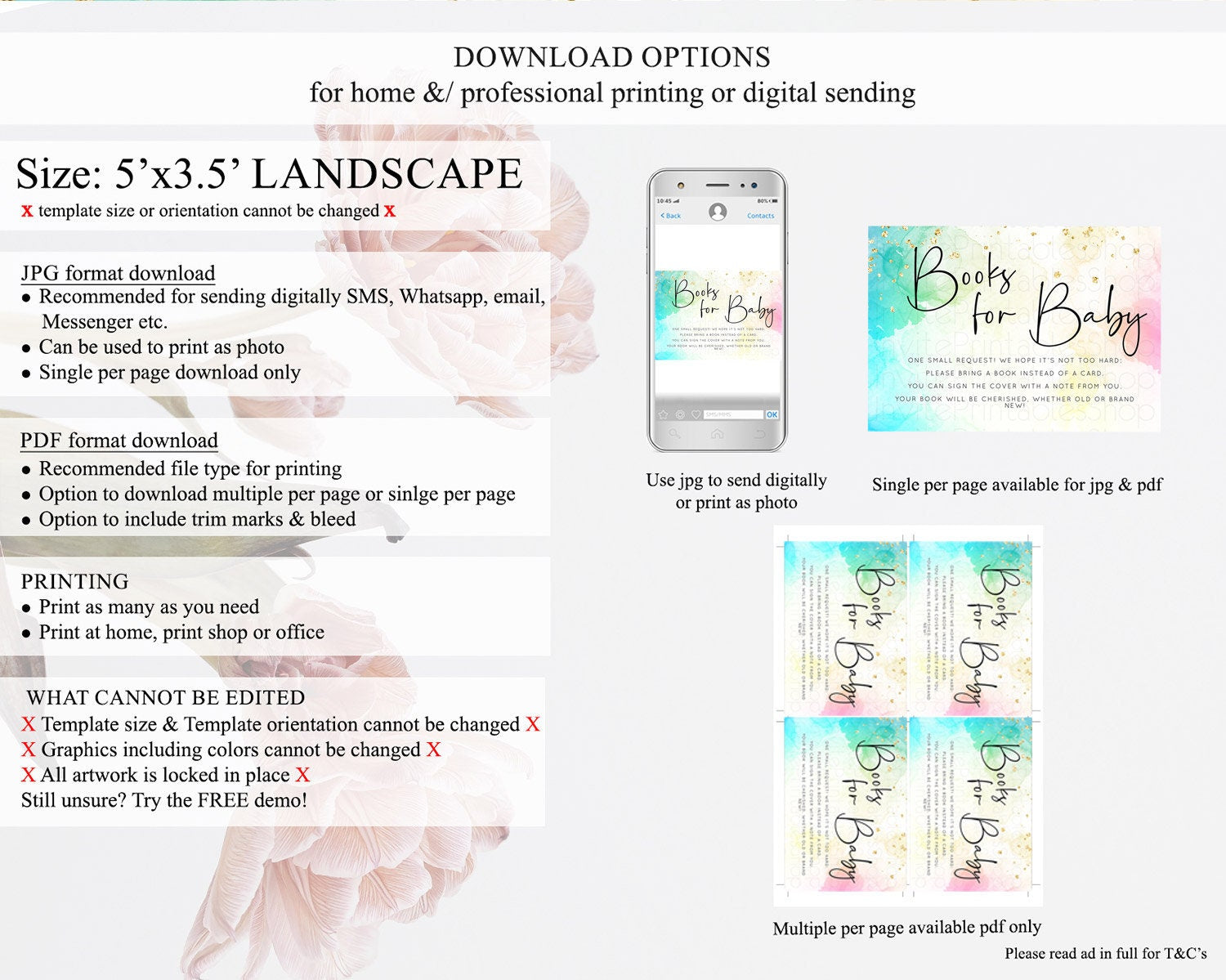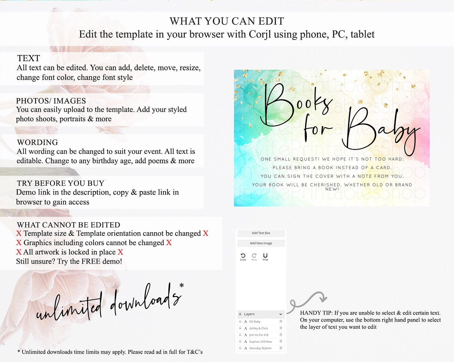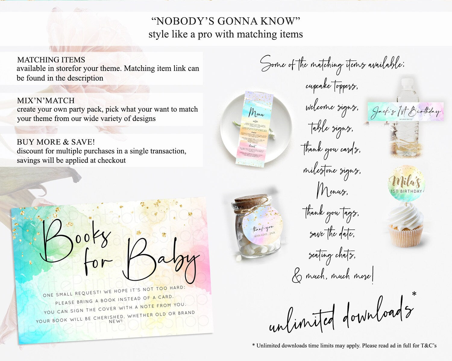 Pastel Books For Baby Card Pastel Rainbow Book Insert Colorful Ombre Watercolor Book Card Confetti Glitter Baby Book Poem Request D10151
