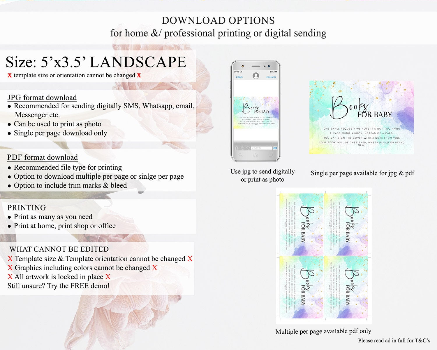 Pastel Books For Baby Card Pastel Rainbow Book Insert Colorful Ombre Watercolor Book Card Confetti Glitter Baby Book Poem Request D10158