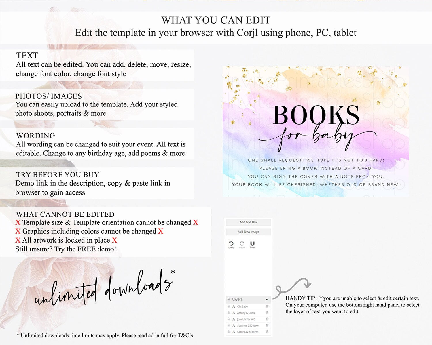 Pastel Books For Baby Card Pastel Rainbow Book Insert Colorful Ombre Watercolor Book Card Confetti Glitter Baby Book Poem Request D10175