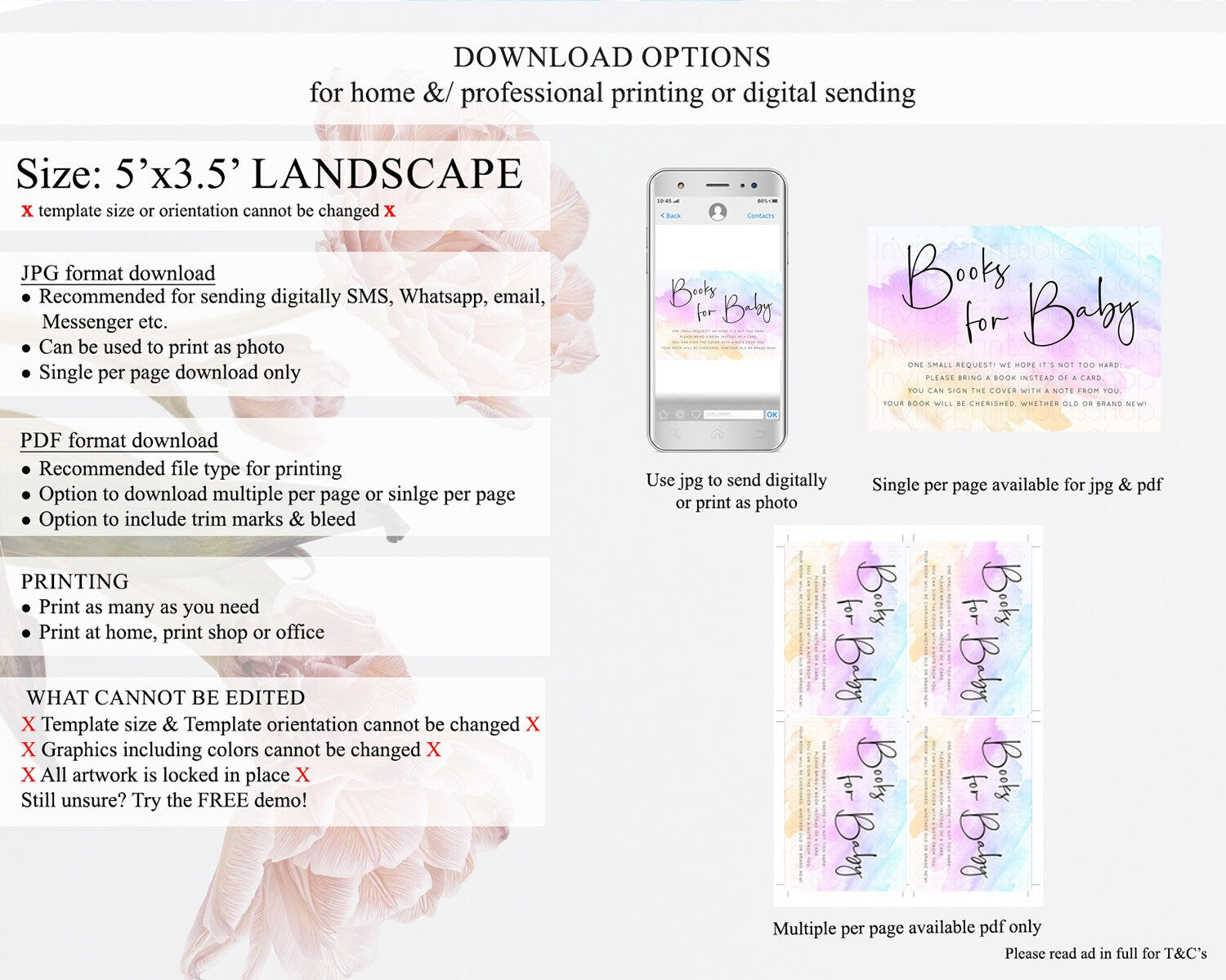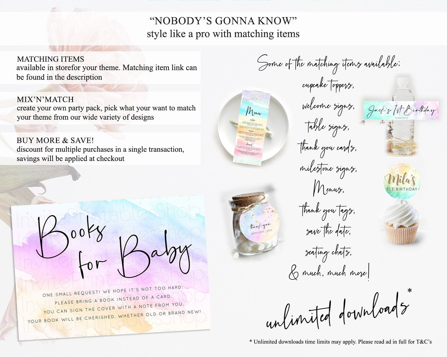Pastel Books For Baby Card Pastel Rainbow Book Insert Colorful Ombre Watercolor Book Card Confetti Glitter Baby Book Poem Request D10177