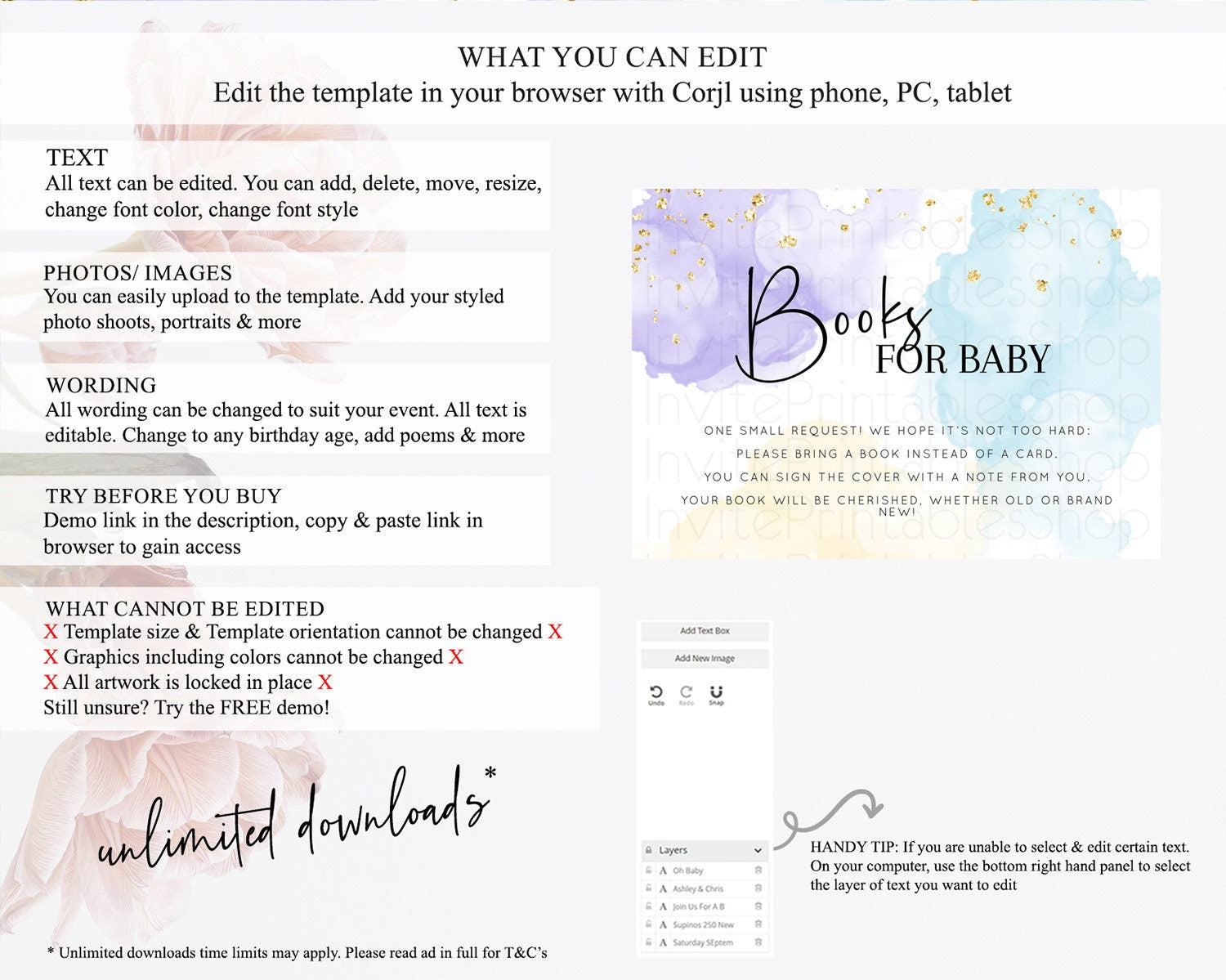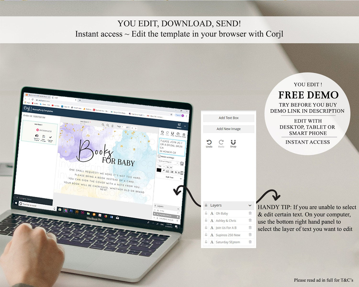 • After purchase, Corjl emails your editing link. Allow up to 15 minutes for delivery.