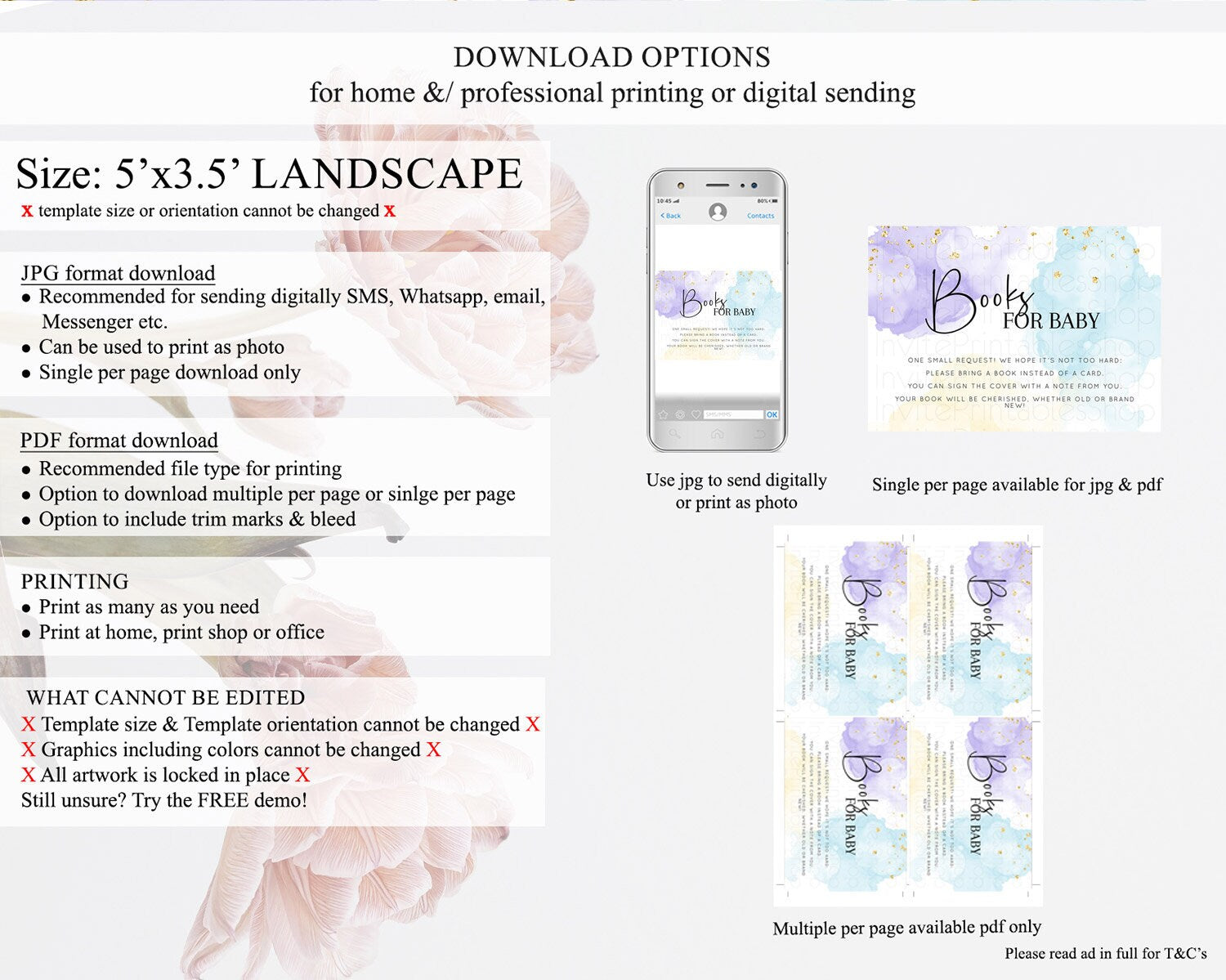 • Template size & orientation cannot be changed. Please use the demo link to confirm this product suits your needs.